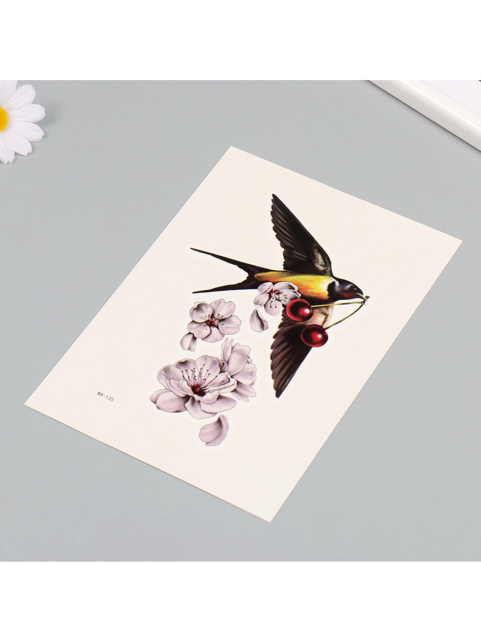 Переводная тату на тело цветная "Ласточка", 26.1x14.6 см, 14.6x26.1x0.2 см., Китай
