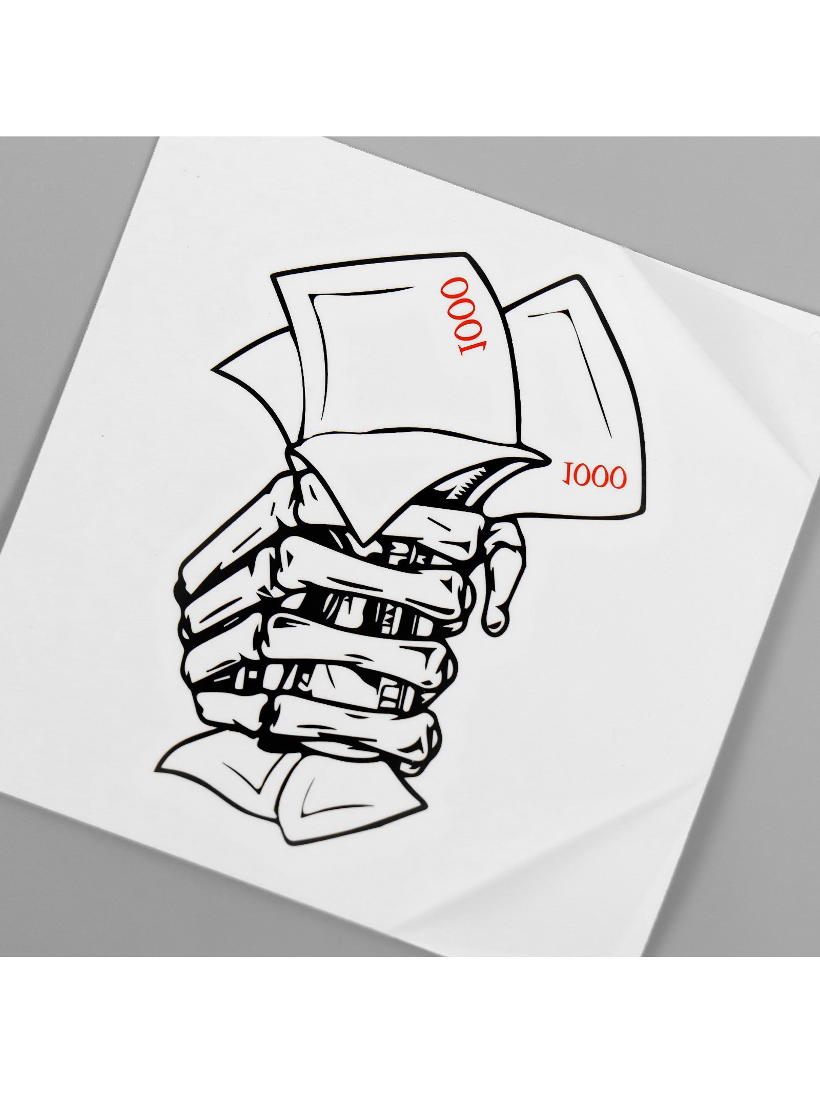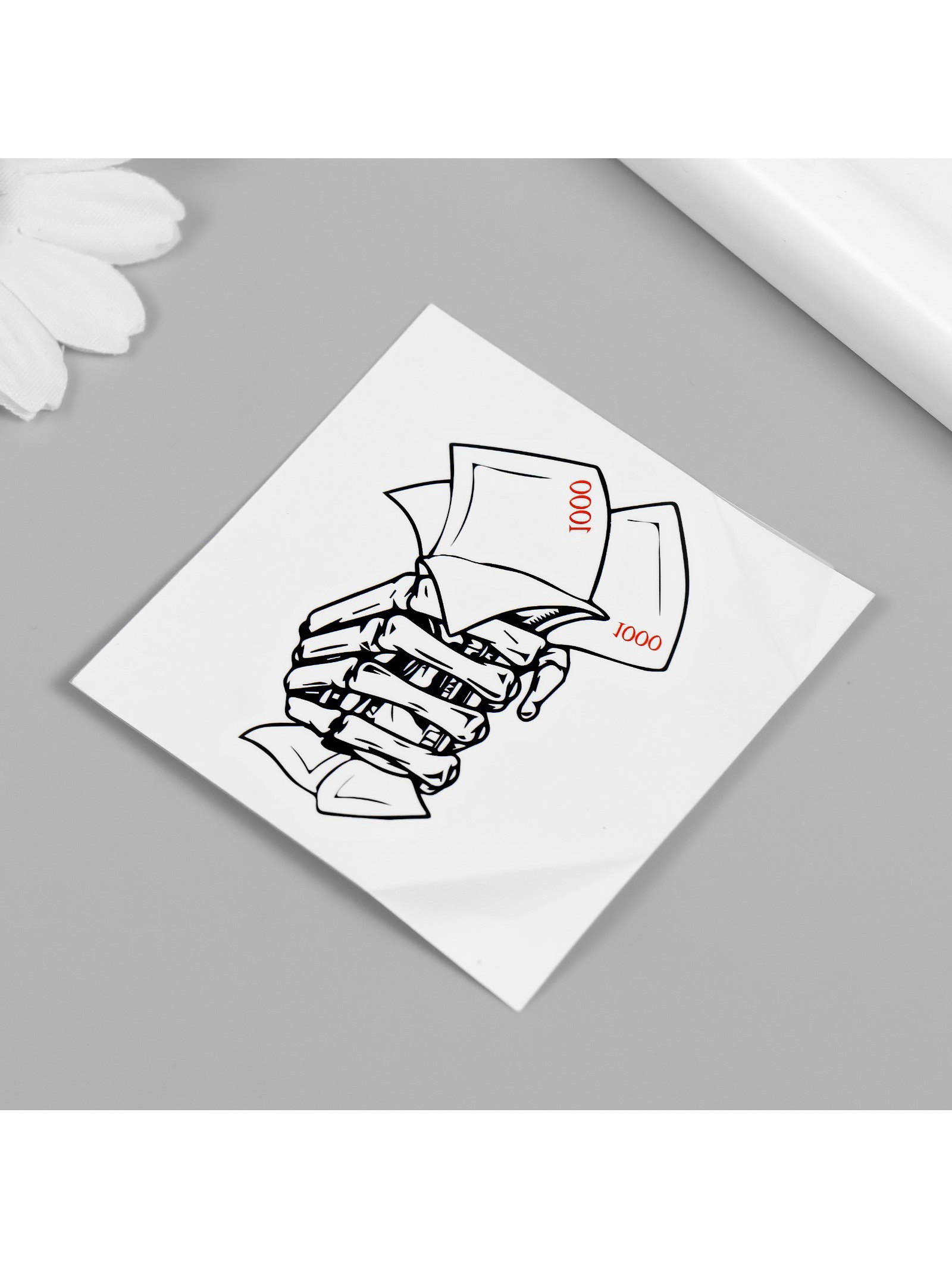 Переводная тату на тело чёрно-красная "Деньги в руке скелета", 6x6 см, 6x6 см., Арт Узор, Китай