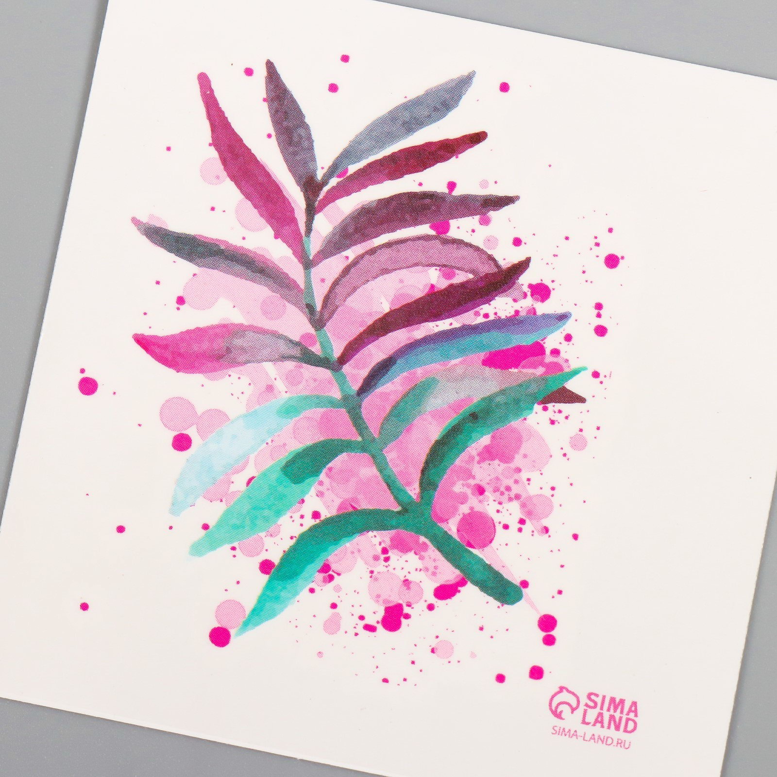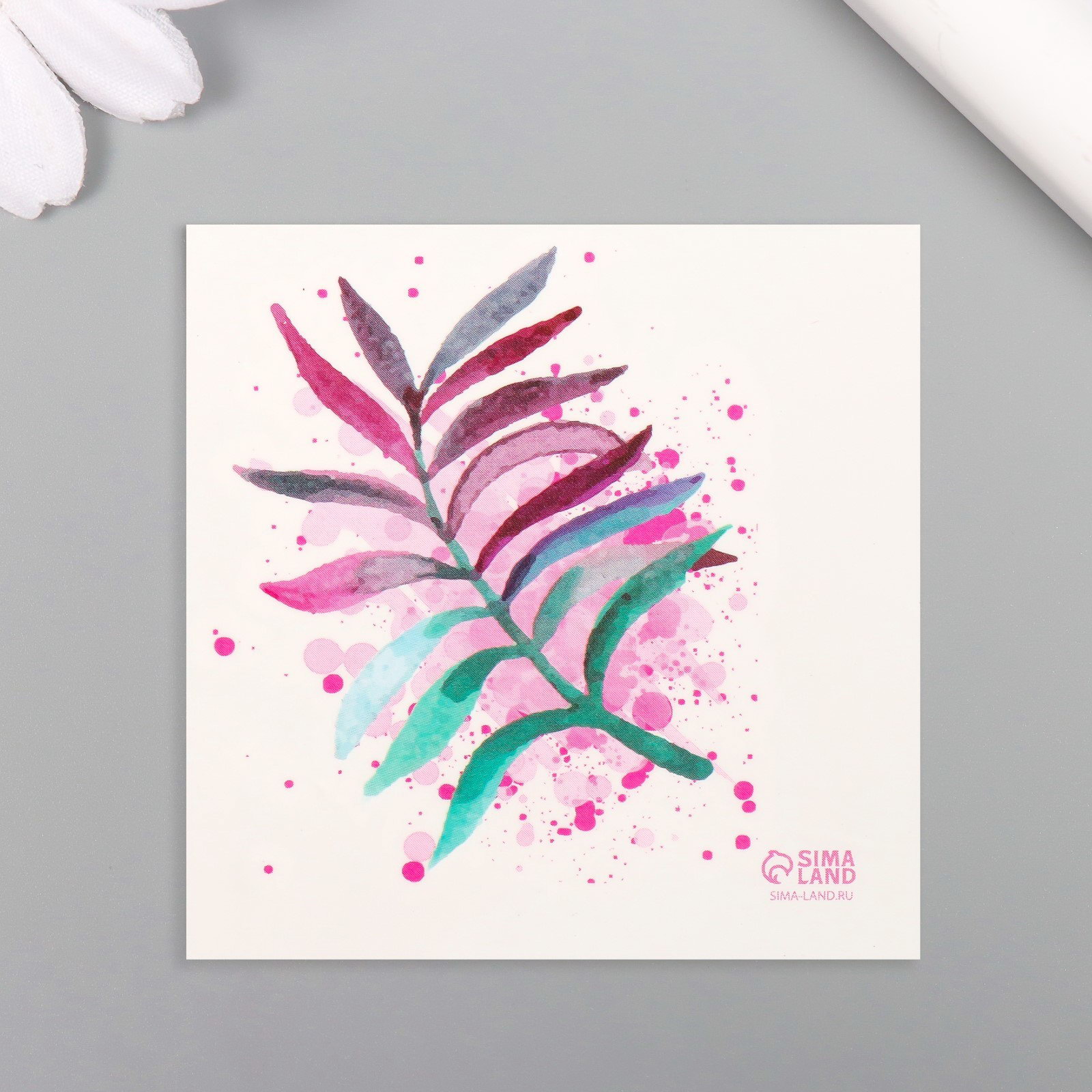 Переводная тату на тело цветная "Акварель. Ветка", 6x6 см, 6x6 см., Арт Узор, Китай