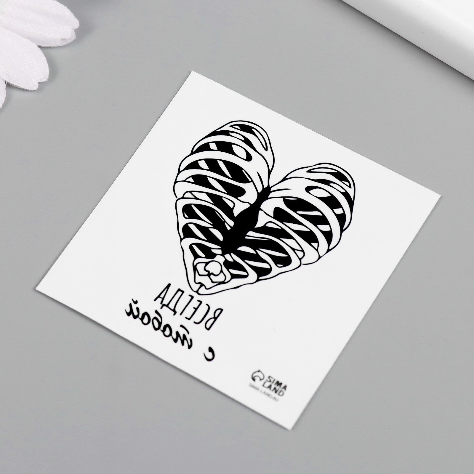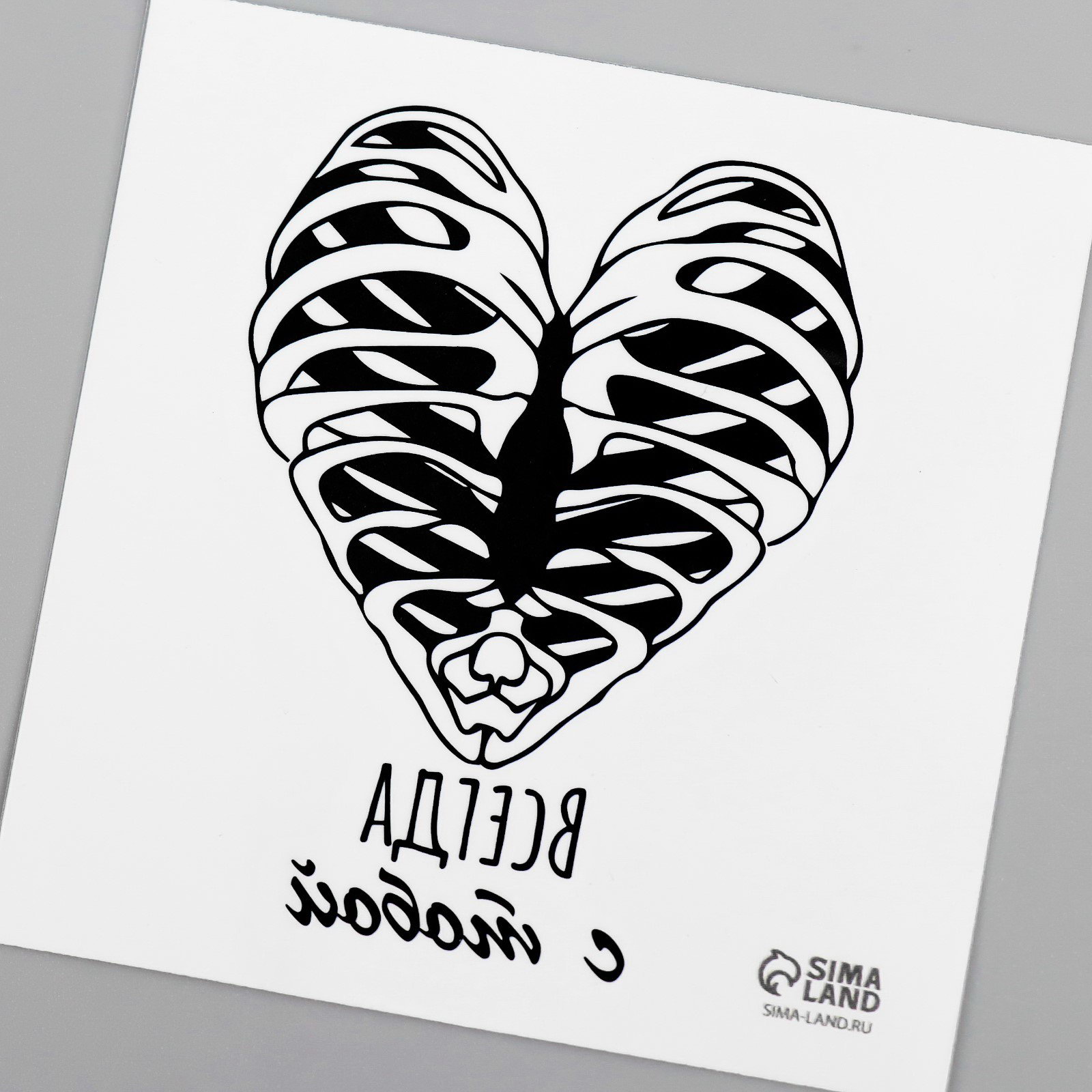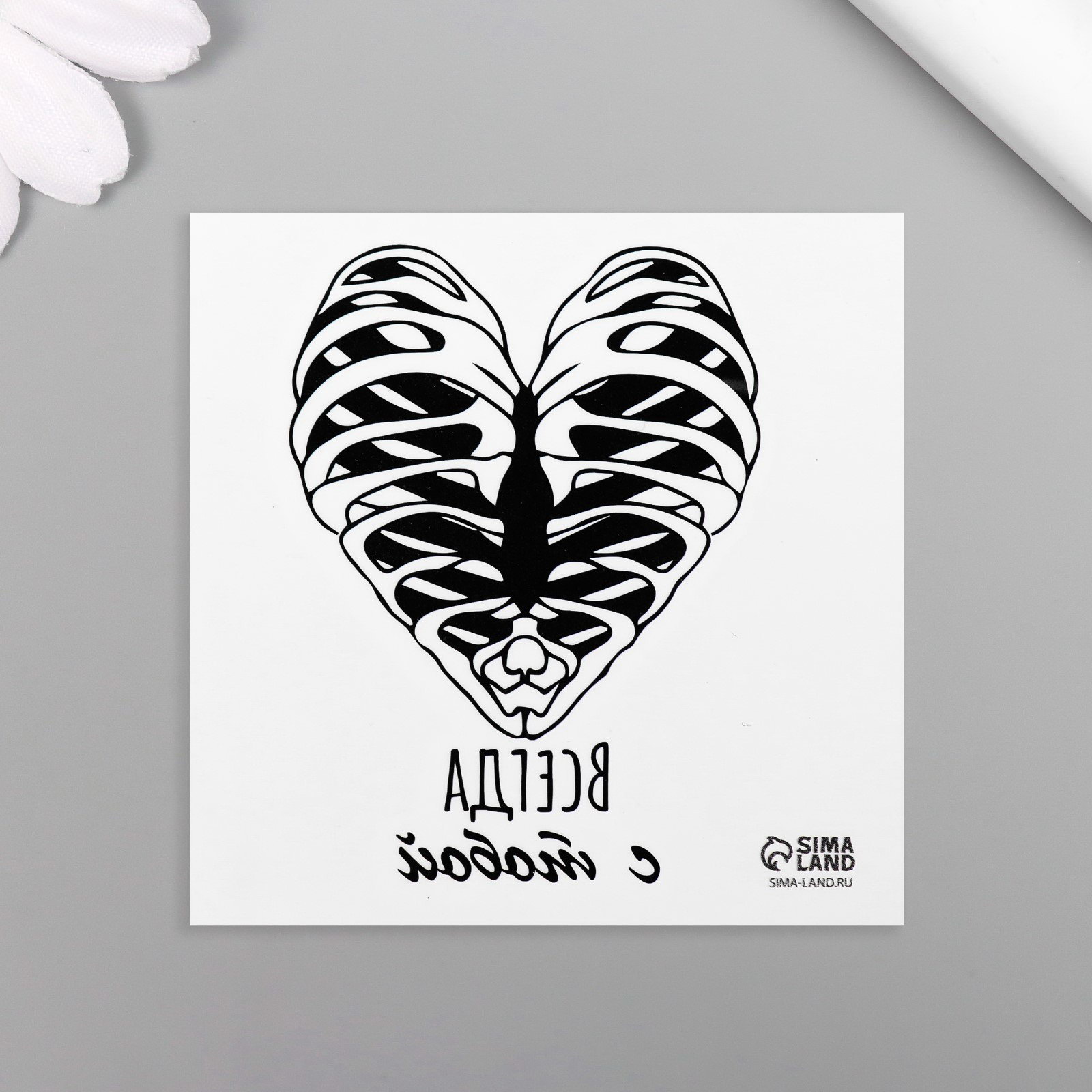Переводная тату на тело чёрная "Сердце. Рёбра. Всегда с тобой", 6x6 см, 6x6 см., Арт Узор, Китай