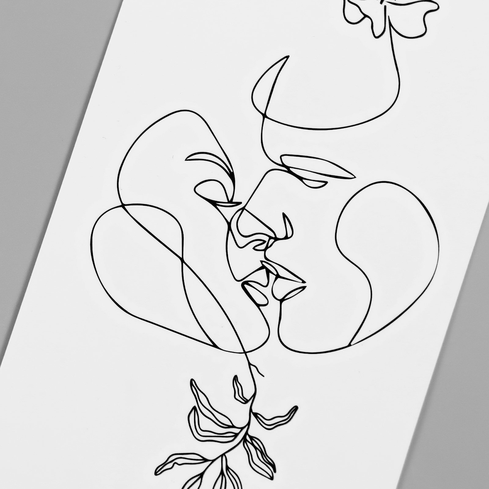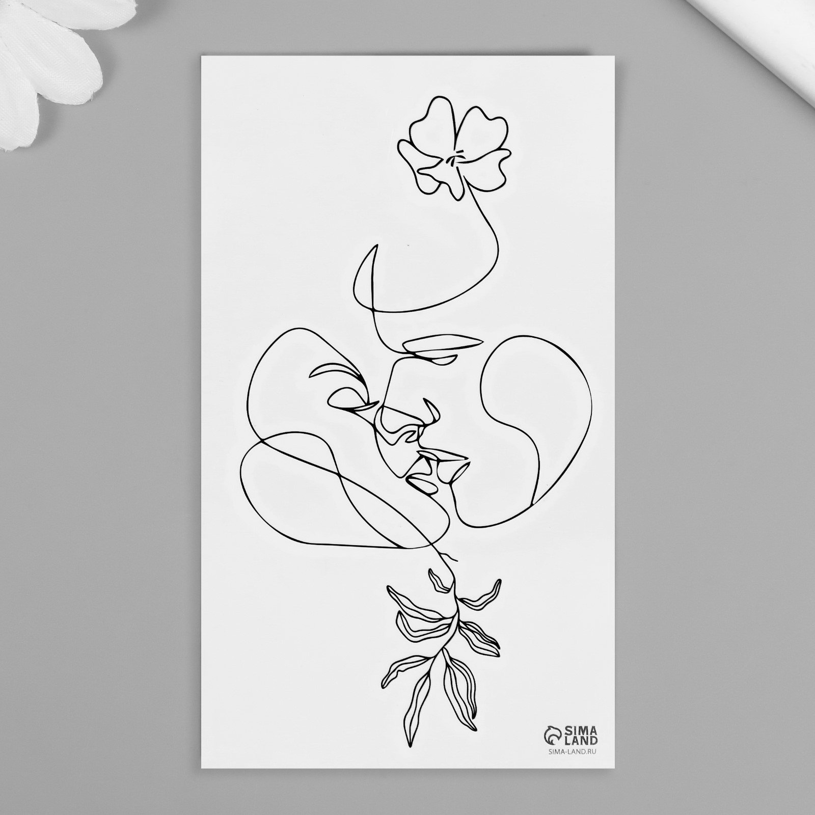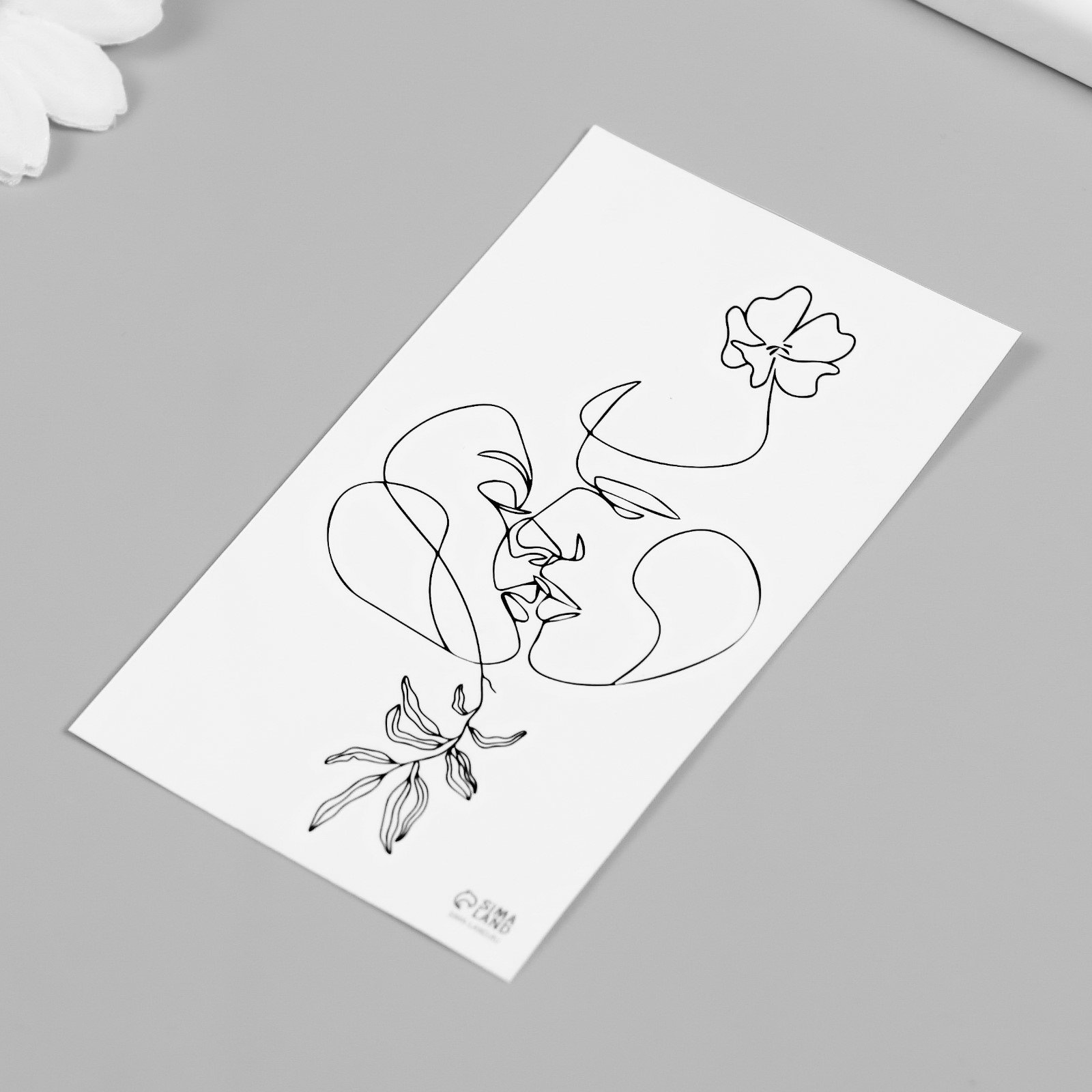 Переводная тату на тело чёрная "Контур. Поцелуй", 6x10.5 см, 10.5x6 см., Арт Узор, Китай