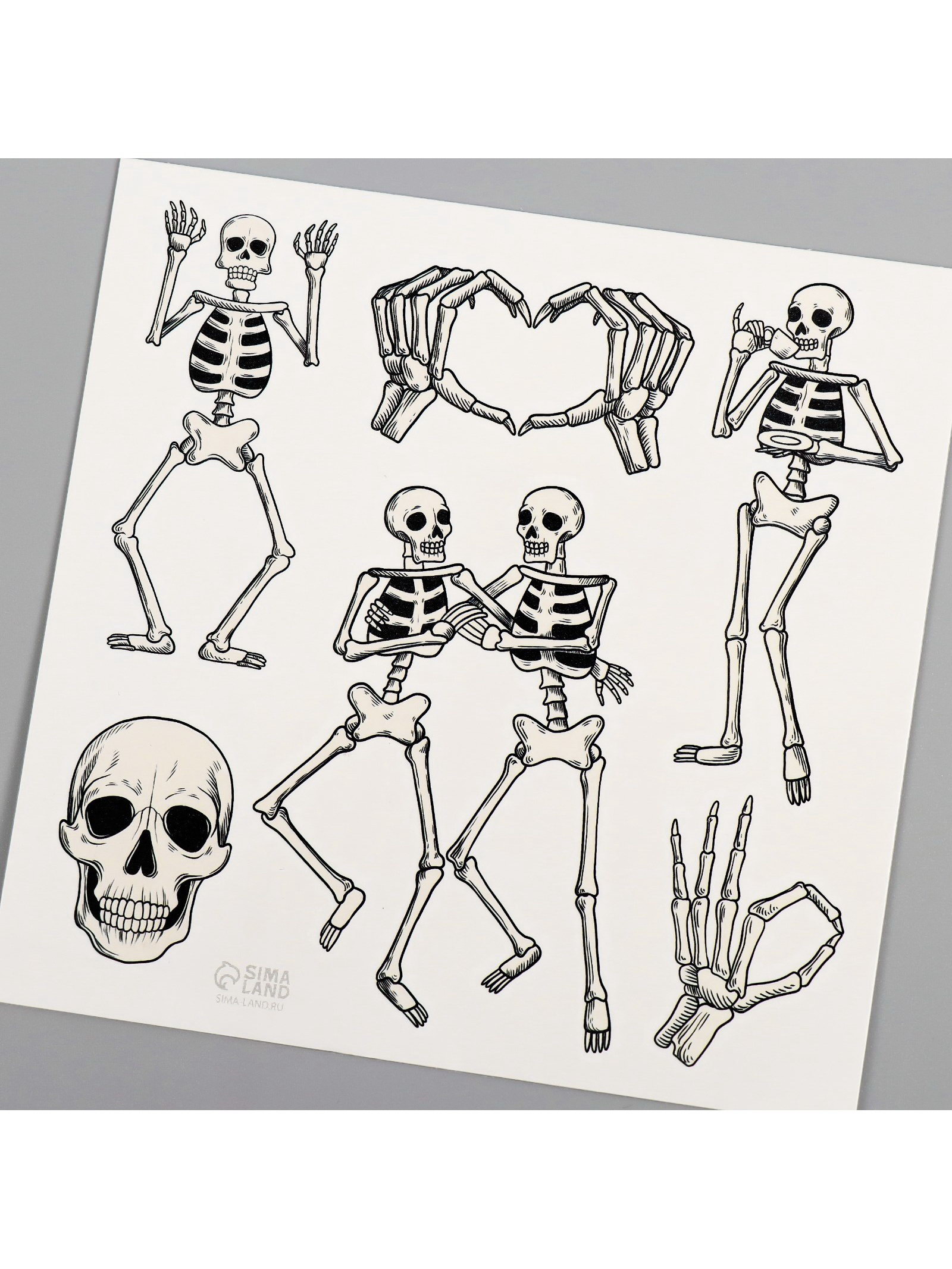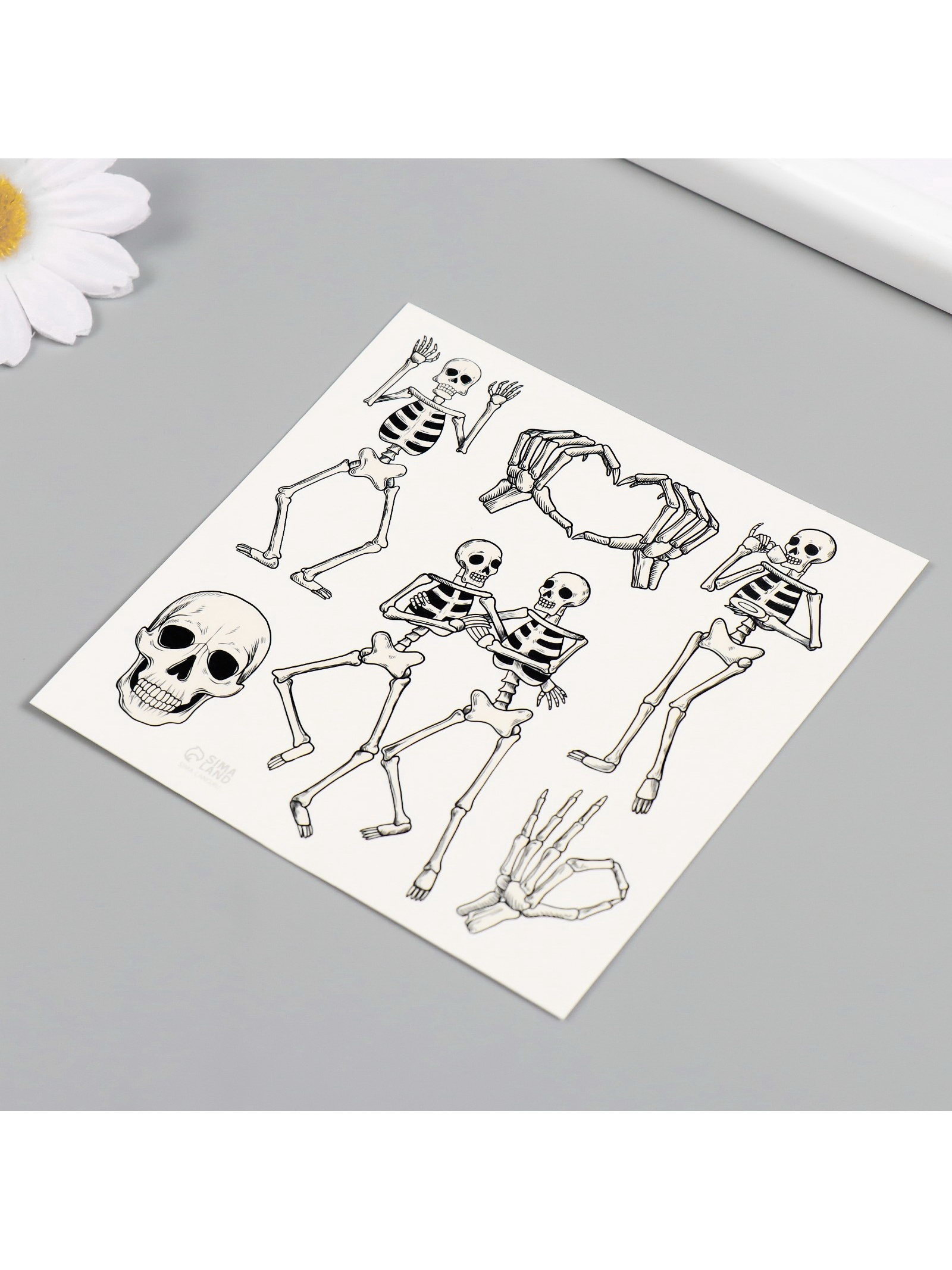 Переводные тату на тело чёрные "Скелеты", 10x10 см, 10x10 см., Арт Узор, Китай