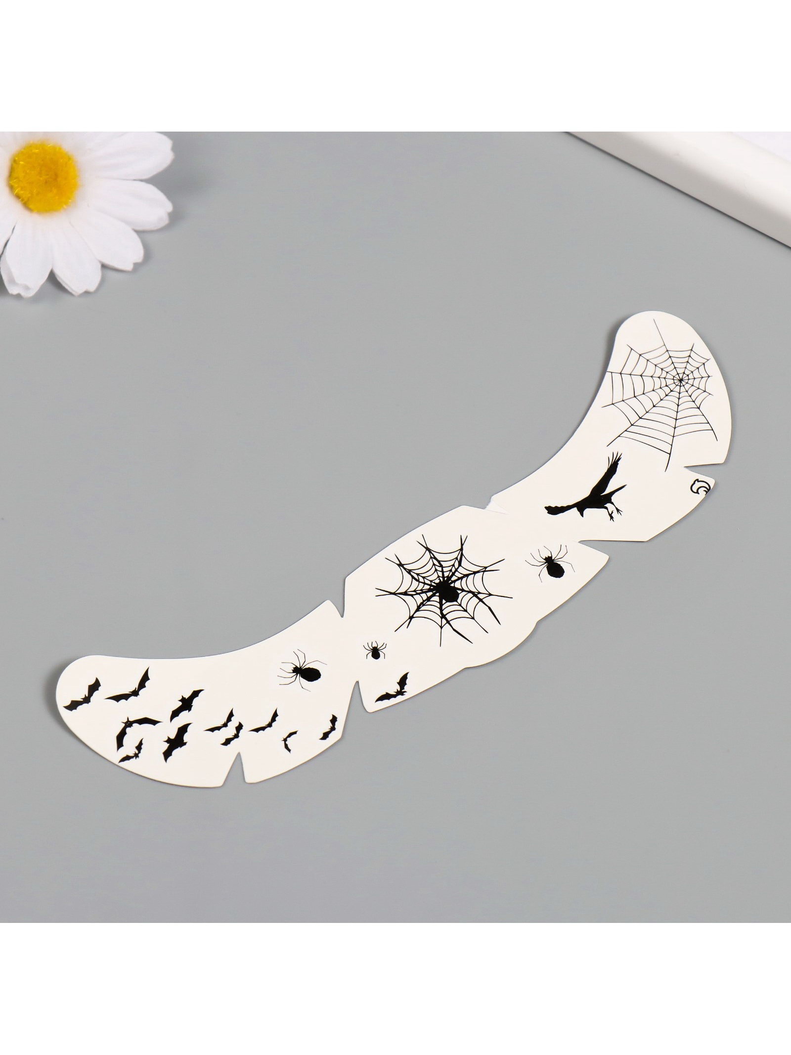 Переводная тату на тело чёрная "Веснушки. Летучие мыши, пауки и ворон", 16x5 см, 16x5 см., Арт Узор, Китай