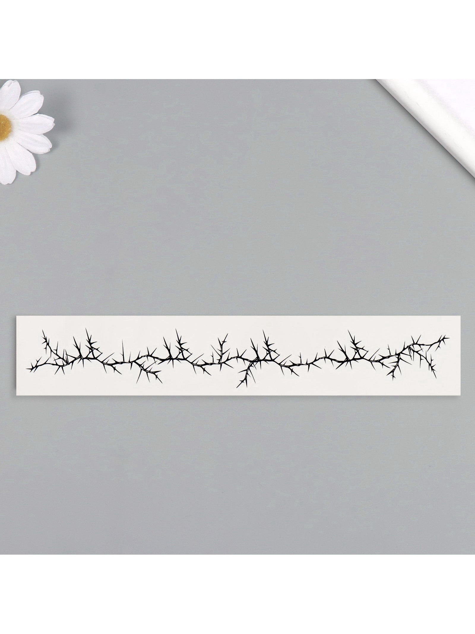 Тематика: Линии, Растительный орнамент Тематика праздника: Универсальная тематика, Хэллоуин Вид наклейки: Пластиковая, Татуировка, Фигурная Для кого: Для женщины, Для мужчины, Унисекс Размер упаковки: 3.5 x 0.1 x 20.5 см. Вид: Чёрные Цвет: Чёрный Адресат: Без адресата Вид упаковки: Пакет Набор: Нет Место приклеивания: Запястье tnved: 4908900000 Создай стильный акцент на своем запястье! Чёрная переводная татуировка "Браслет" с шипами это модный аксессуар, который придаст вашему образу дерзкую изюминку и выразительность.