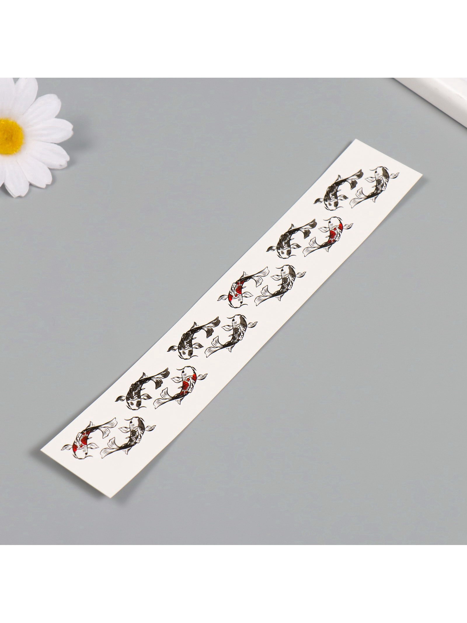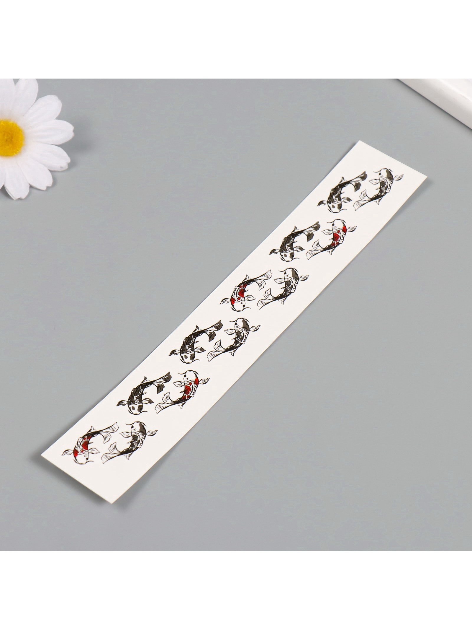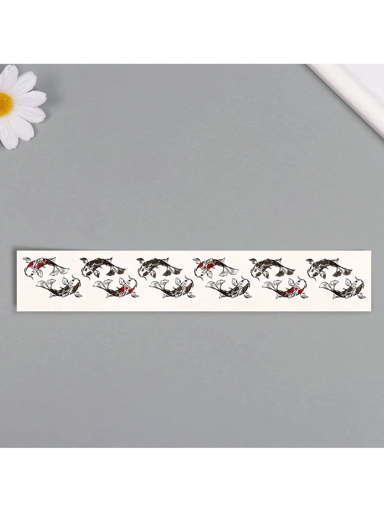 Переводная тату на тело чёрно-красная "Браслет. Рыбы Кои", 20x3 см, 20x2 см., Арт Узор, Китай