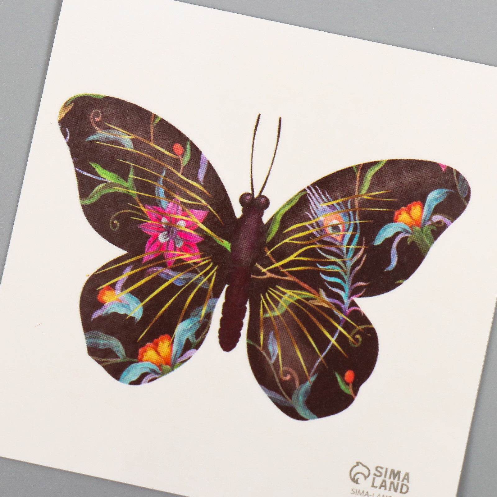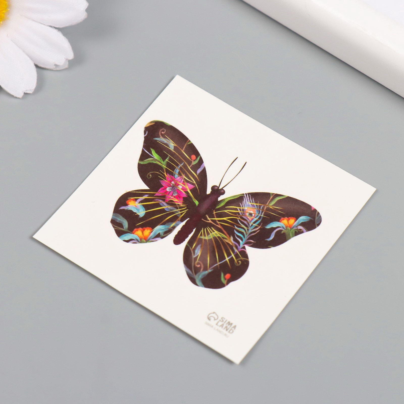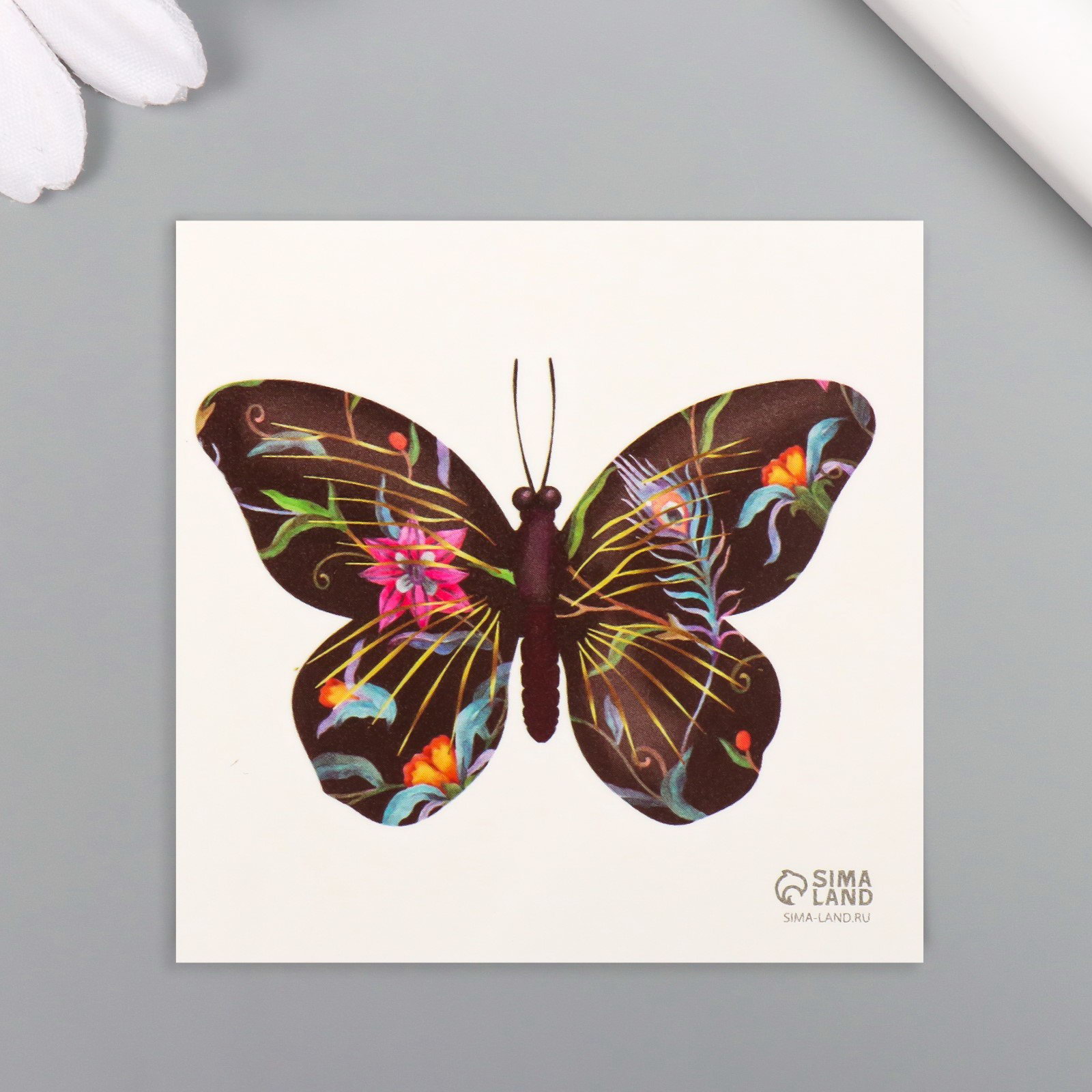 Переводная тату на тело цветная "Чёрная бабочка", 6x6 см, 6x6 см., Арт Узор, Китай