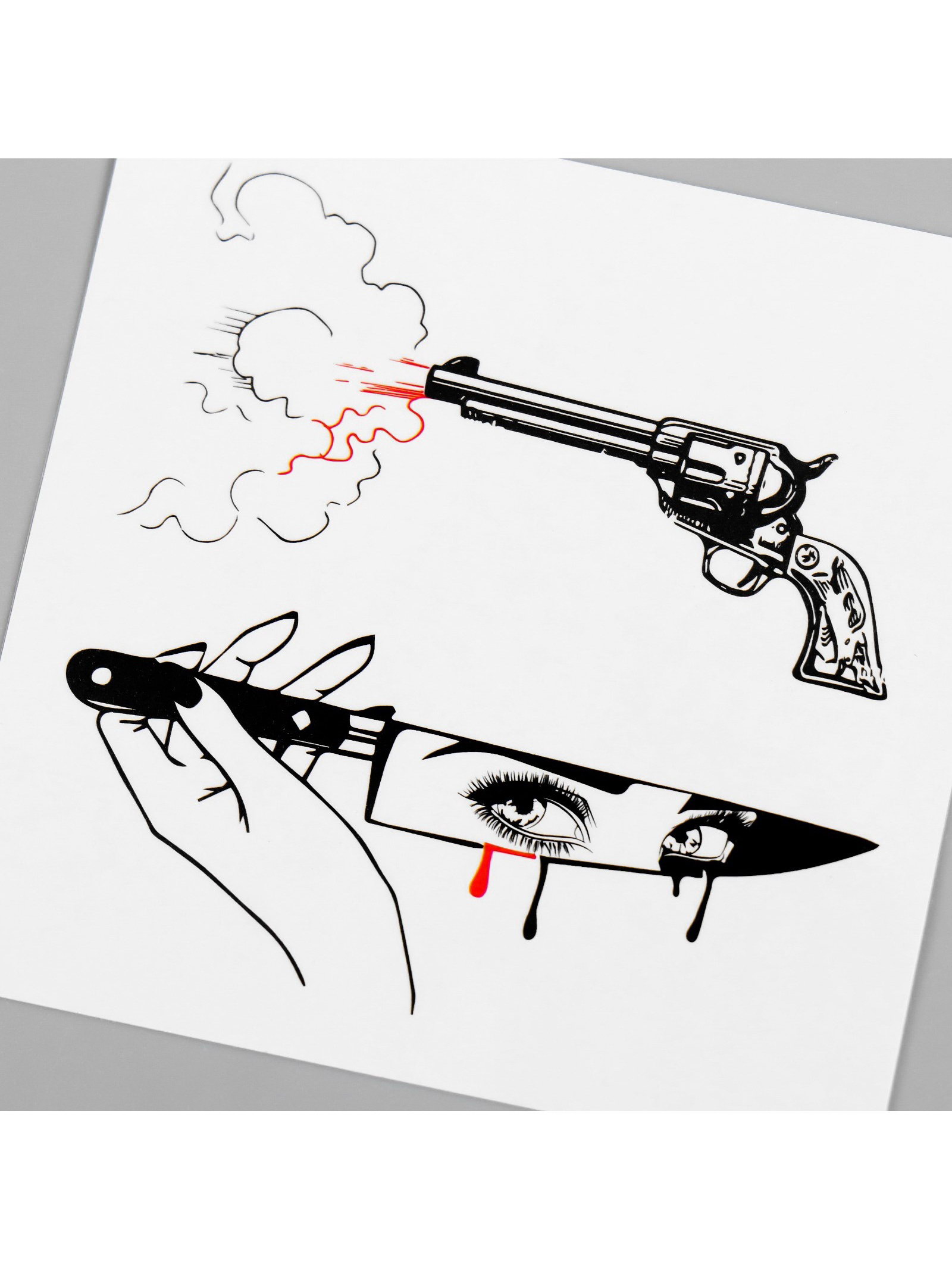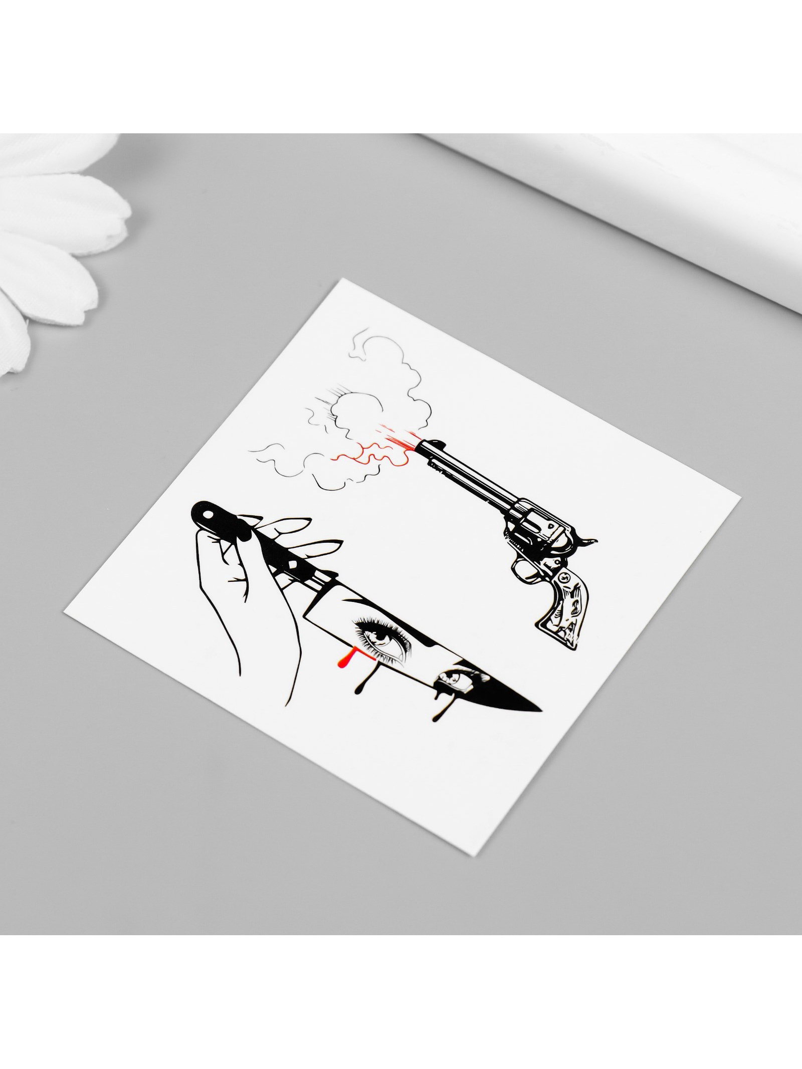 Переводная тату на тело чёрно-красная "Нож и пистолет", 6x6 см, 6x6 см., Арт Узор, Китай