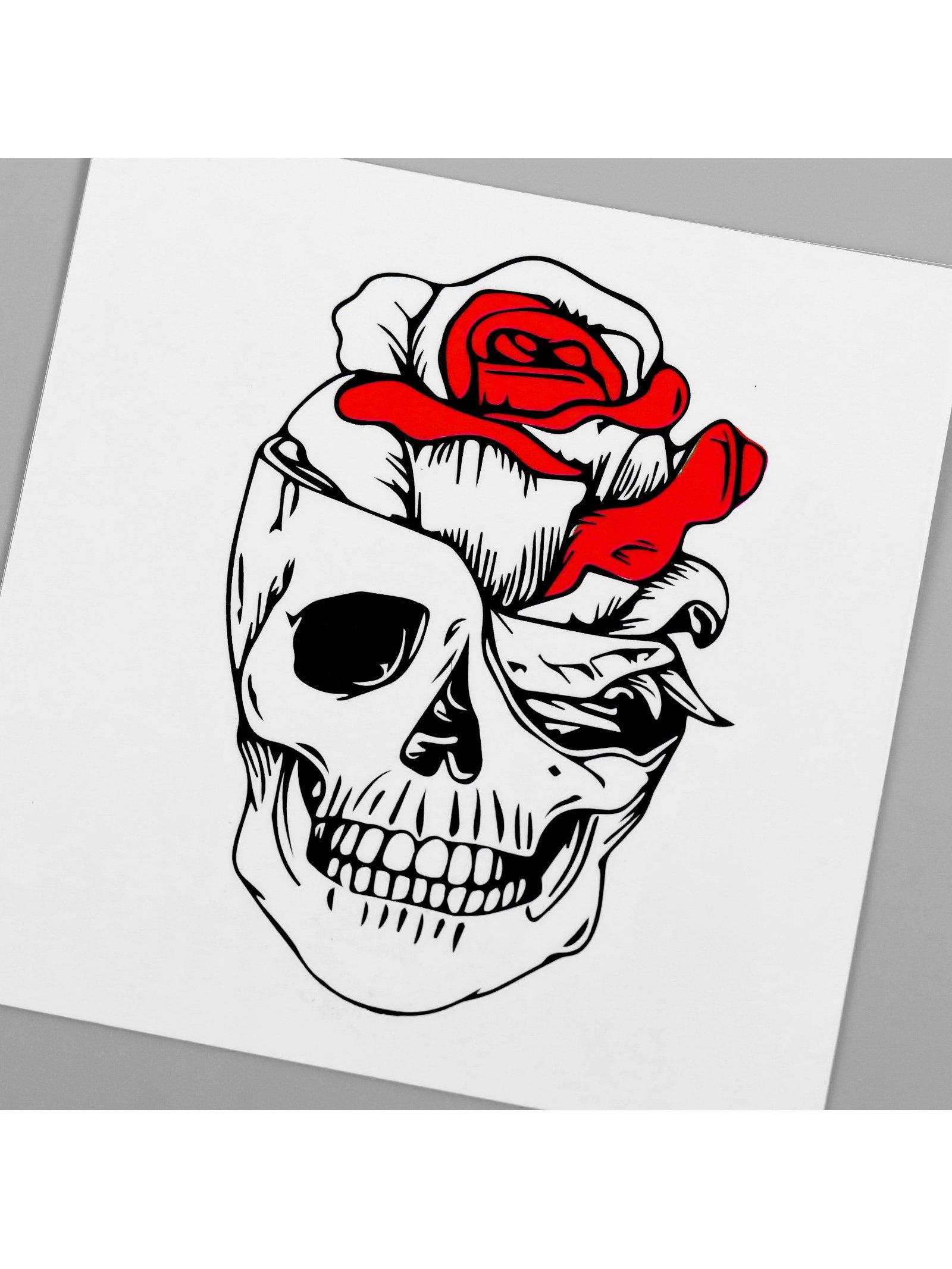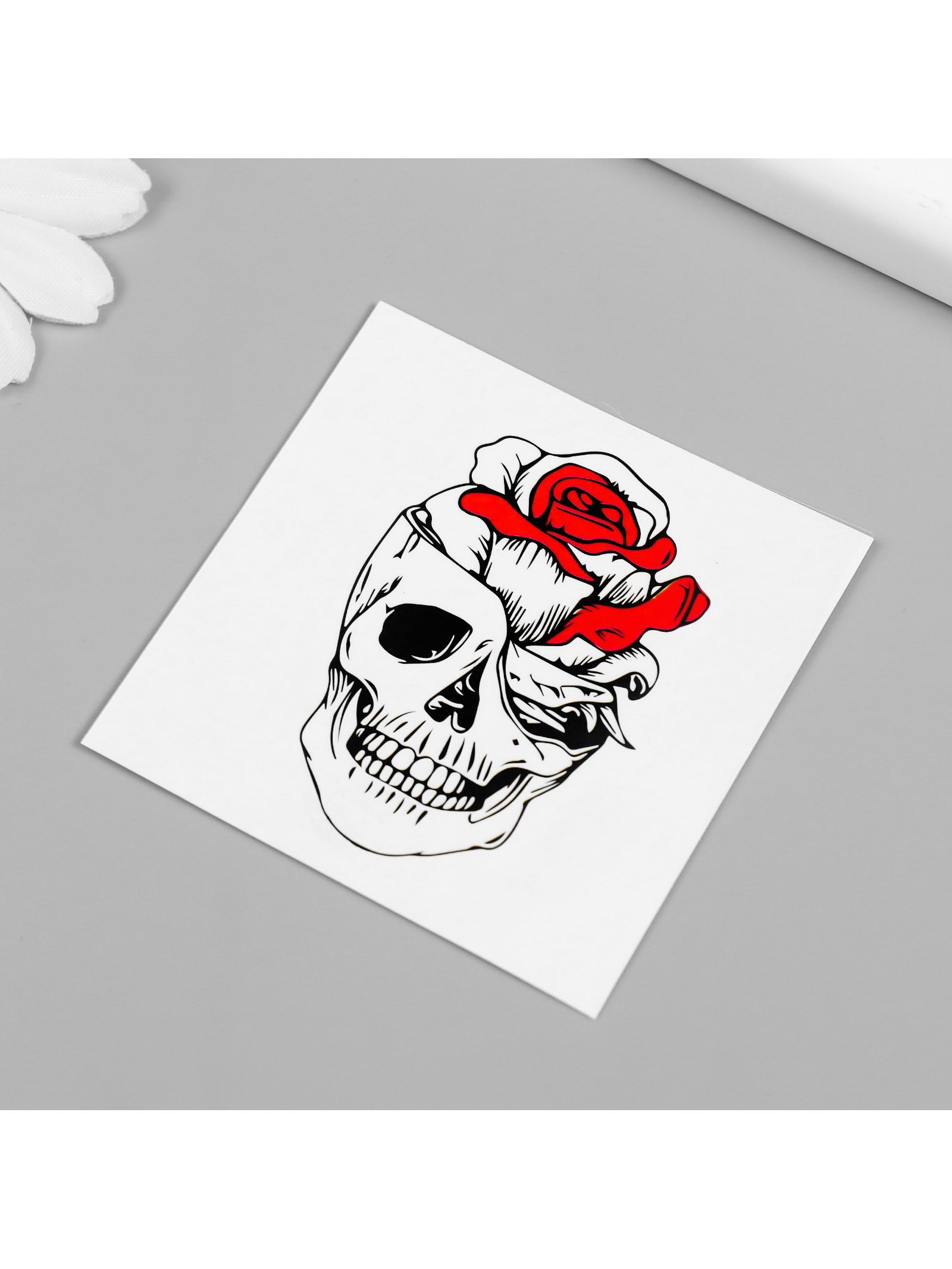 Переводная тату на тело чёрно-красная "Череп с розой", 6x6 см, 6x6 см., Арт Узор, Китай