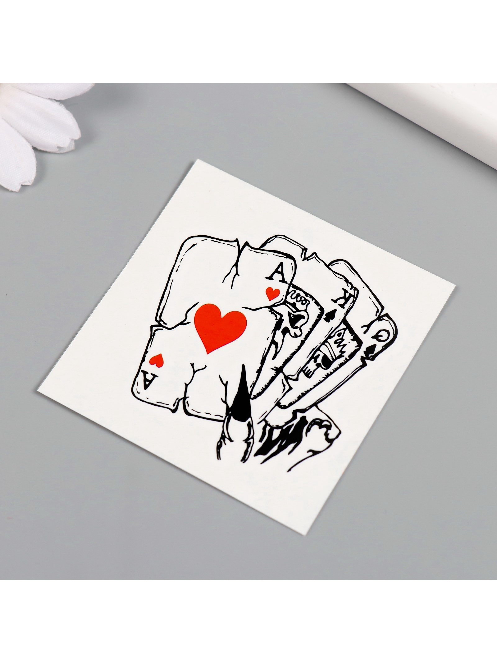 Переводная тату на тело чёрно-красная "Карты", 6x6 см, 6x6 см., Арт Узор, КИТАЙ