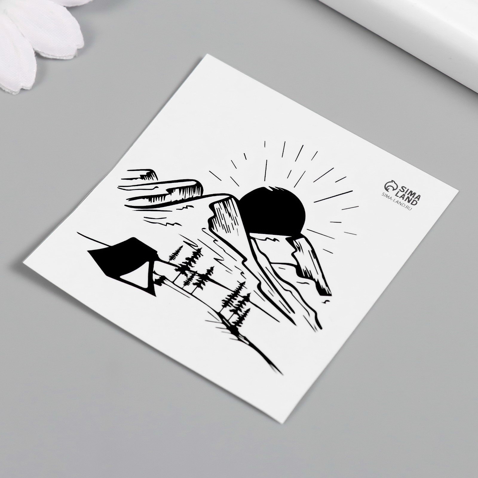 Переводная тату на тело чёрная "Горы", 6x6 см, 6x6 см., Арт Узор, Китай