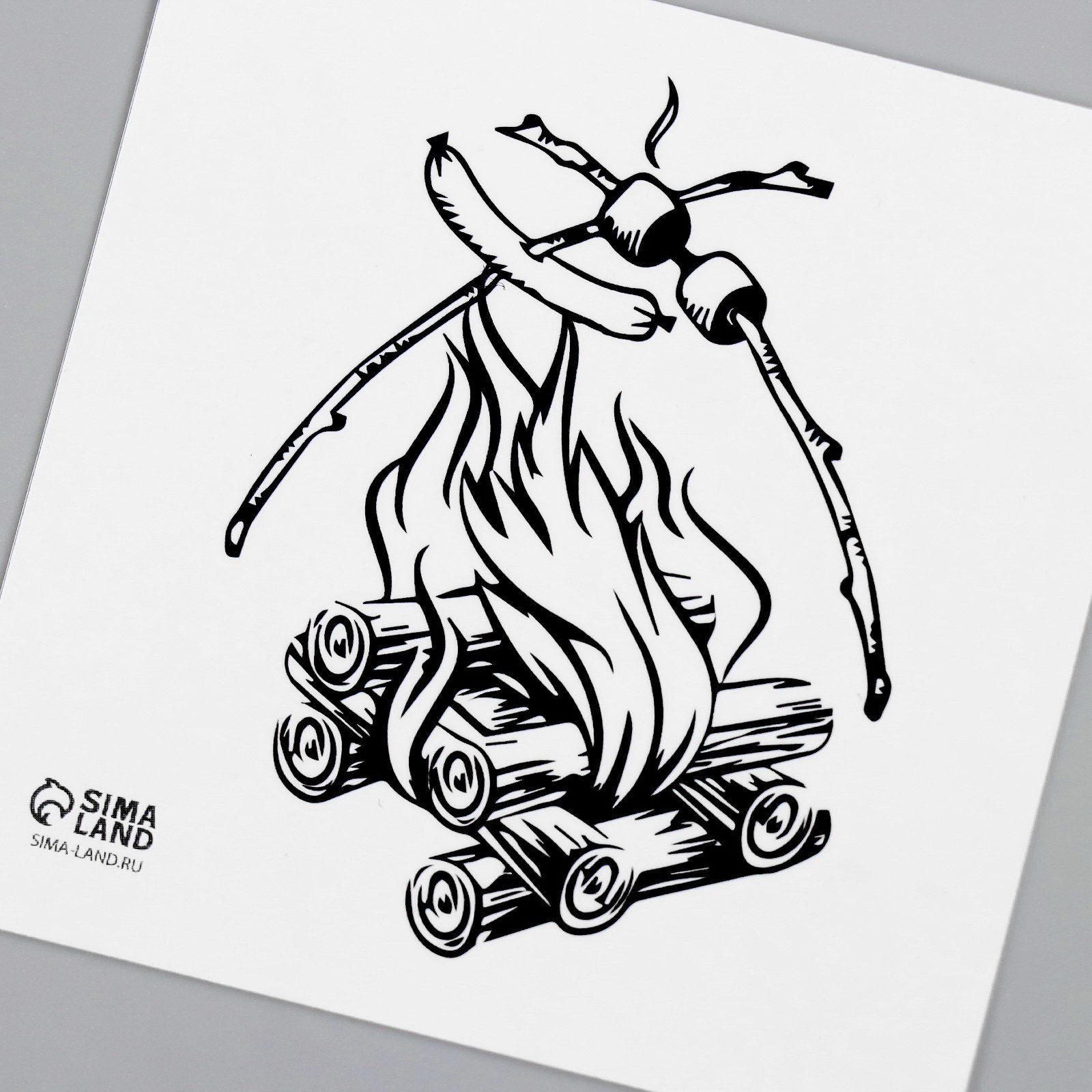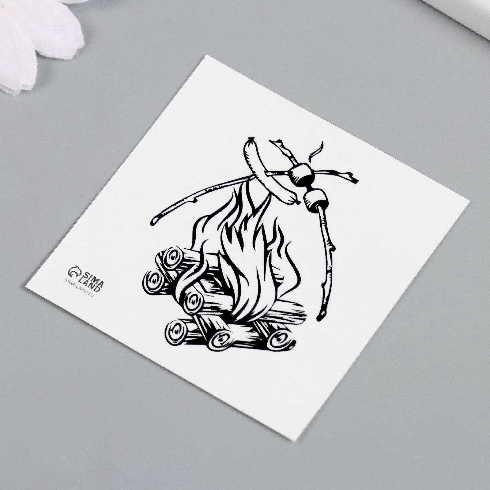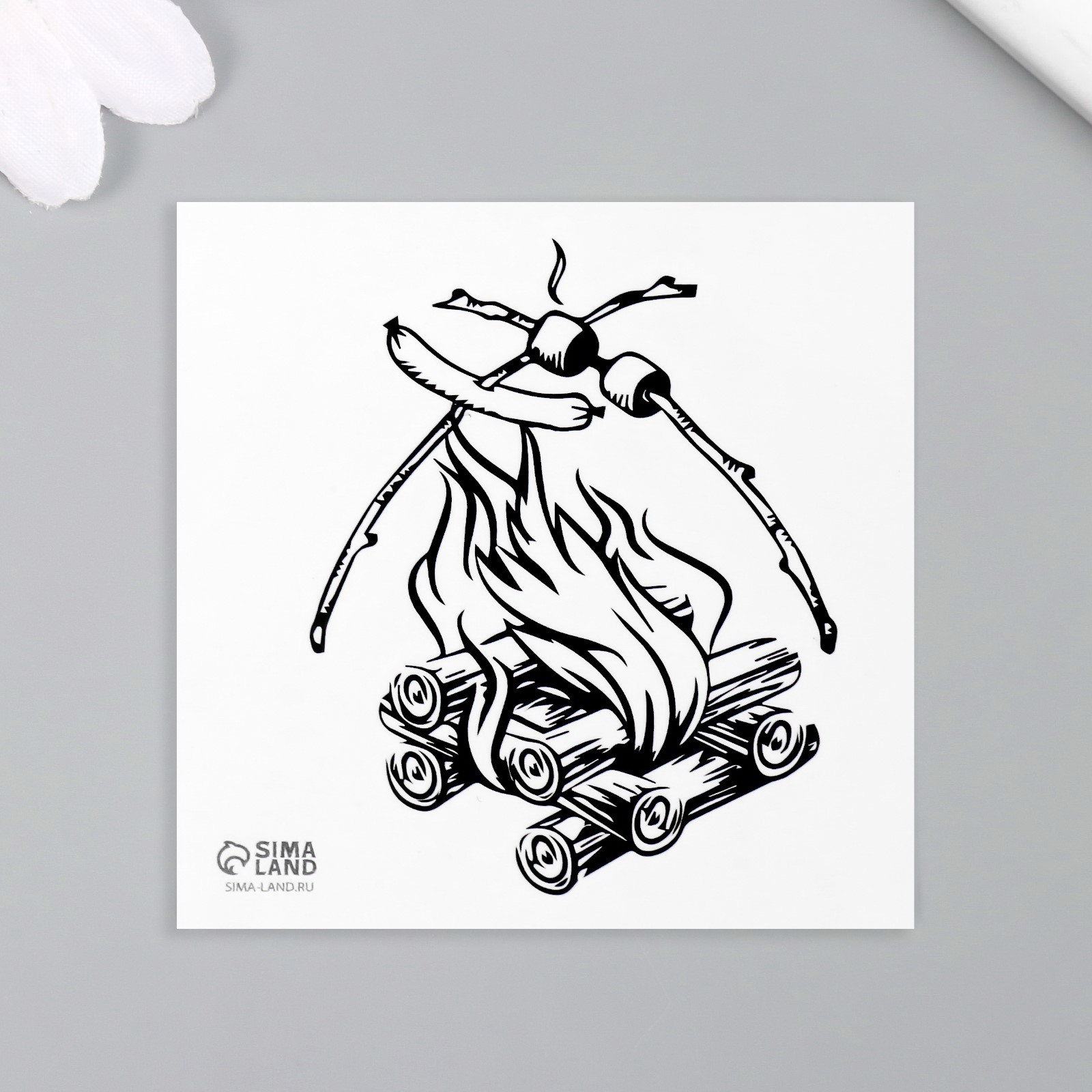 Переводная тату на тело чёрная "Костёр", 6x6 см, 6x6 см., Арт Узор, Китай