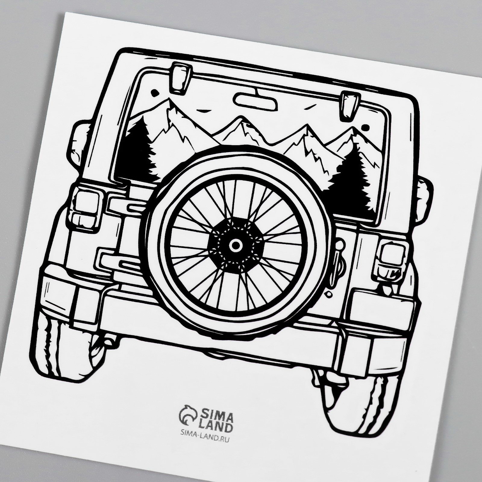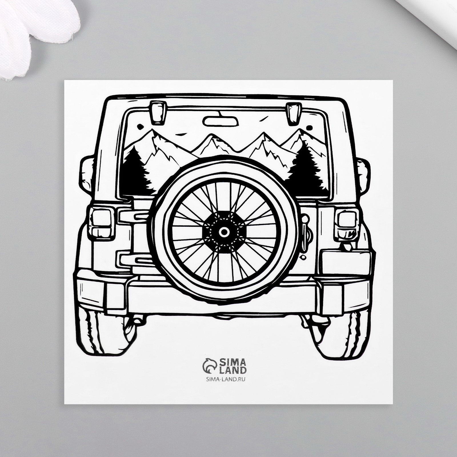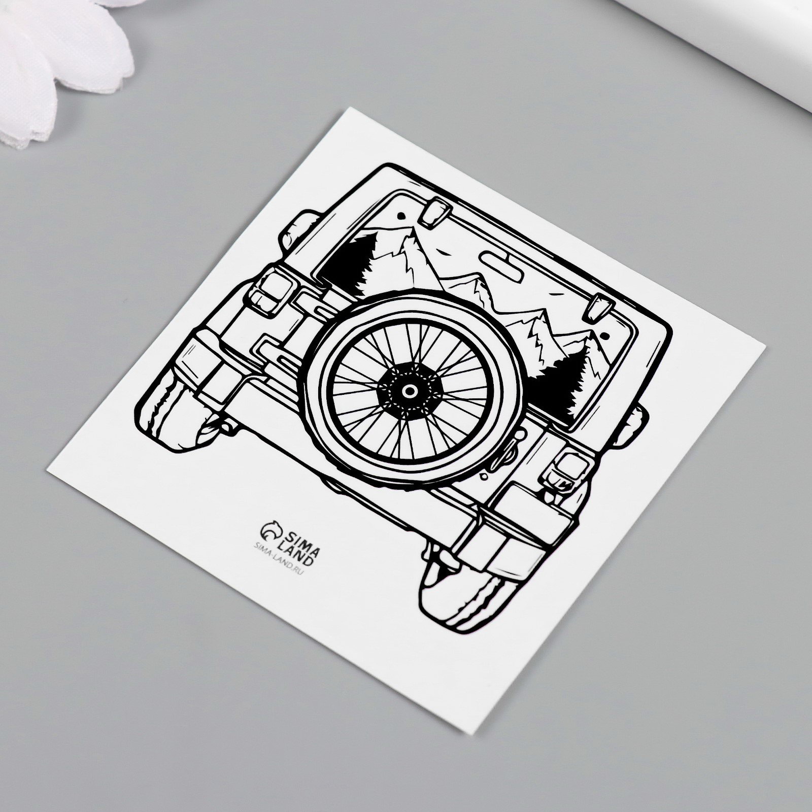 Переводная тату на тело чёрная "Поездка за город", 6x6 см, 6x6 см., Арт Узор, Китай