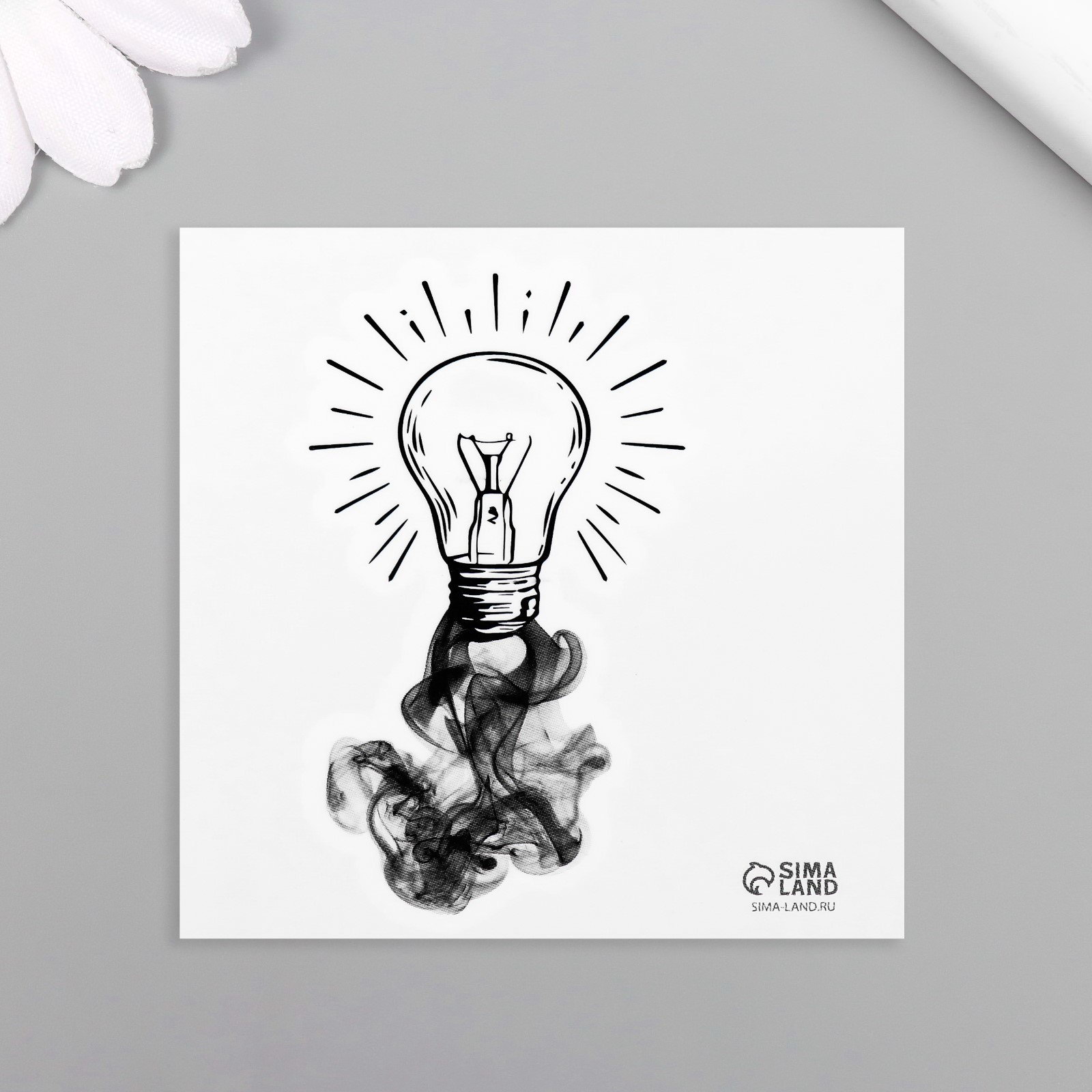 Переводная тату на тело чёрная "Чернила. Лампочка", 6x6 см, 6x6 см., Арт Узор, Китай