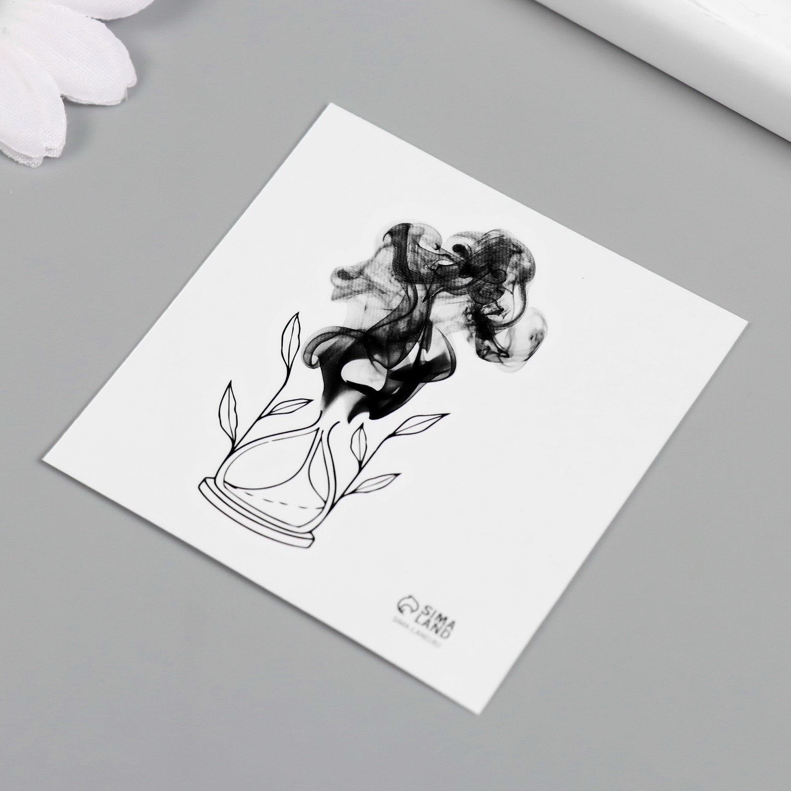 Переводная тату на тело чёрная "Чернила. Песочные часы", 6x6 см, 6x6 см., Арт Узор, Китай