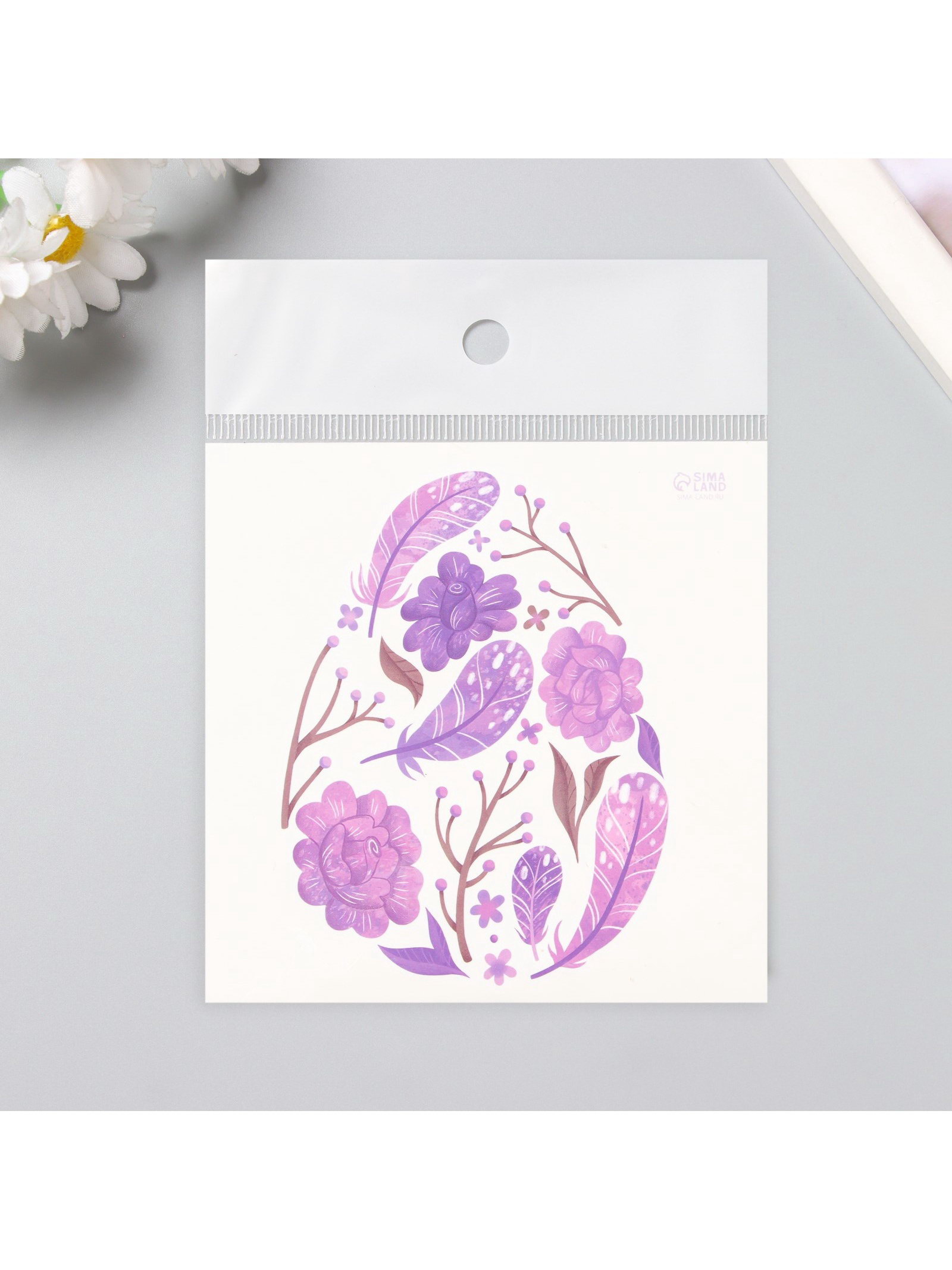 Переводная тату цветная "Яйцо с фиолетовыми узорами", временная татуировка, 10x10 см, 10x10 см., Арт Узор, Китай