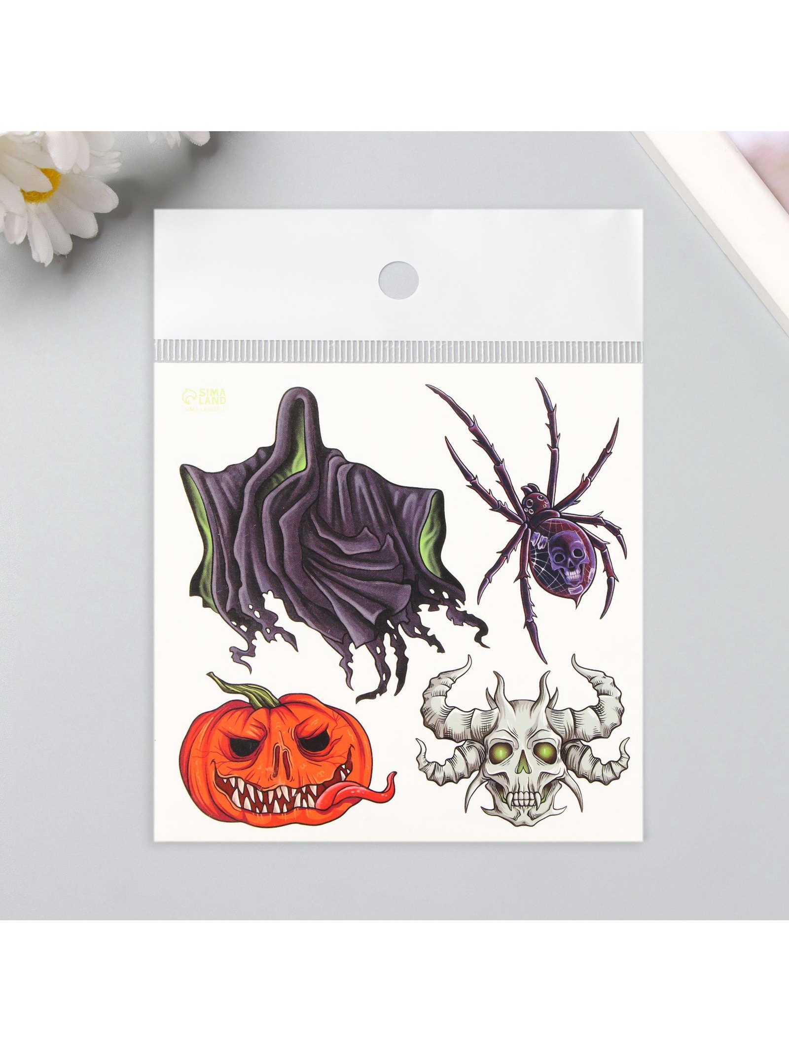 Переводные тату на тело цветные "Страшилки", 10x10 см, 10x10 см., Арт Узор, Китай