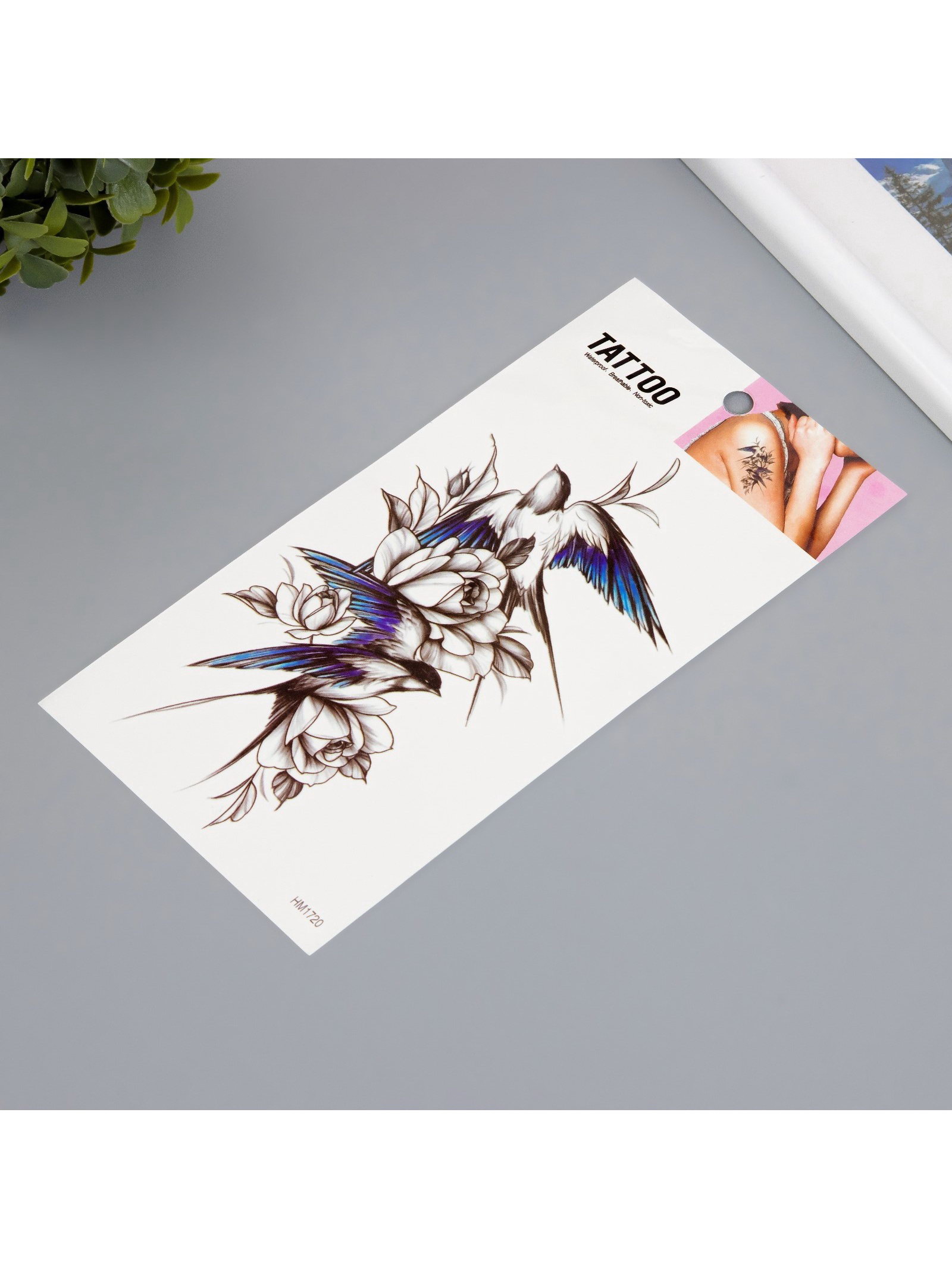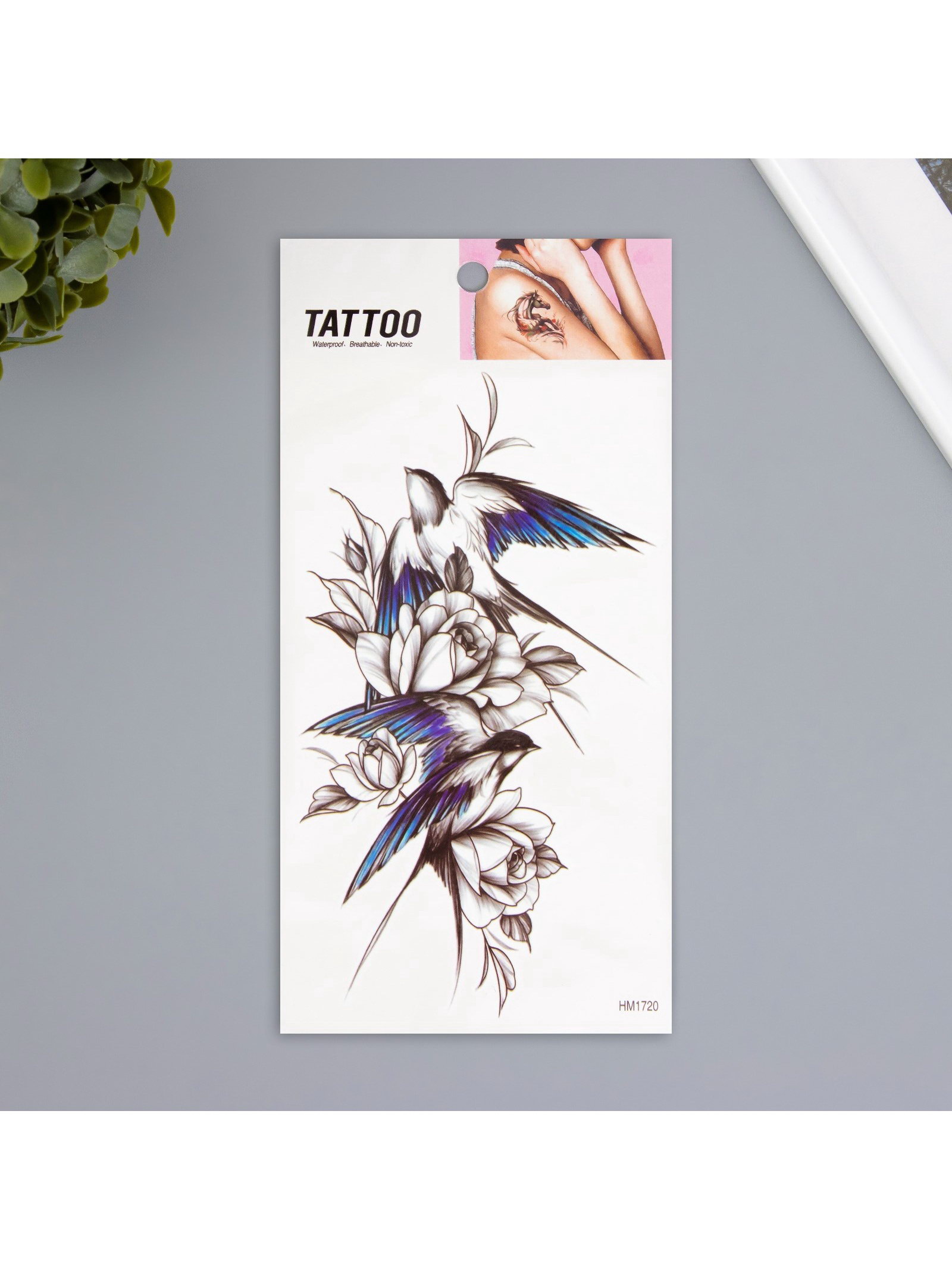 Переводные тату на тело цветные "Ласточка с синими перьями", 10x20.5 см, 10x20.5 см., КИТАЙ