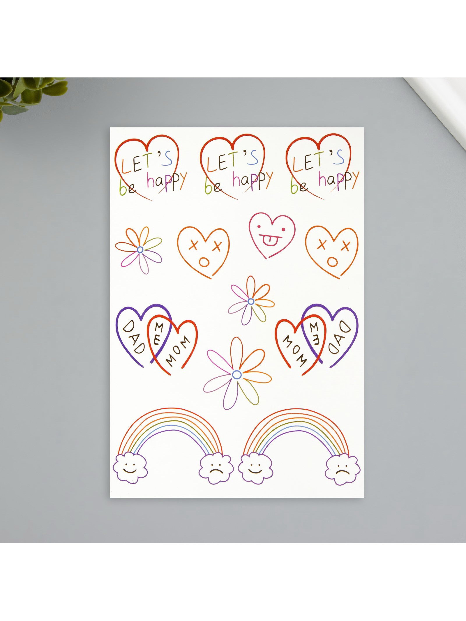 Переводные тату на тело цветные "Будем счастливыми", 10.5x15.2 см, 10.5x15.2 см., Китай