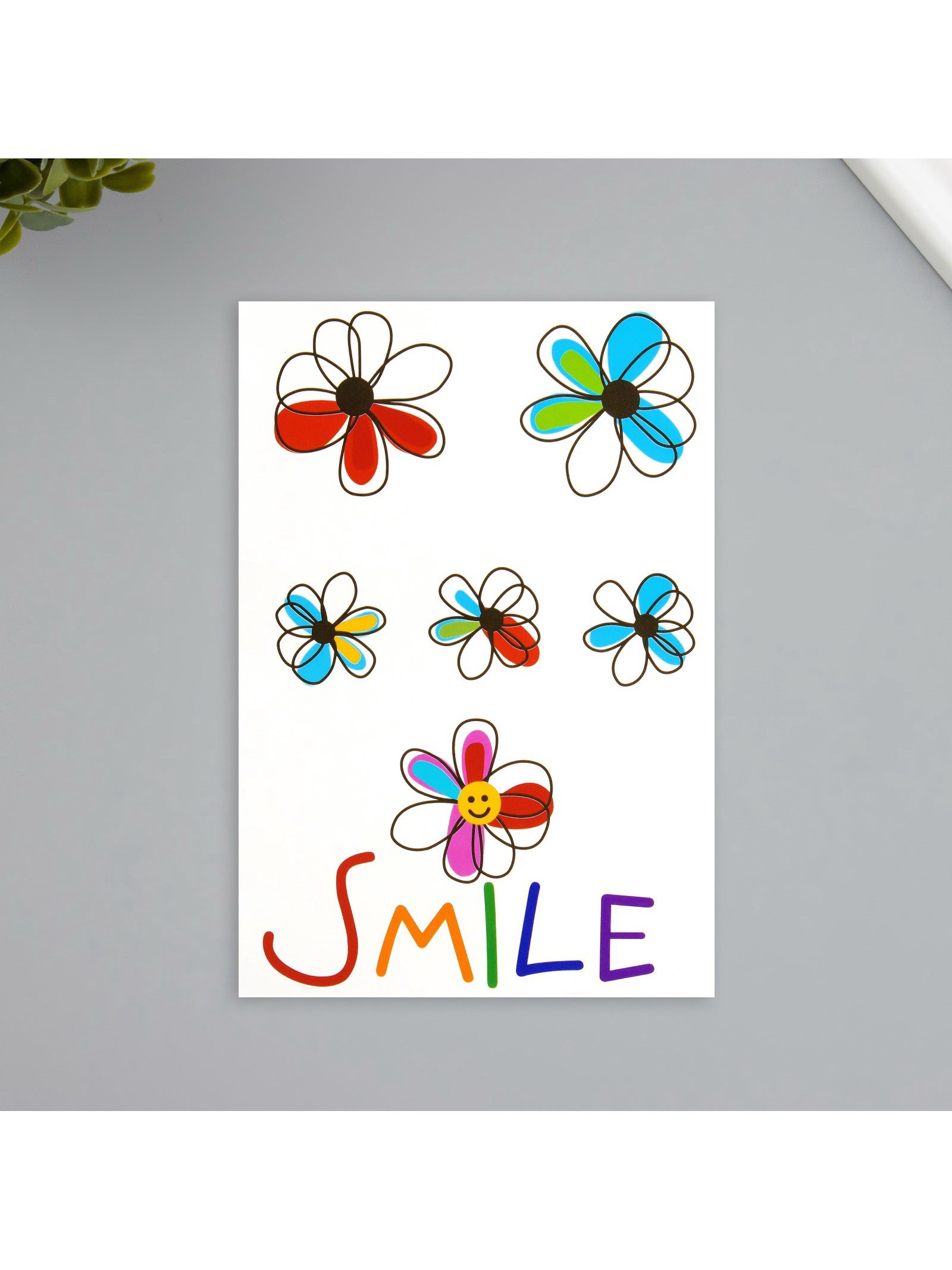 Переводные тату на тело цветные "Улыбка", 10.5x15.2 см, 10.5x15.2 см., Китай