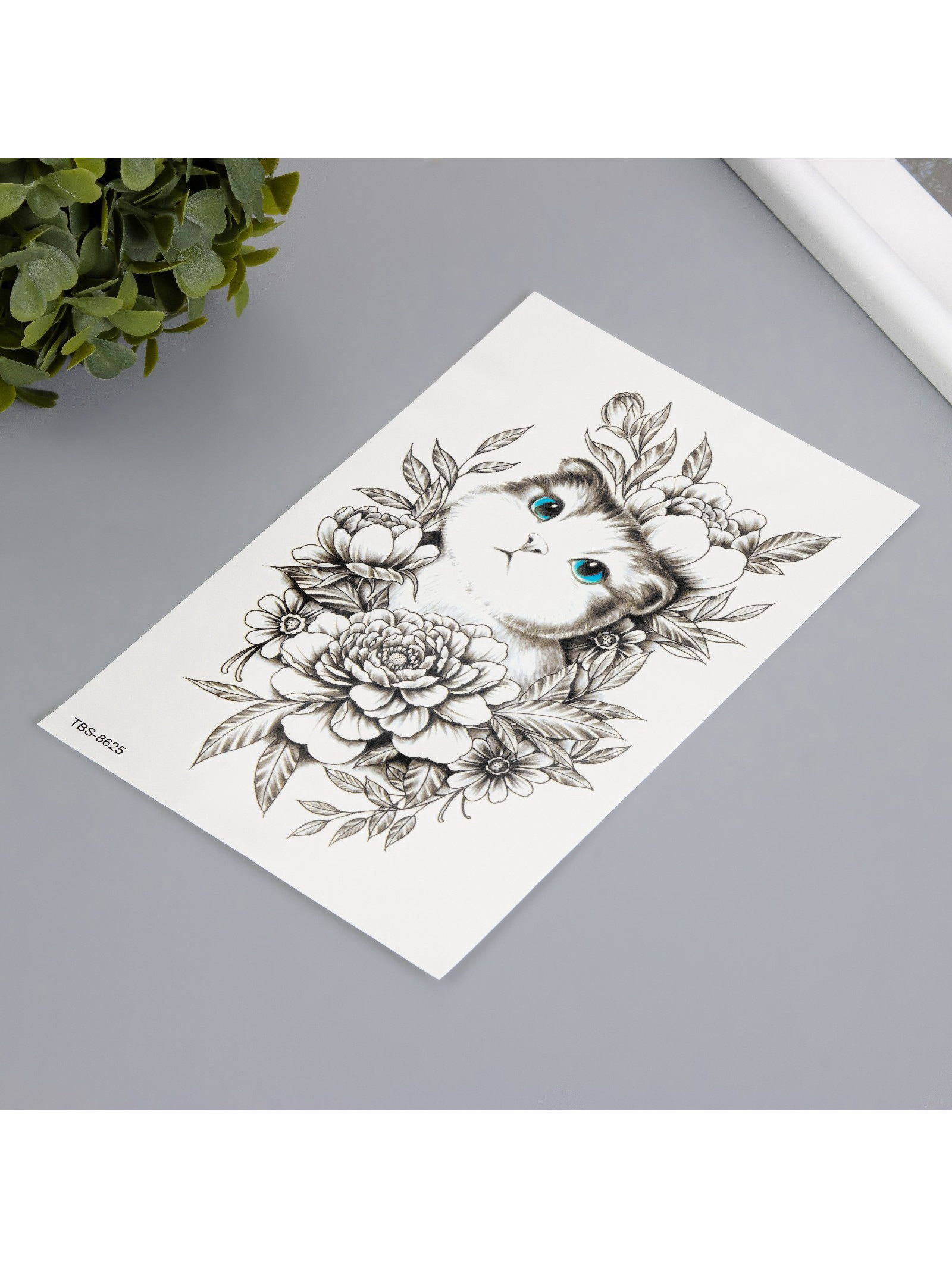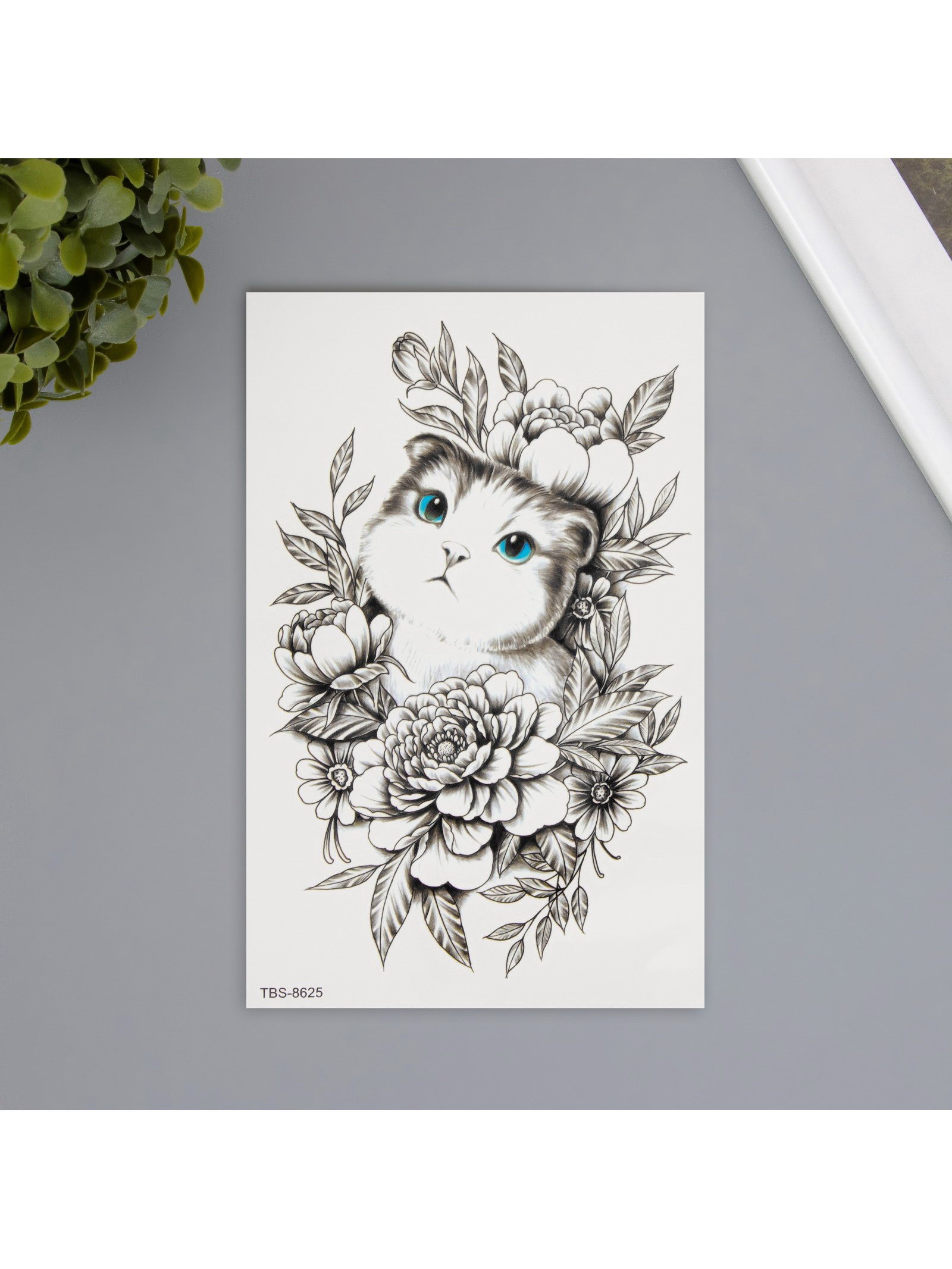 Переводная тату на тело цветная "Вислоухий котик", 12x19 см, 12x19 см., Китай