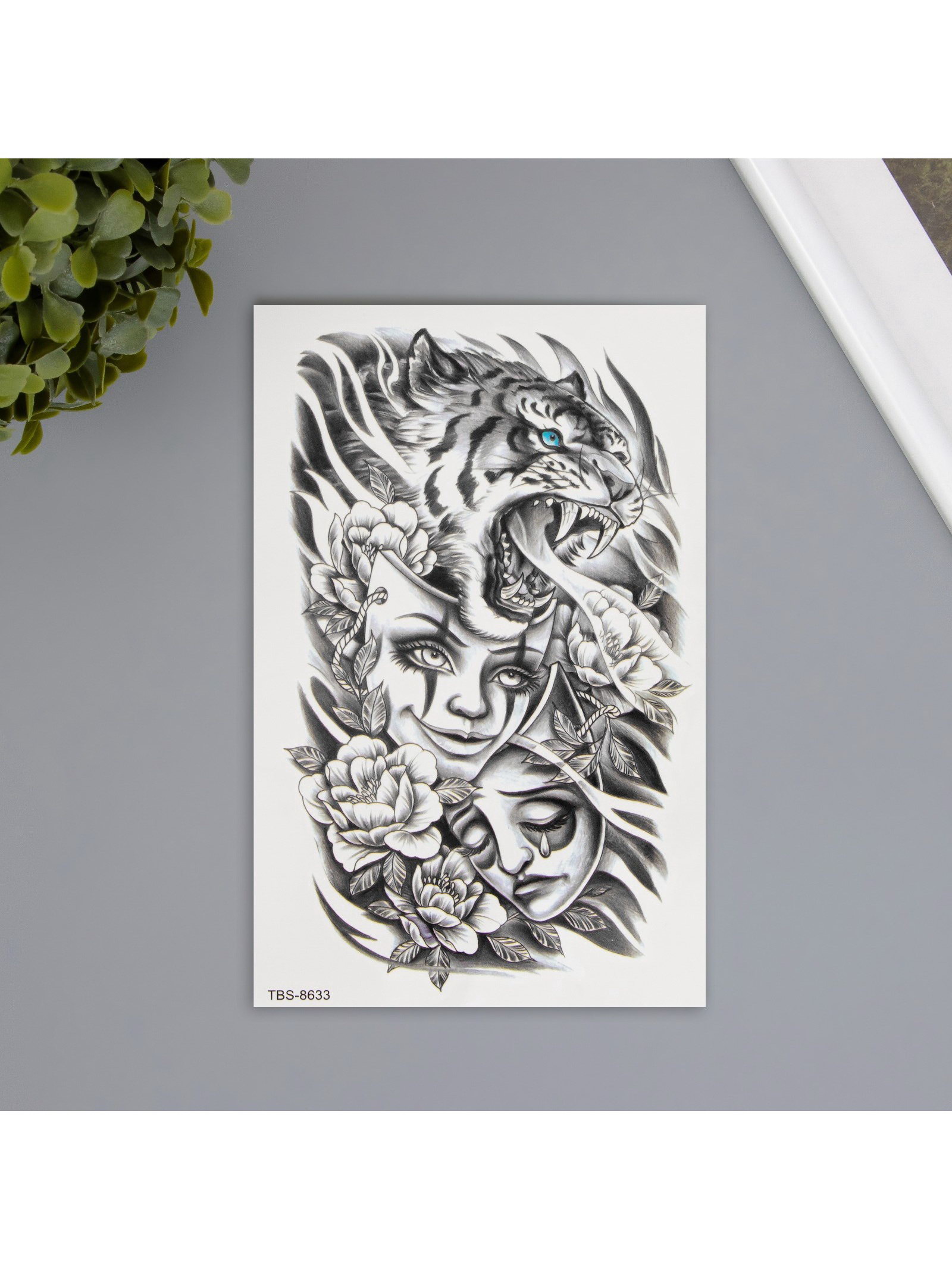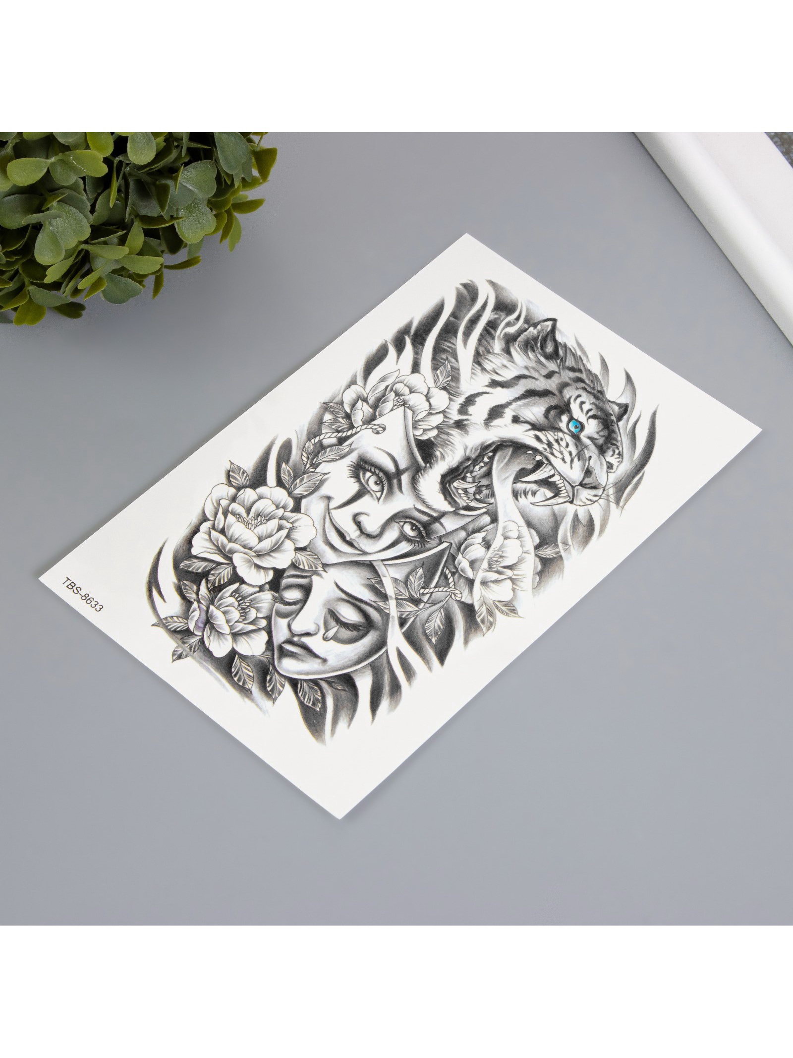 Переводная тату на тело чёрная "Театр", 12x19 см, 12x19 см., Китай