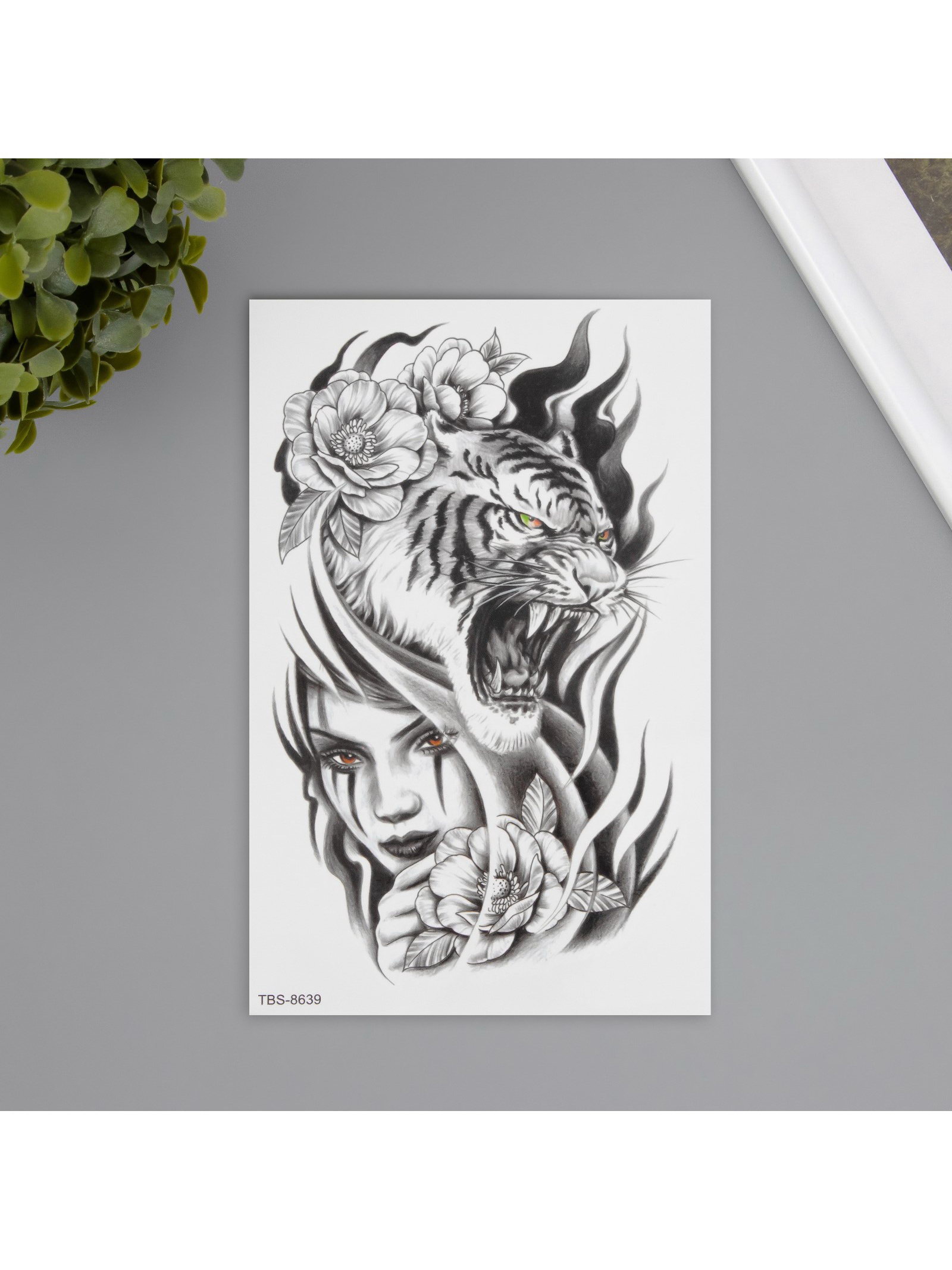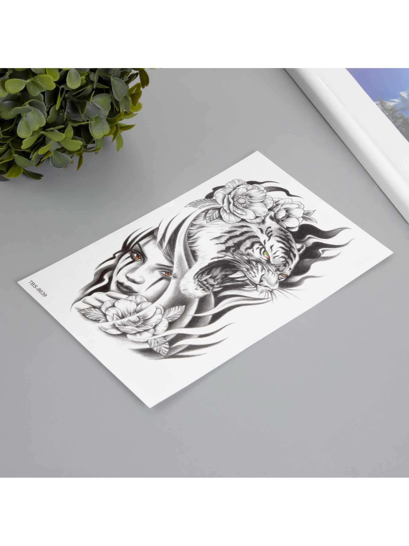 Переводная тату на тело чёрная "Хищница", 12x19 см, 12x19 см., Китай