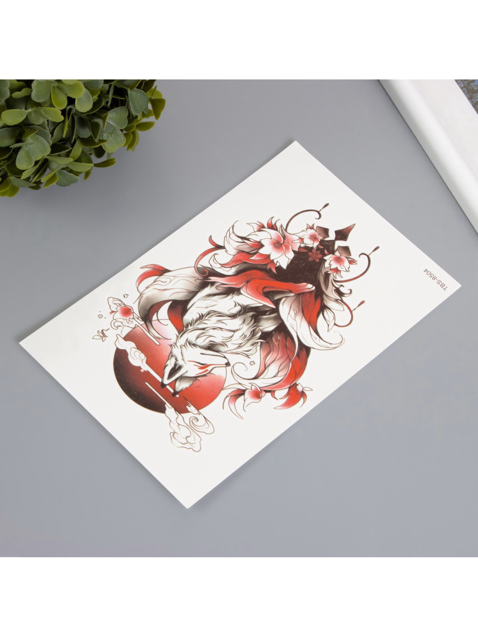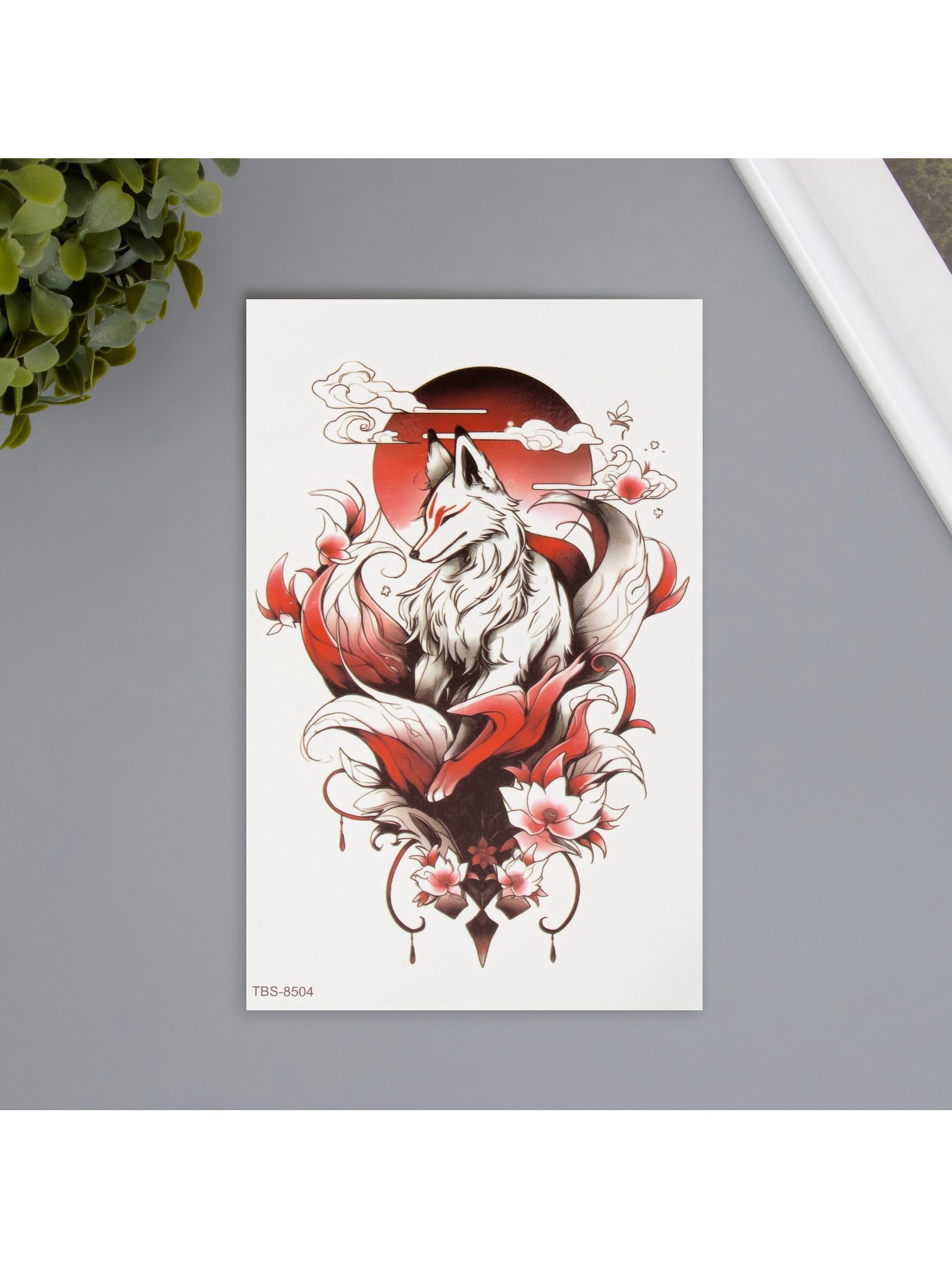 Переводная тату на тело цветная "Лисица в цветах", 12x19 см, 12x19 см., Китай
