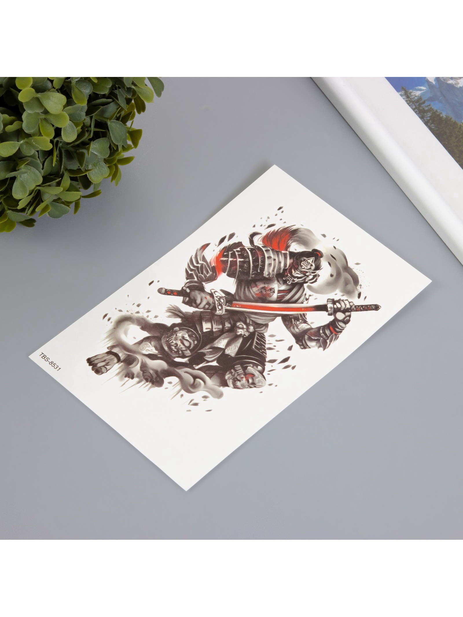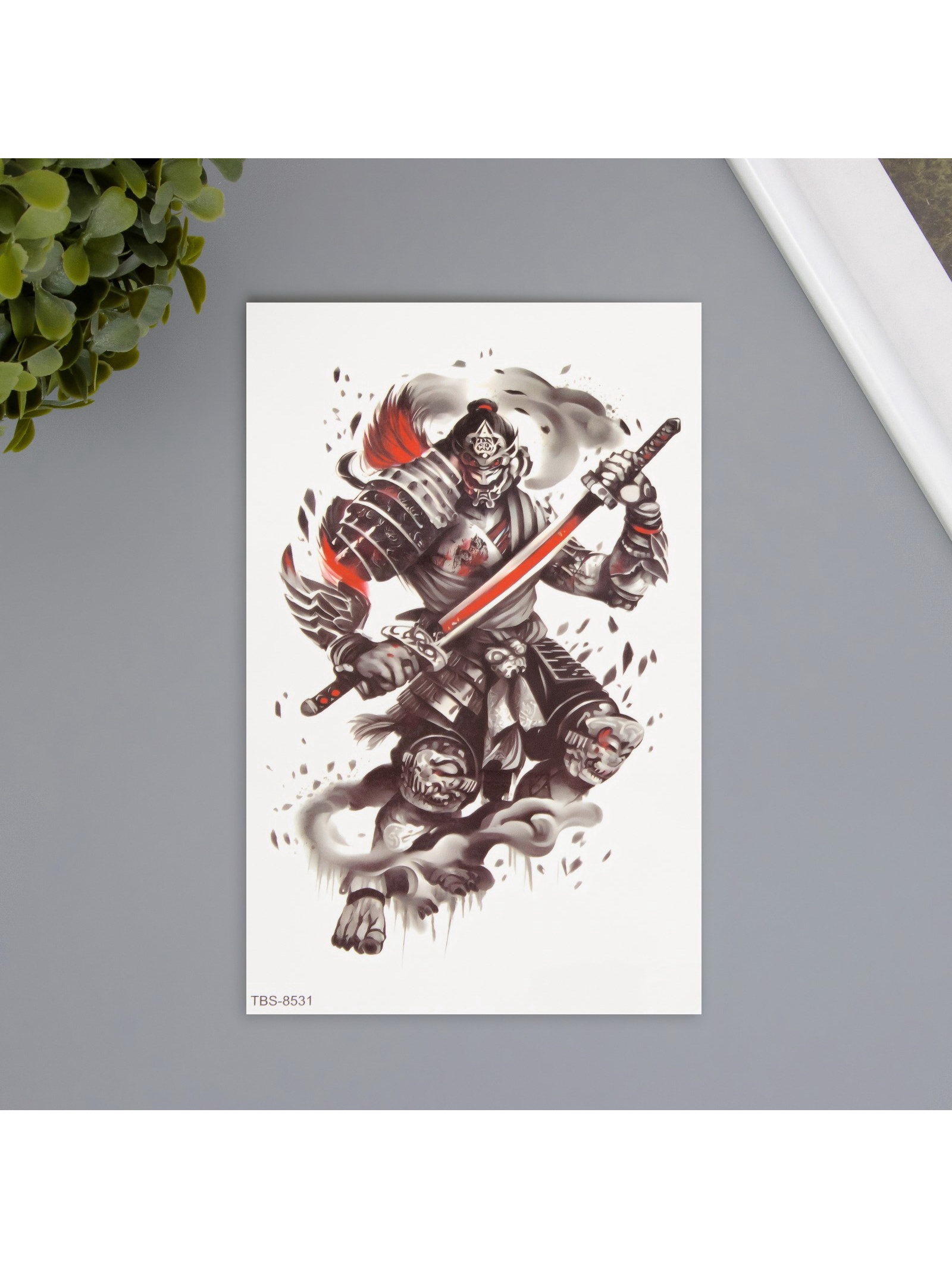 Переводная тату на тело цветная "Воин тумана", 12x19 см, 12x19 см., Китай