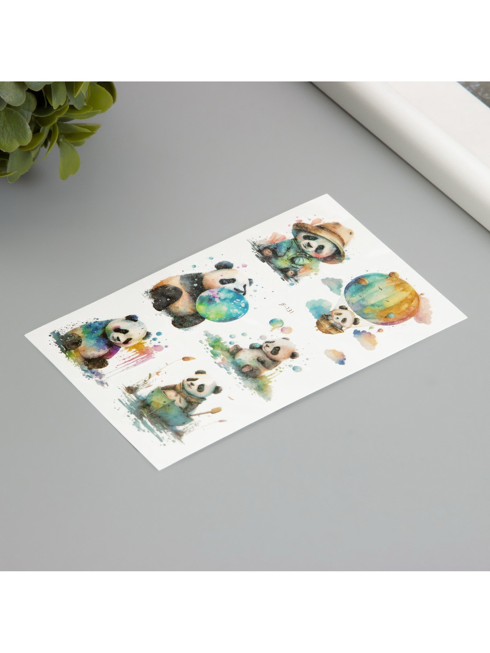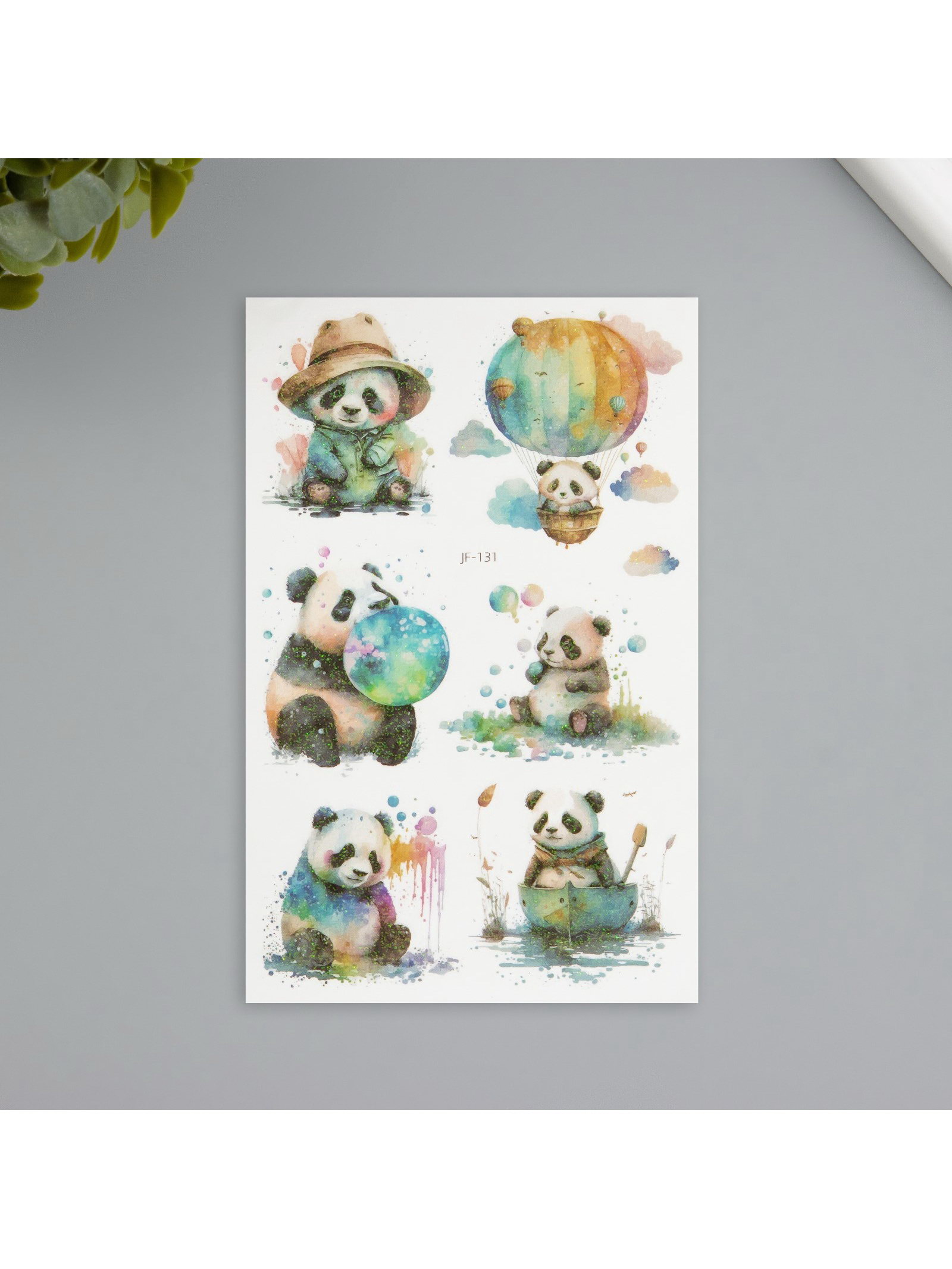Переводные тату на тело светящиеся с блёстками "Панда малыш", 7.5x12 см, 7.5x12 см., Китай