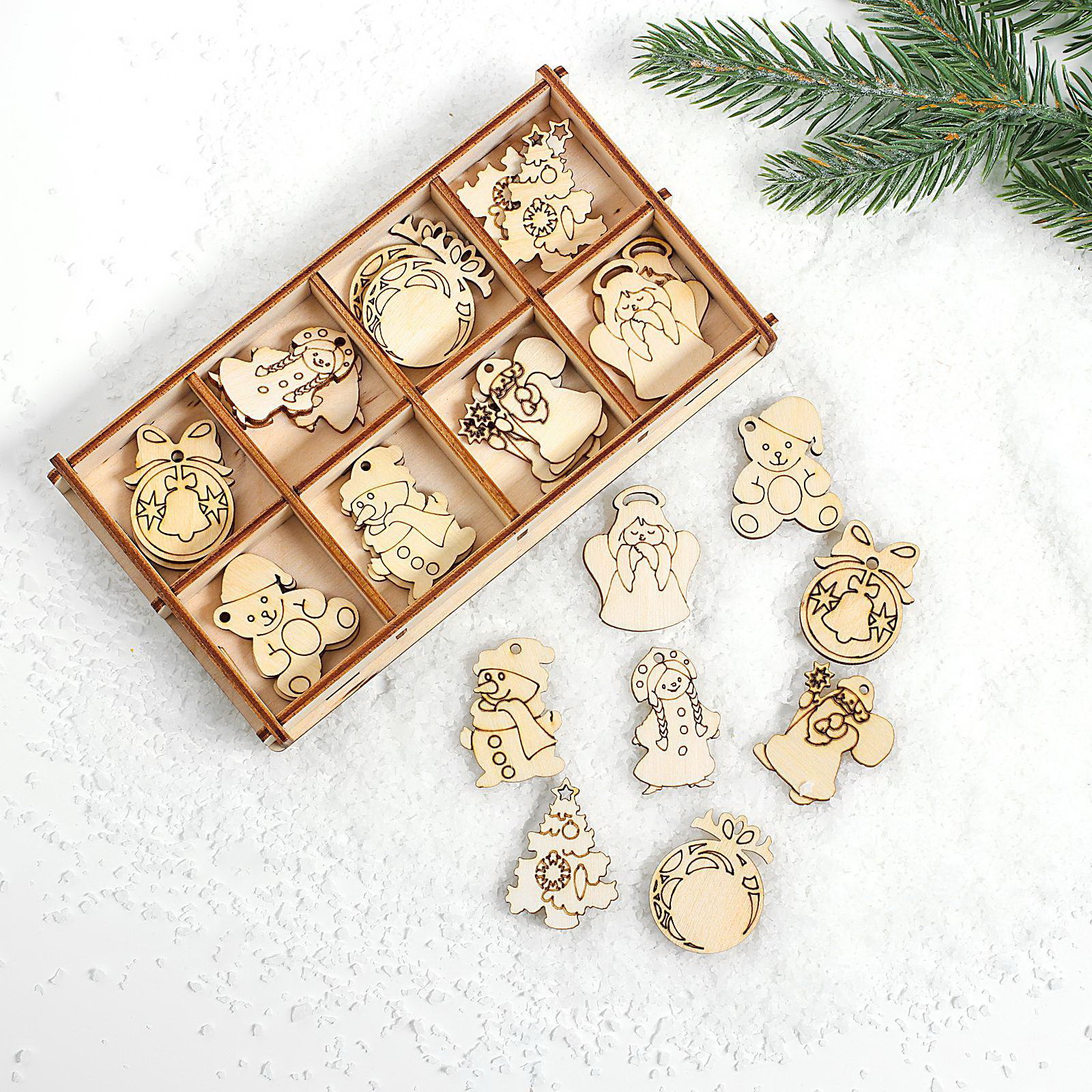 Набор заготовок в коробочке "Ёлочные украшения" 24 элемента, Smile Decor, Россия