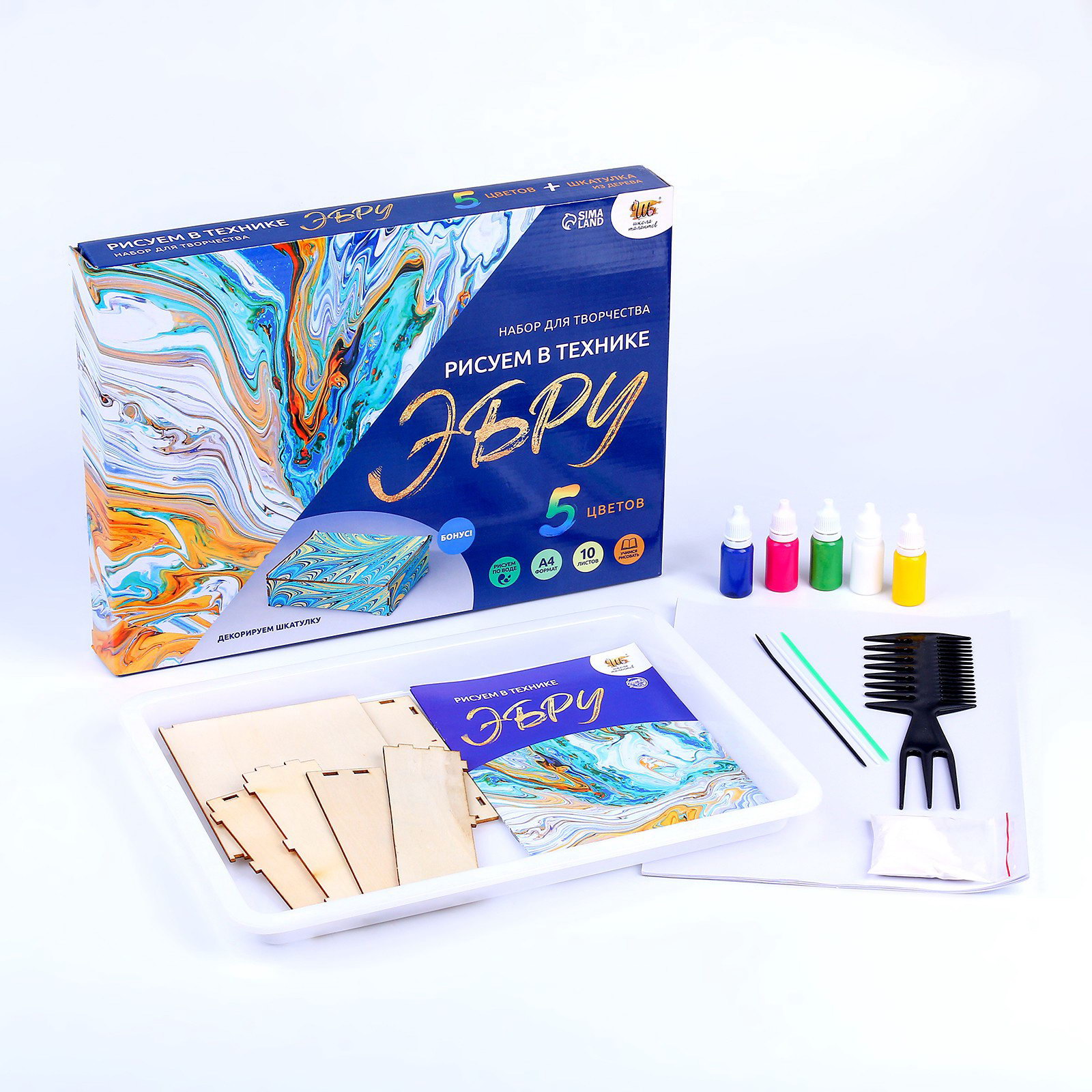 Набор для творчества "Рисуем в технике Эбру", формат А4 + шкатулка из дерева, 26x36x4 см., Школа талантов, Китай