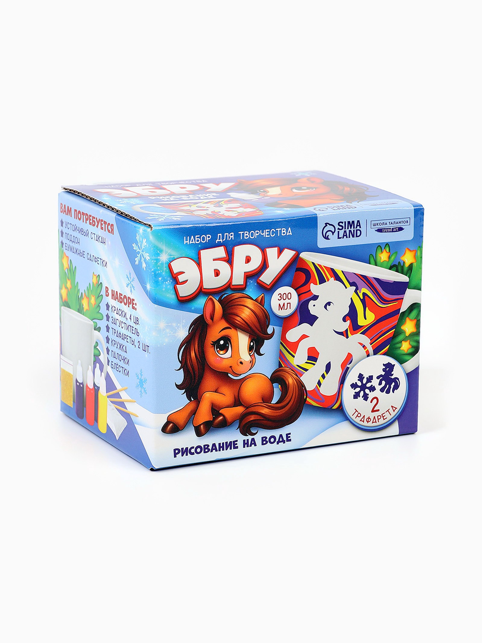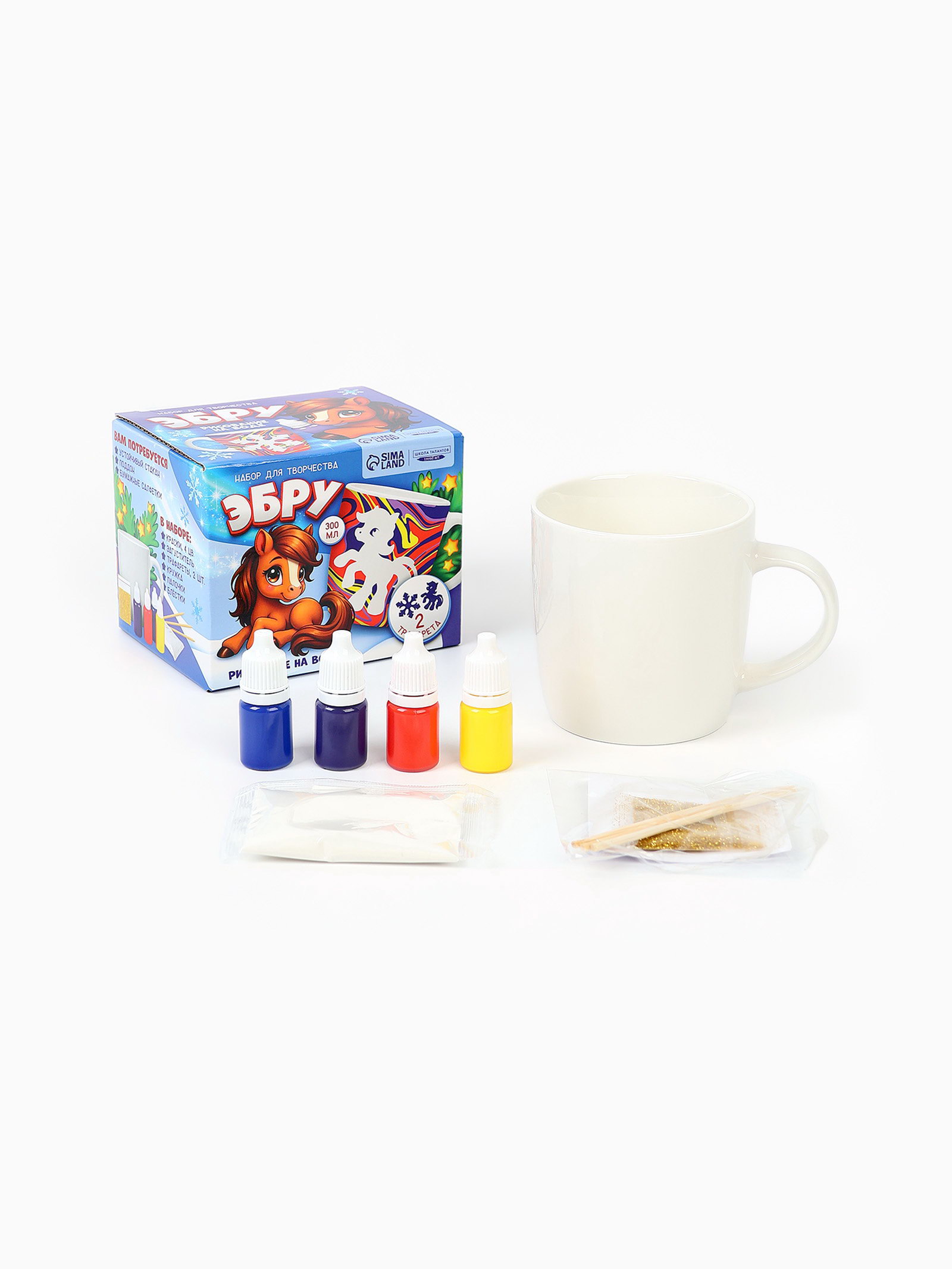 Набор для творчества эбру, создай свою кружку "Снежная лошадка", 300 мл, 8.7x11.4x8.8 см., Школа талантов, Китай