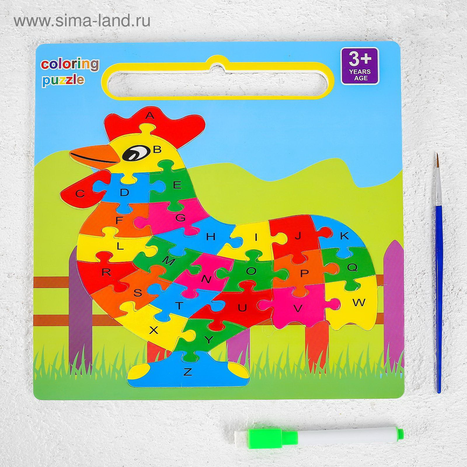 Развивающий набор 3в1 "Петушок", раскраска, пазл, планшет, маркер, в пакете, 25x0.5x24.3 см., Китай