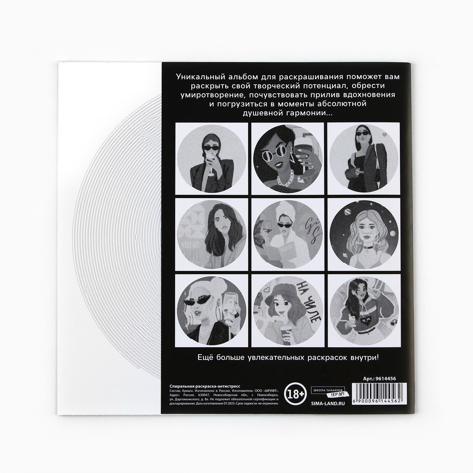 Спиральная раскраска-антистресс "Женская энергия", 20 x 20 см, Школа талантов, Россия