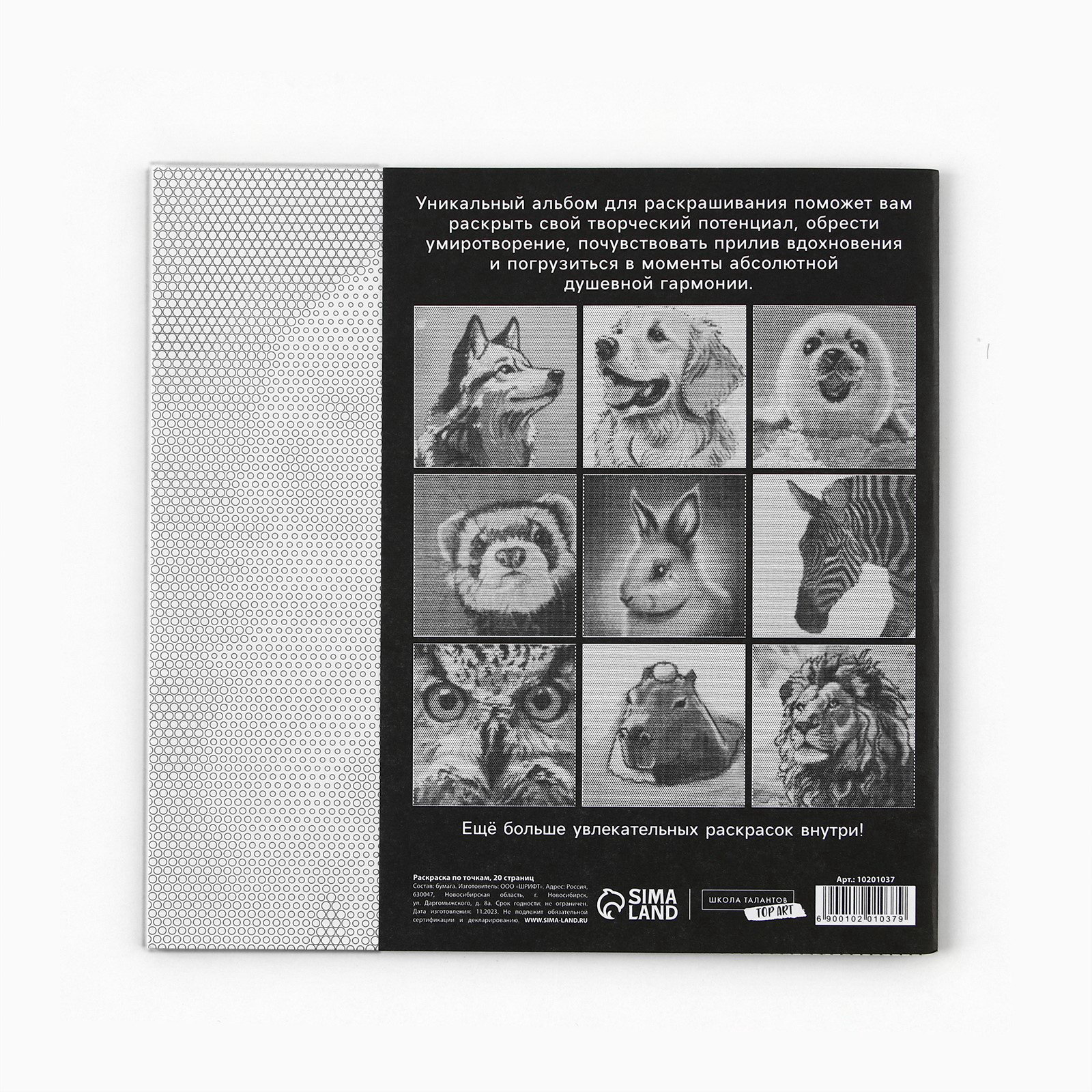 Возраст: Любой, От 7 лет Размер упаковки: 21 x 0.2 x 21 см. Вид раскраски: Раскраски-антистресс Изображение: Животные Количество страниц: 20 Тип обложки: Мягкий переплёт Формат: Квадрат Тип скрепления: На скобе Набор: Нет Комплектация набора: Без комплектации Для кого: Унисекс tnved: 4903000000 Совершенно новый вариант раскраски-антистресс. На первый взгляд, это набор одинаковых листов, заполненных точками. Но, присмотритесь! Точки отличаются размером, составляя загадочный узор, раскрасив который, вы получите яркое изображение любимого персонажа. В альбоме вы найдете 20 зашифрованных картинок, размер альбома 21 x 21 см | ||