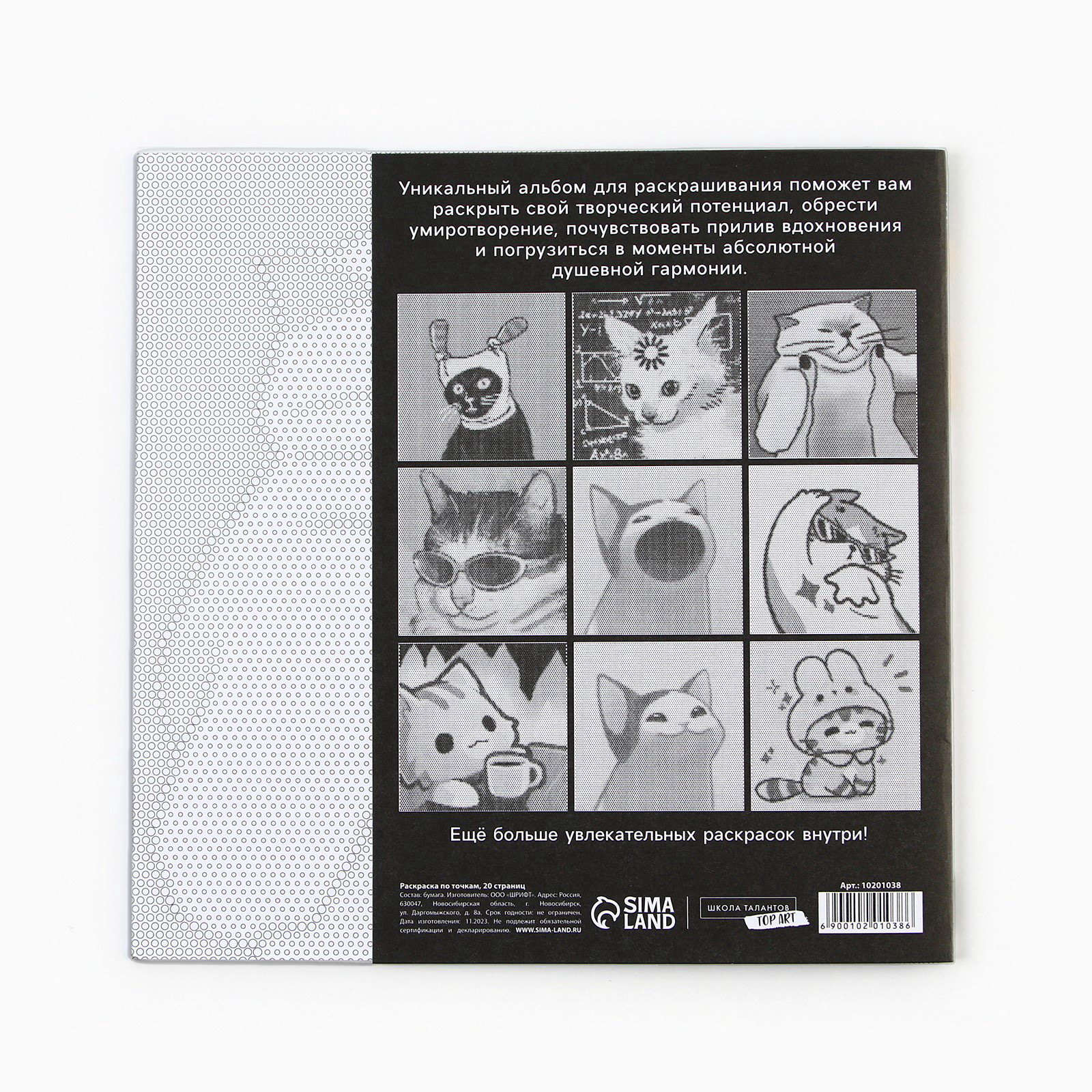 Возраст: Любой, От 7 лет Размер упаковки: 21 x 0.2 x 21 см. Вид раскраски: Раскраски-антистресс Изображение: Животные Количество страниц: 20 Формат: Квадрат Тип обложки: Мягкий переплёт Тип скрепления: На скобе Набор: Нет Комплектация набора: Без комплектации Для кого: Унисекс Для кого: Унисекс tnved: 4903000000 Совершенно новый вариант раскраски-антистресс. На первый взгляд, это набор одинаковых листов, заполненных точками. Но, присмотритесь! Точки отличаются размером, составляя загадочный узор, раскрасив который, вы получите яркое изображение любимого персонажа. В альбоме вы найдете 20 зашифрованных картинок, размер альбома 21 x 21 см | ||