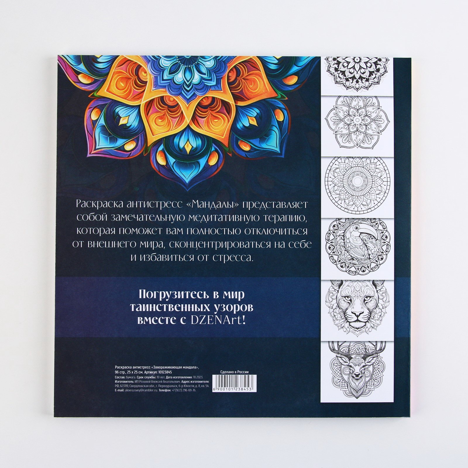 Раскраска-антистресс "Завораживающая мандала", 96 стр. 25х25 см, DzenArt, Россия