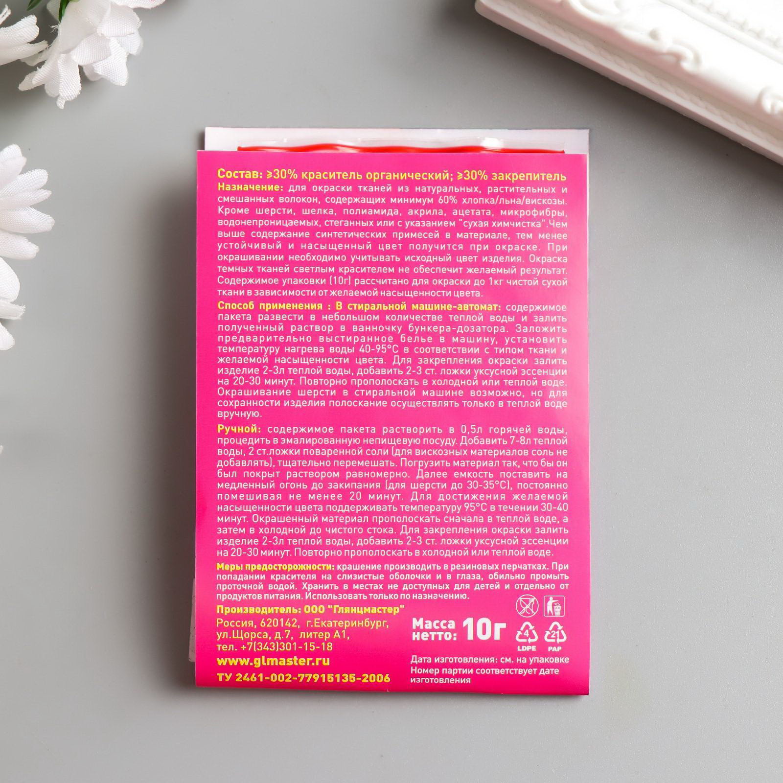 Размер упаковки: 0.2 x 10 x 7.5 см. tnved: 3203001000 Набор: Нет Вид: Краситель сухой Назначение: Для окрашивания ткани Цвет: Розовый Количество цветов: 1 Особенности цвета: Джинсовый Вид упаковки: Пакет Температурное ограничение транспортировки: Нет С помощью краски по ткани вы сделаете уникальную салфетку или придадите новый вид старой одежде. Выполненный таким способом рисунок не боится воды, сжатия и растягивания. Краситель "ДЖИНСА" розовый, 10 гр порадует вас своим качеством. Она ровно ляжет на материал и позволит воплотить все ваши творческие задумки. С этой краской вы измените своё представление о процессе декорирования и сделаете своими руками настоящий шедевр. Советы по росписи одежды