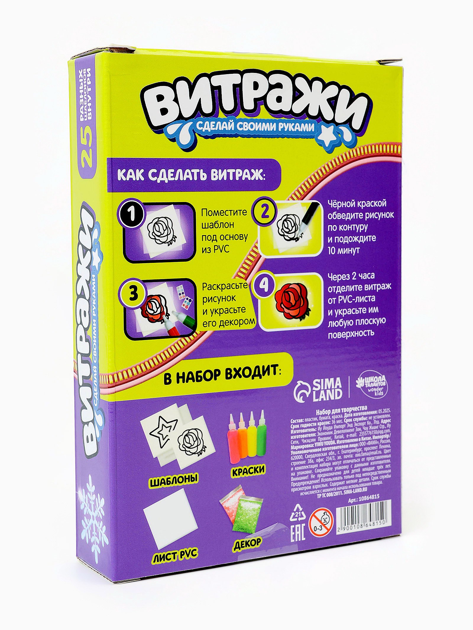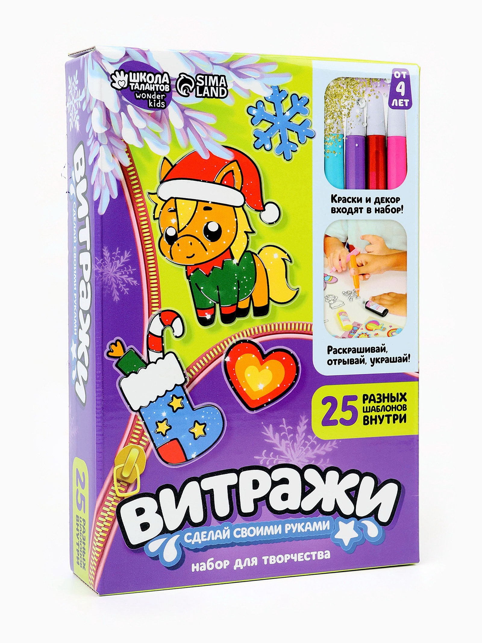 Возраст: Детский, Для детей, От 3 лет Составляющие набора: Блёстки, Краски, Стразы Размер упаковки: 3.5 x 18 x 12 см. tnved: 3213100000 Назначение: Витражная Для создания: Набор для декорирования Вид: Набор Тематика праздника: Новый год Количество цветов: 6 Символ года: Символ года 2026 (Лошадь) Цвет: Разноцветный Набор: Да Вид упаковки: Коробка картонная Тематика подарка: Творчество и хобби В наборе, шт.: 4 Тематика набора: Роспись, раскраска, рисование Для кого: Унисекс Адресат: Без адресата Подарите ребёнку возможность творить чудеса! Раскрашивая витраж, малыш разовьёт фантазию, аккуратность и почувствует себя настоящим художником. А готовая лошадка станет отличным украшением окна или ёлки. В комплекте есть: