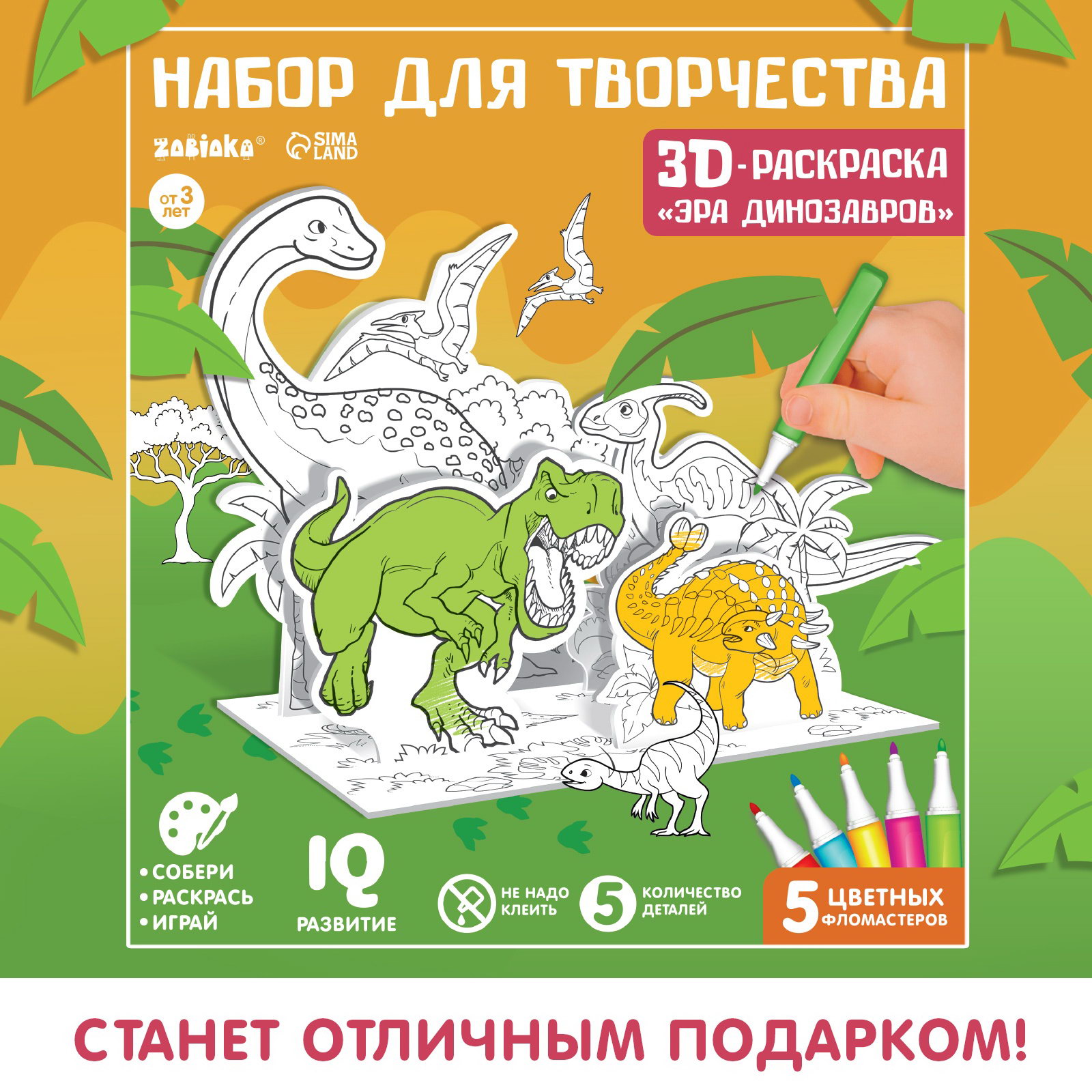 Раскраска 3D "Эра динозавров", 1.5x23x19 см., ZABIAKA, Китай