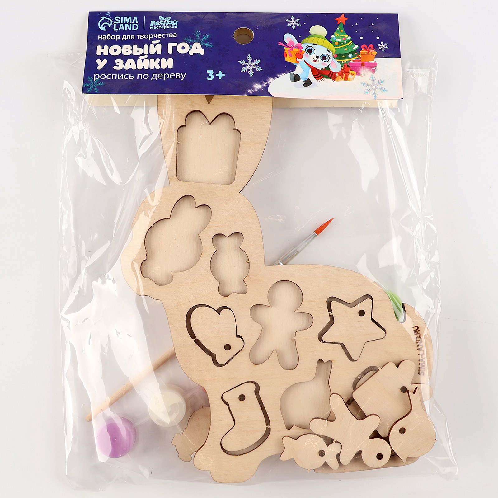 Роспись по дереву "Новый год у зайки", набор для творчества, Лесная мастерская, Россия
