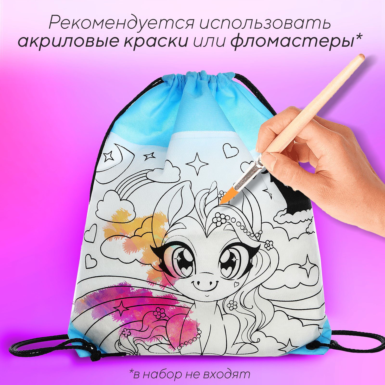 Мешок для обуви под раскраску "Пони" 34х40 см, спанбонд, 34x40 см., NAZAMOK KIDS, Россия