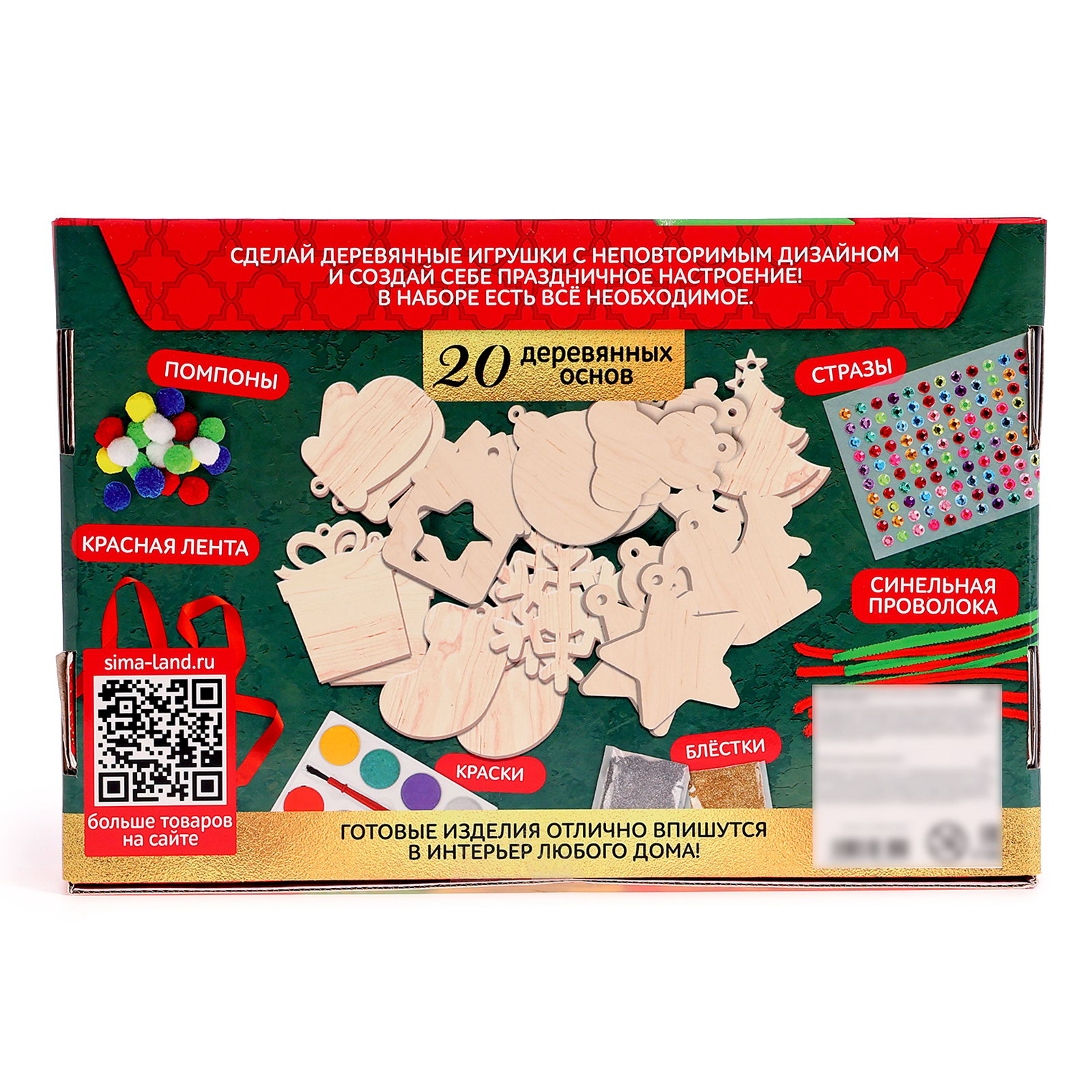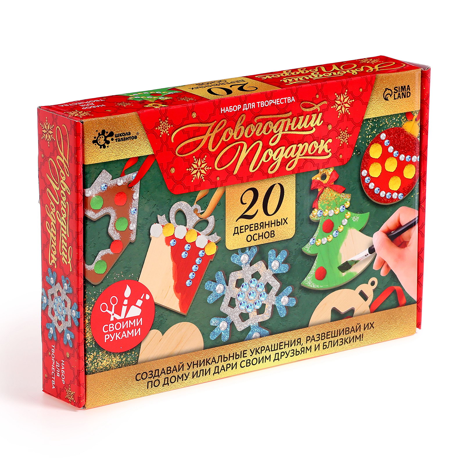 Возраст: Для детей, От 3 лет Комплектация набора: С блёстками, С кистью (-ями), С красками, Со стразами Размер упаковки: 16.5 x 4 x 24.5 см. Символ года: Нет Игрушка с видео: Да Вид: По дереву Вид заготовки: Ёлочное украшение Составляющие набора: Товары для творчества Вид набора: Ёлочные украшения Для создания: Ёлочная игрушка Тематика праздника: Новый год tnved: 3213100000 Новогодний набор для создания ёлочных украшений поможет провести время весело и с пользой. Раскрашивайте и украшайте деревянные основы на свой вкус и вас получатся неповторимые поделки для создания праздничной атмосферы. Получившиеся изделия можно использовать в качестве небольших подарков на Новый год для родных и близких. Деревянные основы подходят для раскрашивания красками, фломастерами и карандашами. Набор для творчества отличный способ занять детей в ожидании праздников. Он поможет развить воображение и мелкую моторику рук. Совместное создание поделок станет увлекательным занятием для всей семьи. Набор подойдёт для проведения творческих мастер-классов, школьных уроков труда, а также станет отличным подарком для близких или коллег. Разнообразьте свои новогодние праздники и добавьте в них нотку творчества! | ||