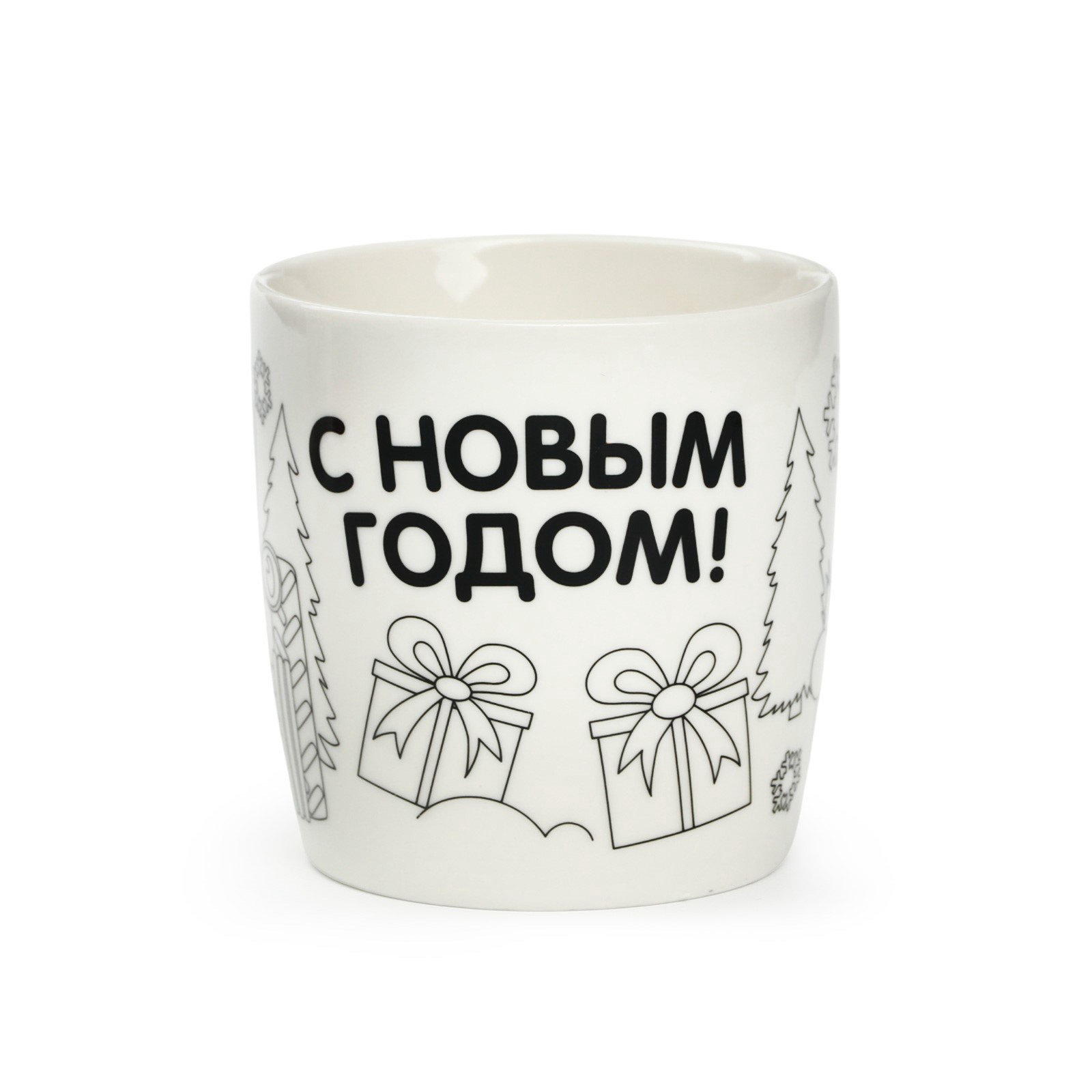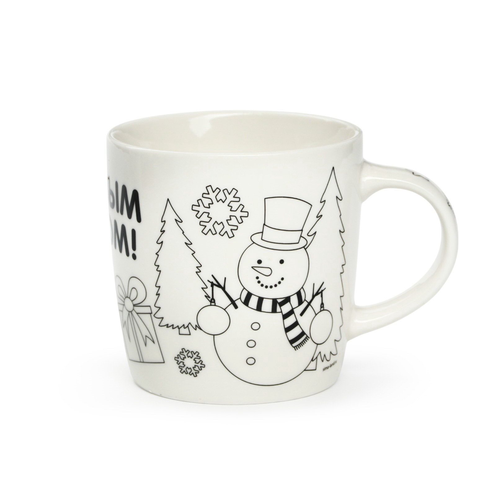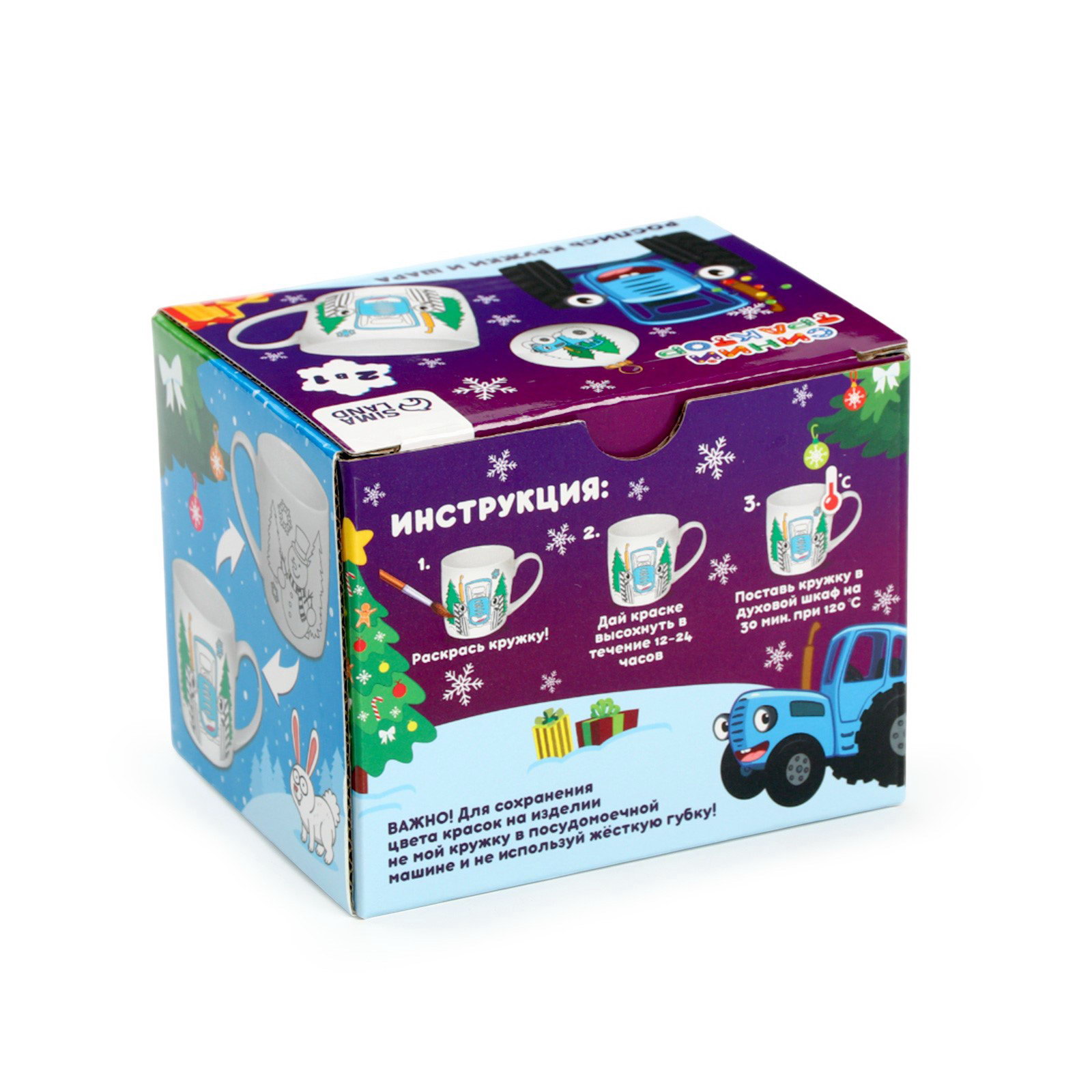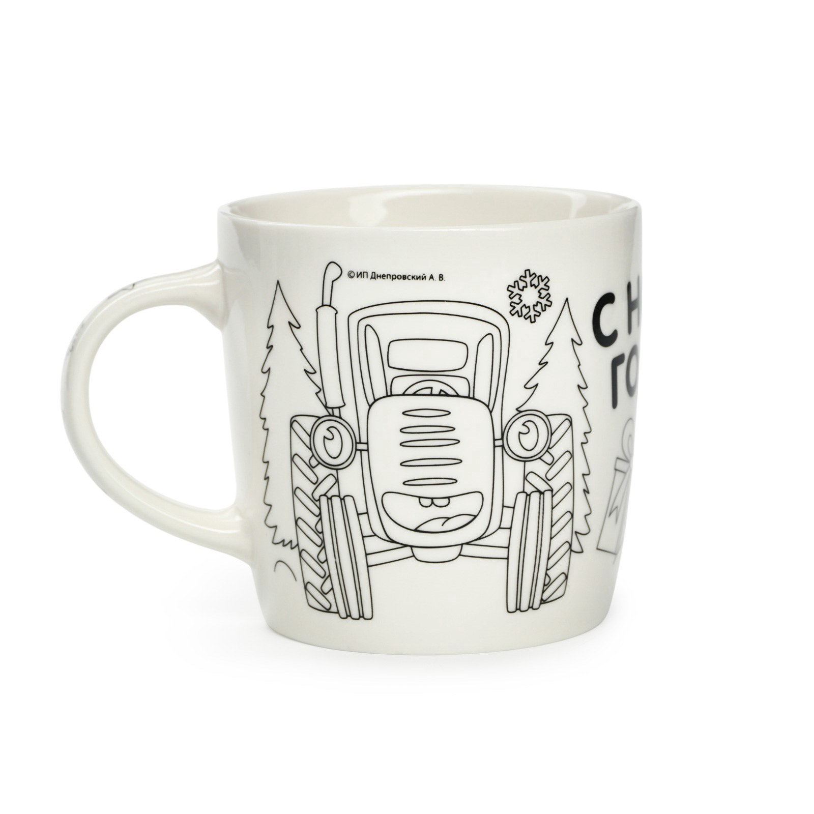 Кружка под раскраску с ёлочным шаром на новый год 300 мл, набор для творчества, 8.7x11.3x8.7 см., Синий трактор, Китай