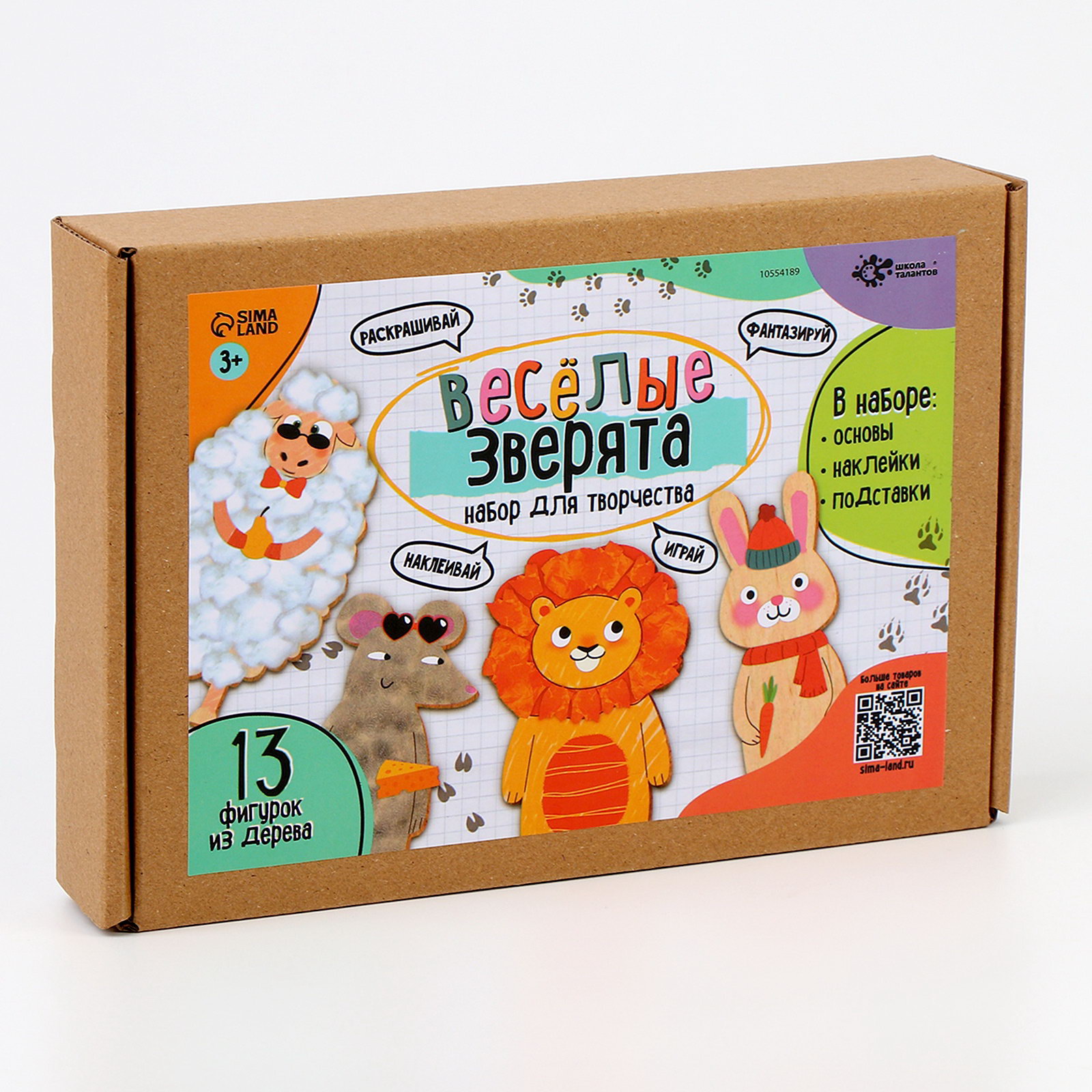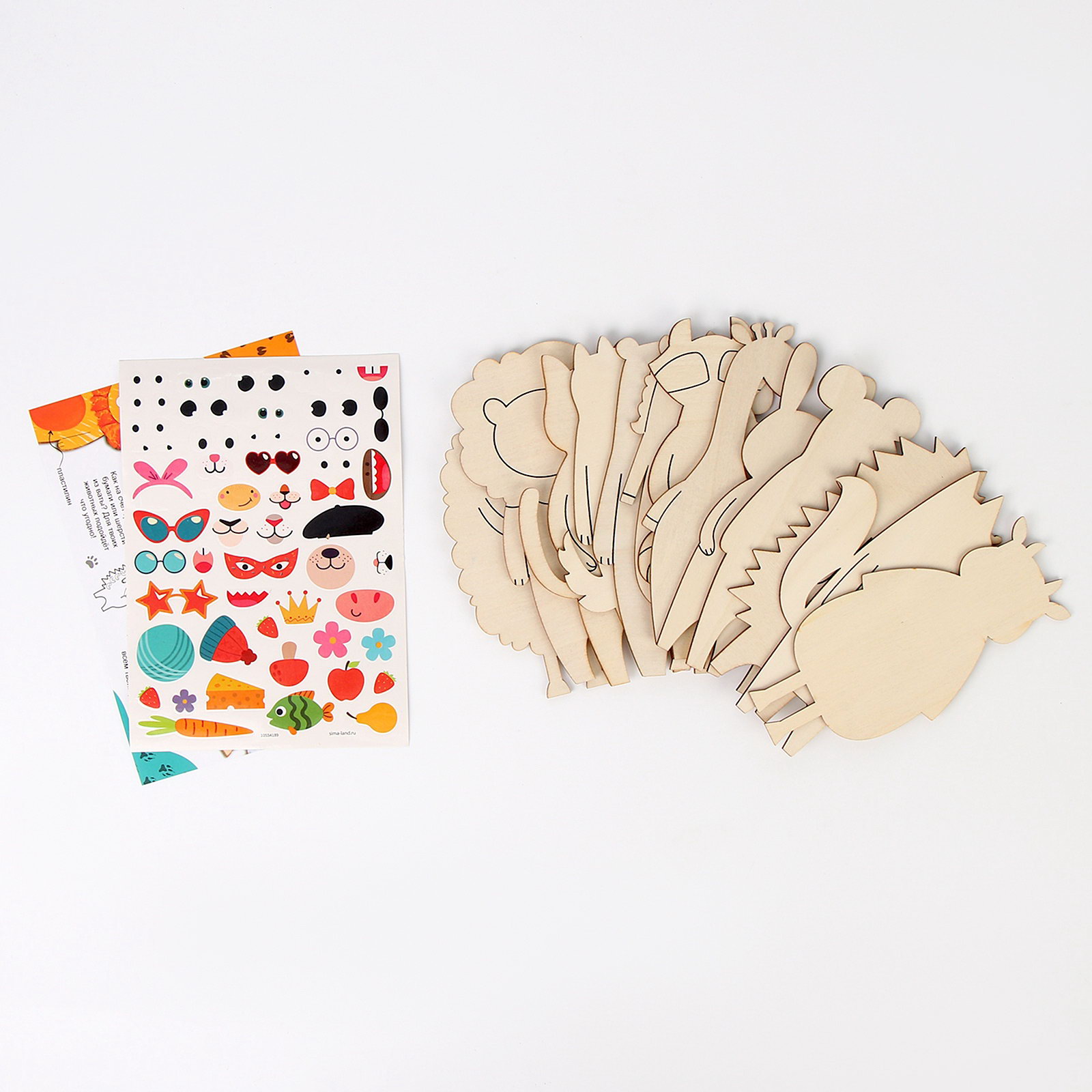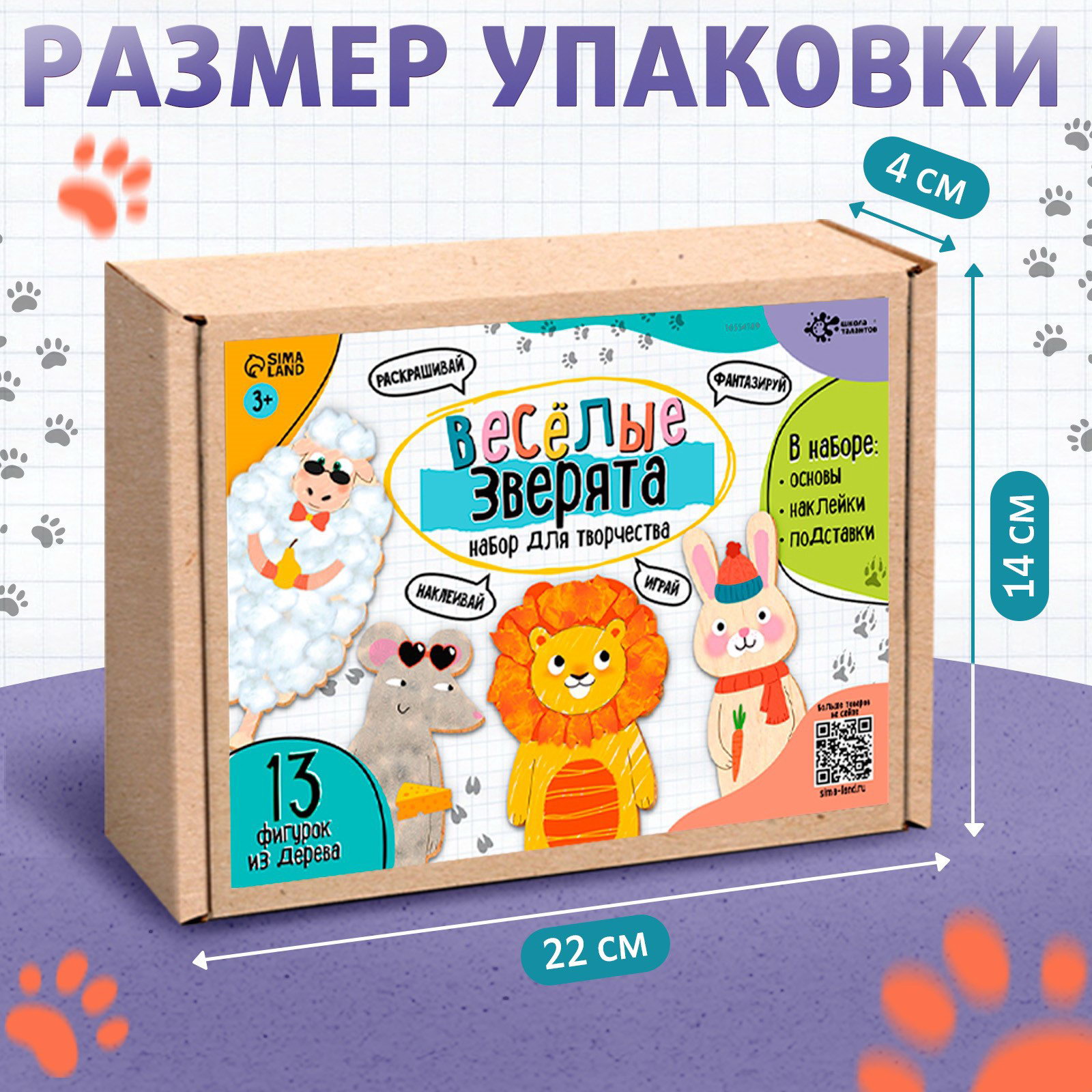 Роспись по дереву "Весёлые зверята", 13 основ, с наклейками, 24x18x4 см., Школа талантов, Китай