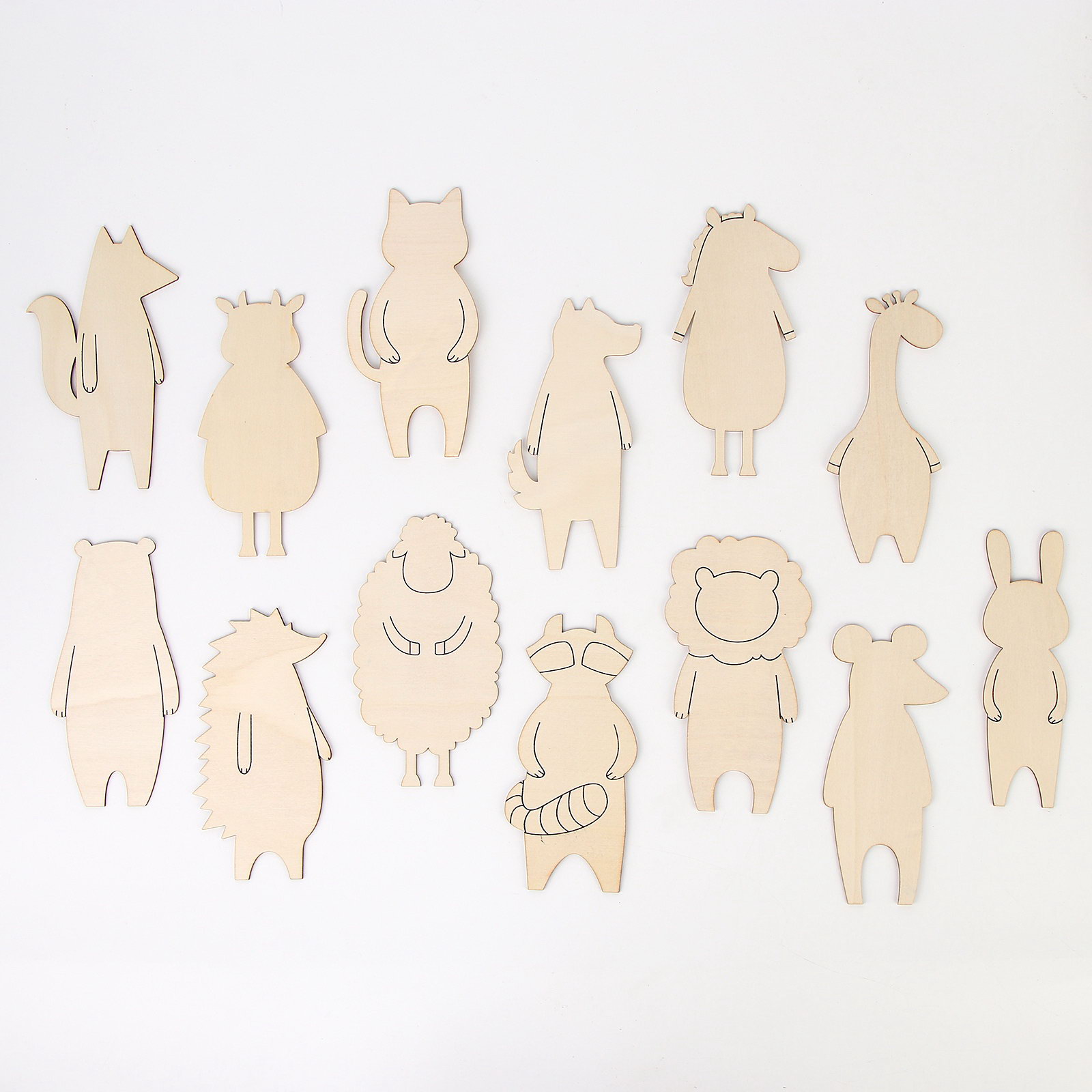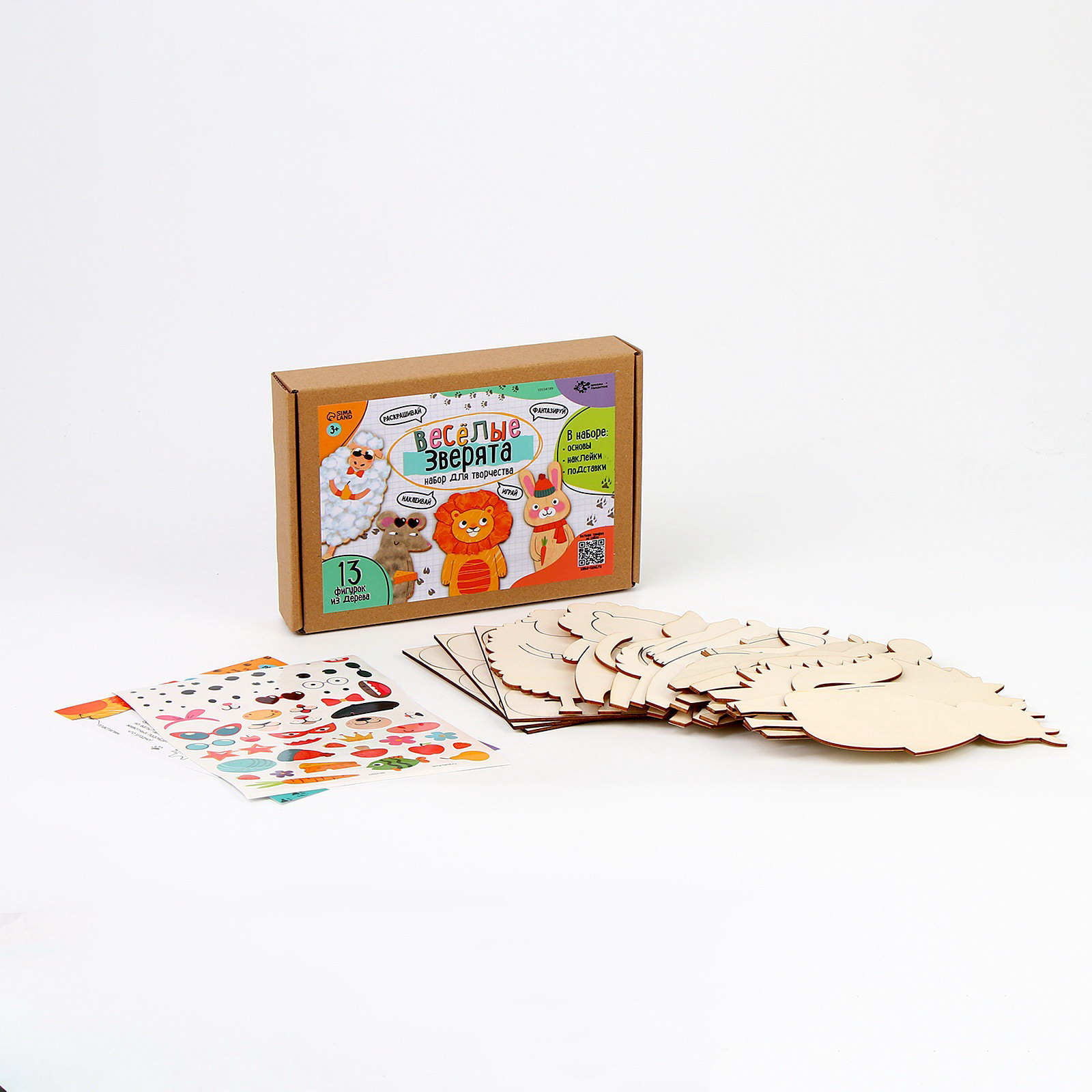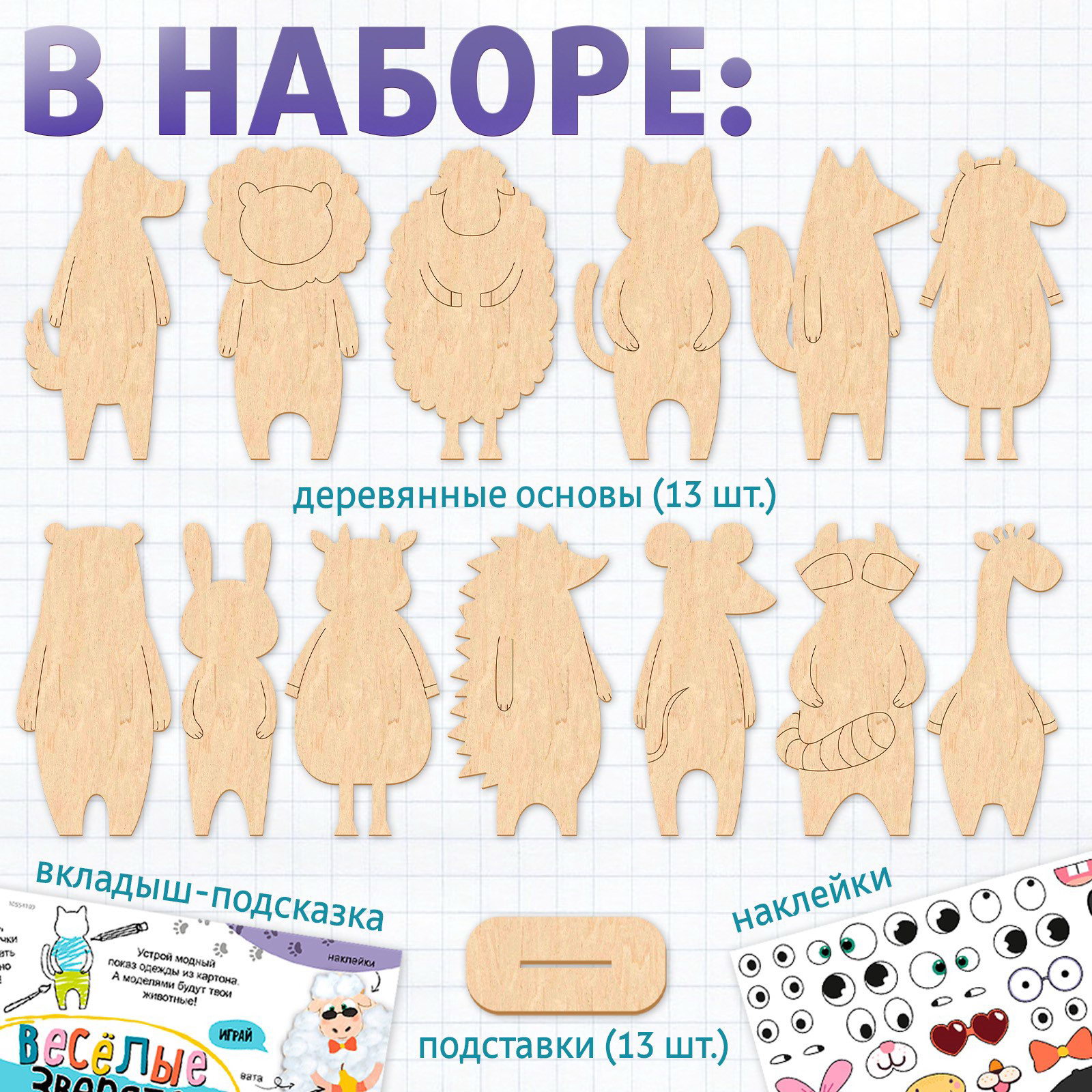 Роспись по дереву "Весёлые зверята", 13 основ, с наклейками, 24x18x4 см., Школа талантов, Китай