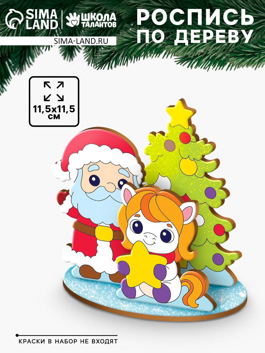 Роспись по дереву "Лошадка и Дед Мороз", набор для творчества, Школа талантов, Россия