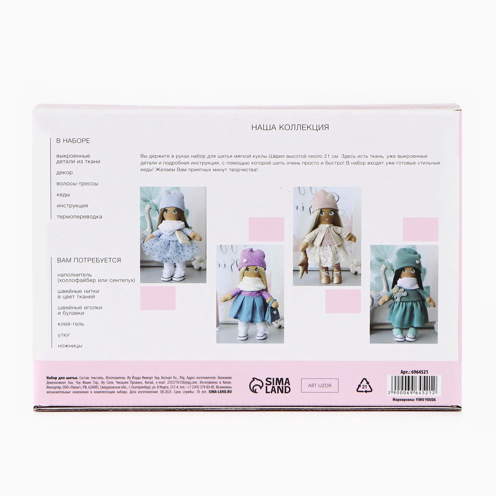 Возраст: Для взрослых, Для взрослых Тематика праздника: 8 Марта, Универсальная тематика Вид набора: Из текстиля и пряжи, Куклы Для кого: Для девочки, Для женщины Размер упаковки: 16 x 6 x 22.7 см. Вид комплектующих: Наборы Тематика: Игрушки tnved: 6307909600 tnved: 6307909600 Вид: Мягкие игрушки Символ года: Нет С нашим набором для творчества вы легко создадите красивую и уникальную игрушку. Особенности набора: