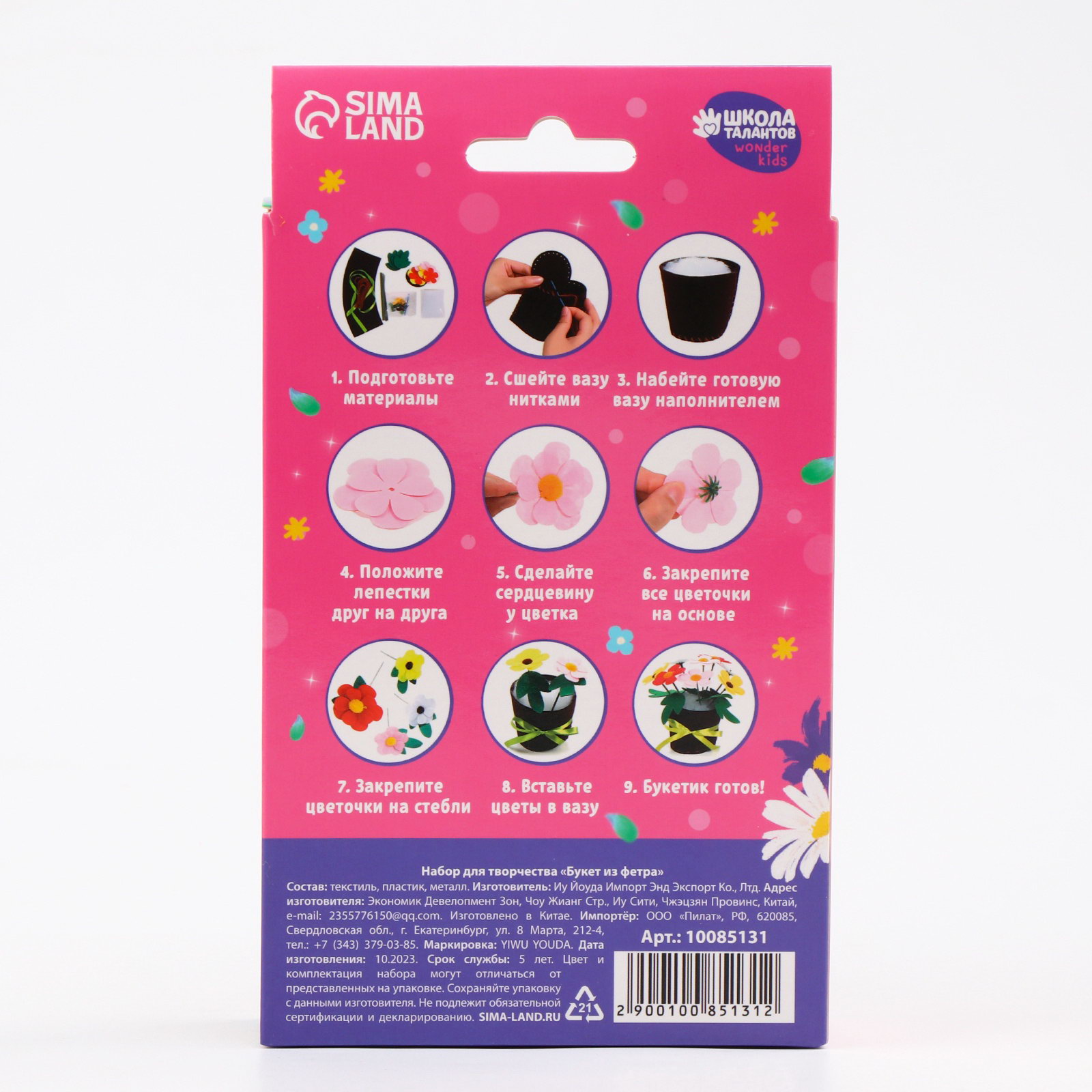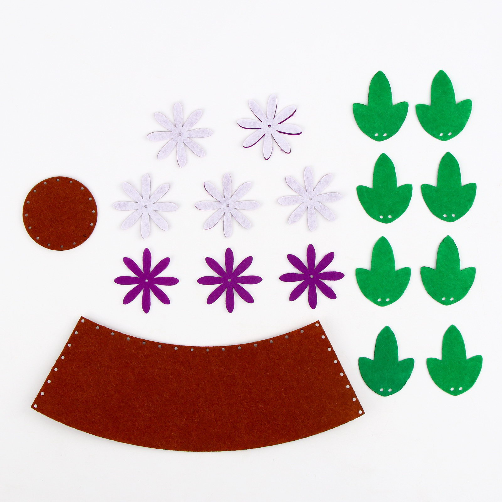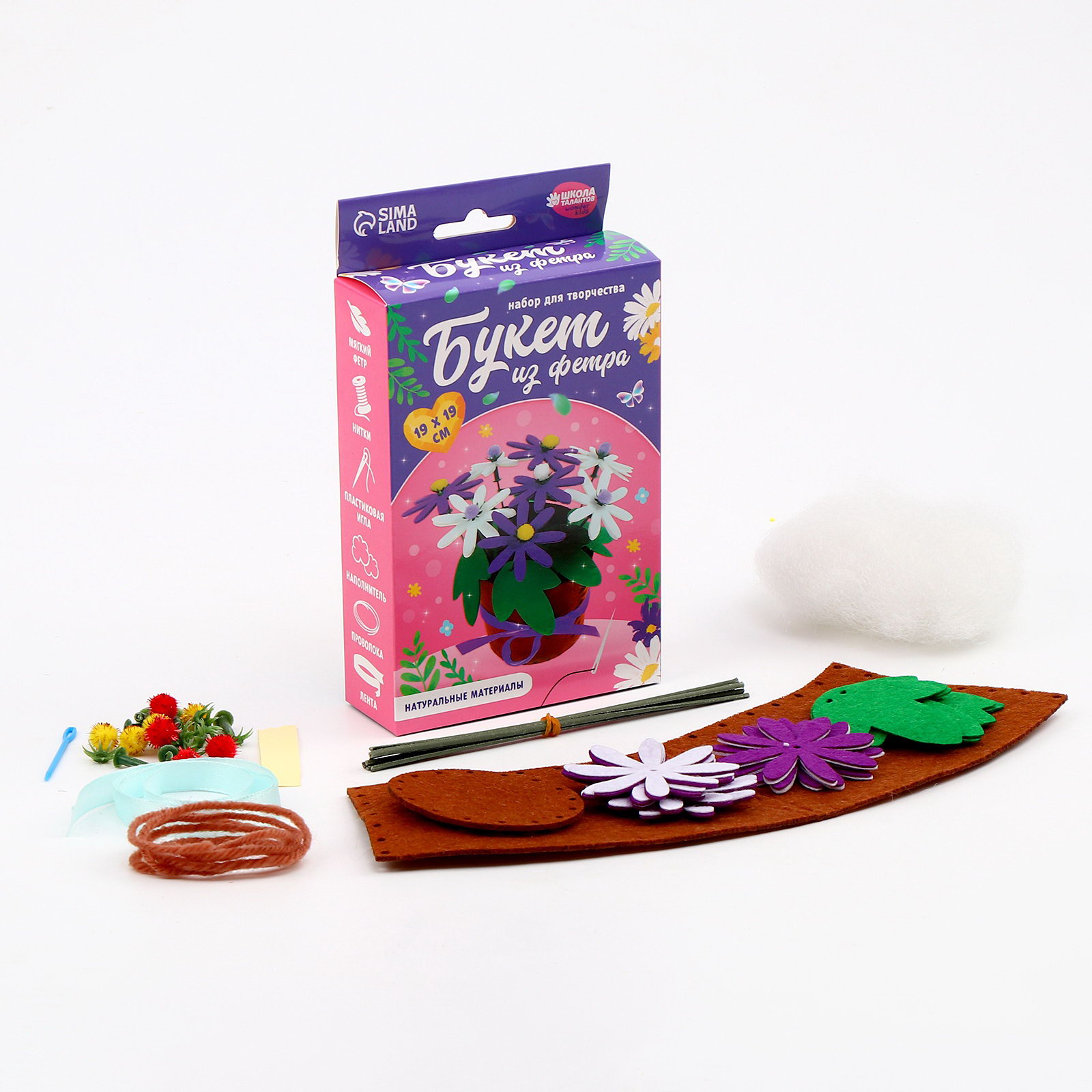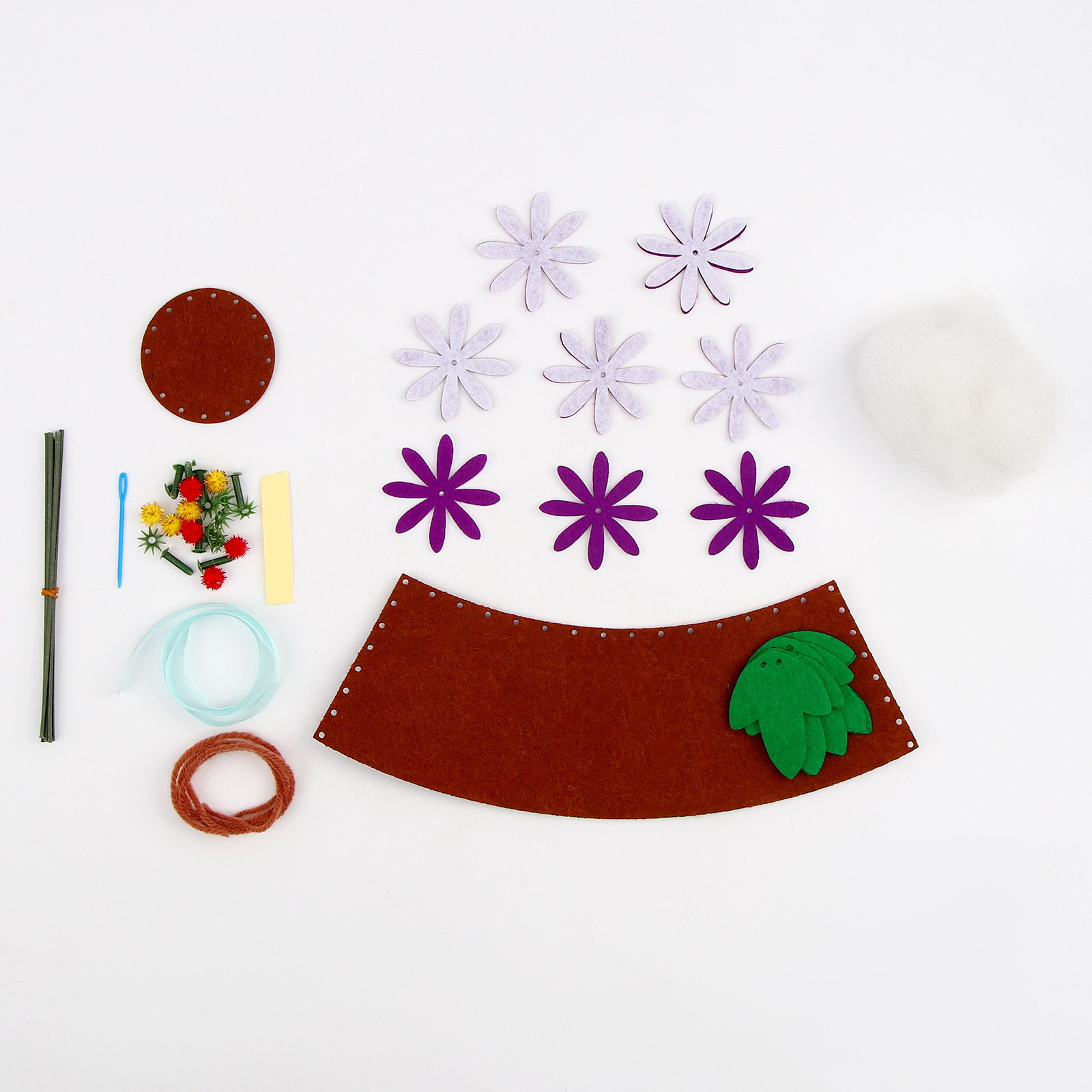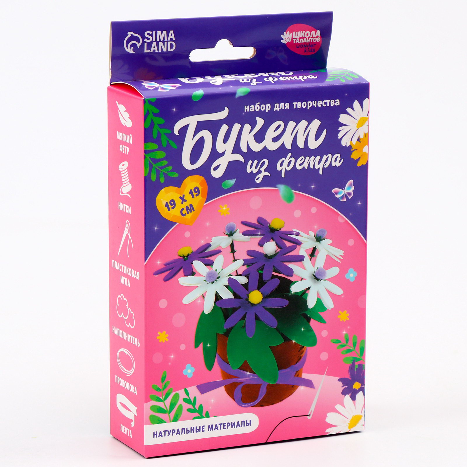 Набор для творчества. Букет из фетра в горшочке "Фиолетовые цветочки", 10.6x15.6x4 см., Школа талантов, Китай