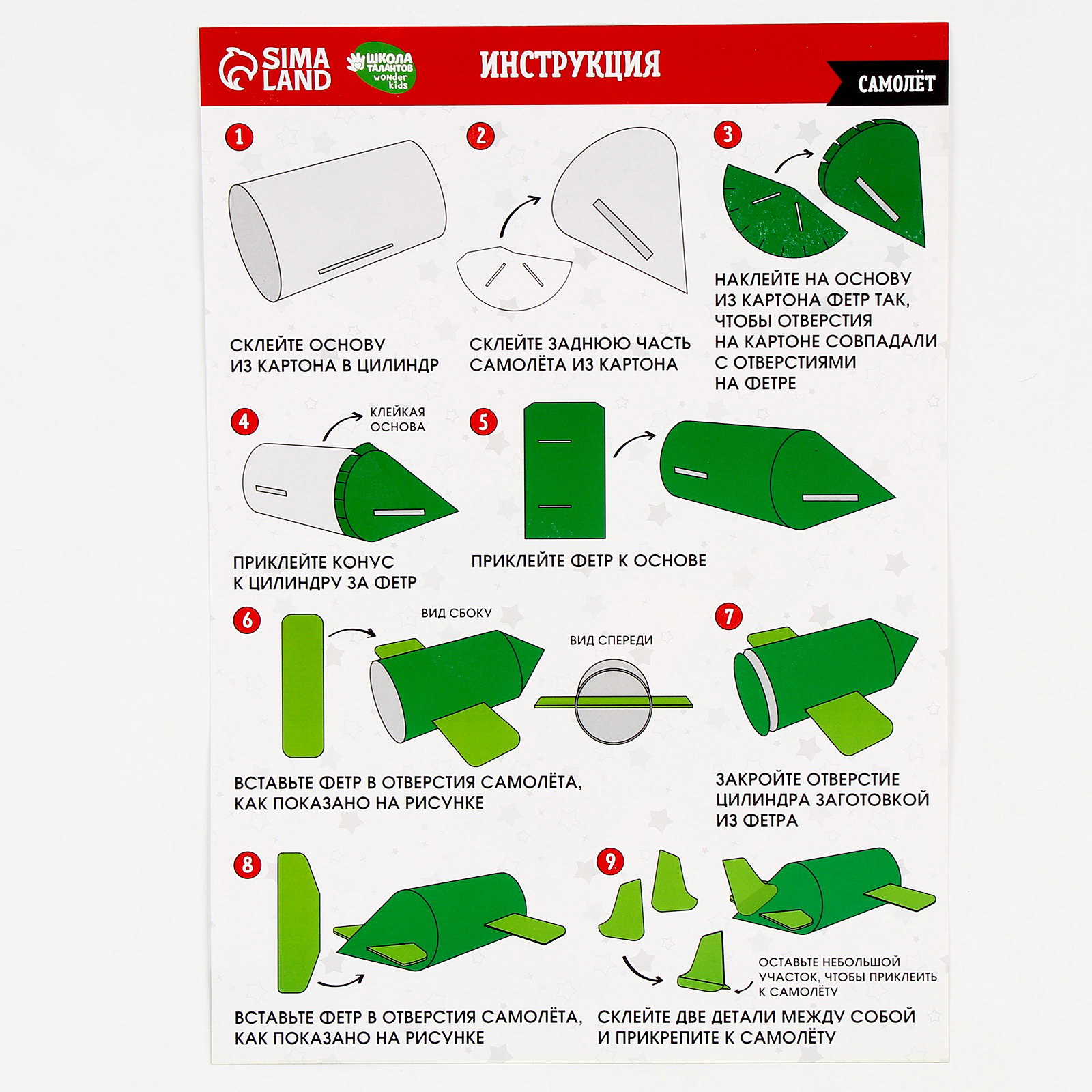 Набор для создания игрушки из фетра "Самолет", 21.5x32.5x0.5 см., Школа талантов, Китай